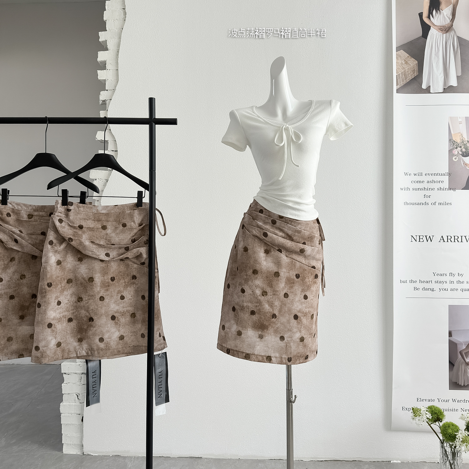 조심하십시오. 패치워크 허리 머리 새틴 라이 경기 서울 도트 무늬 신축성 허리 머리 퍼프 반신 스커트