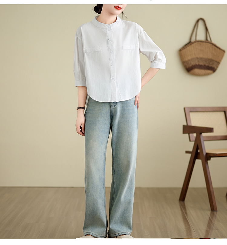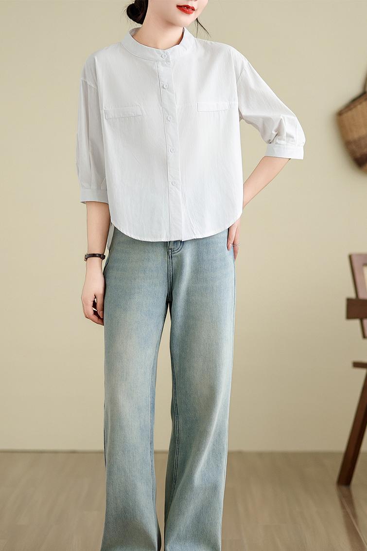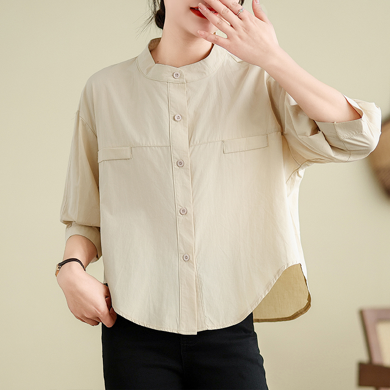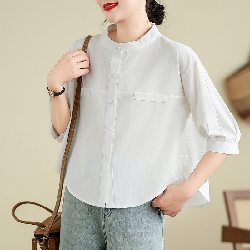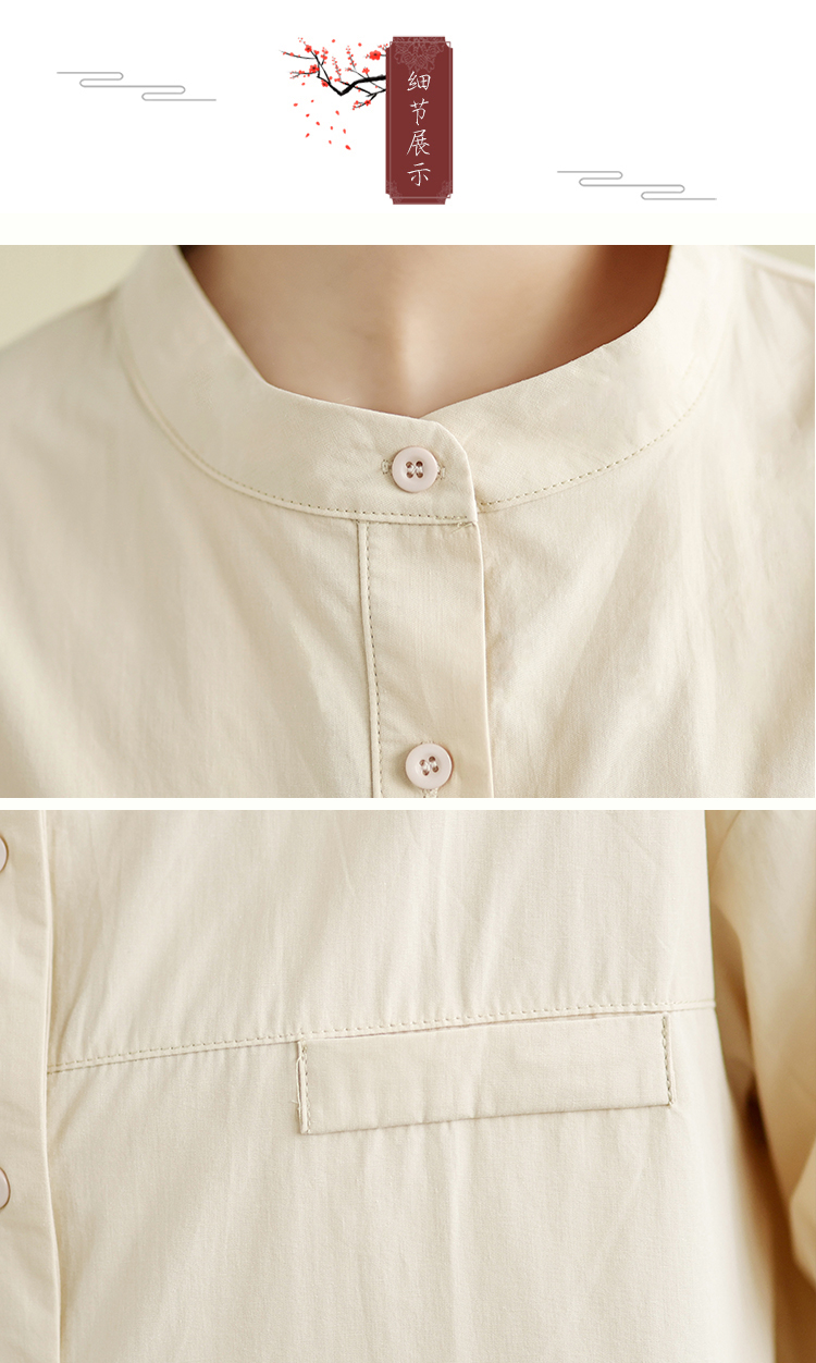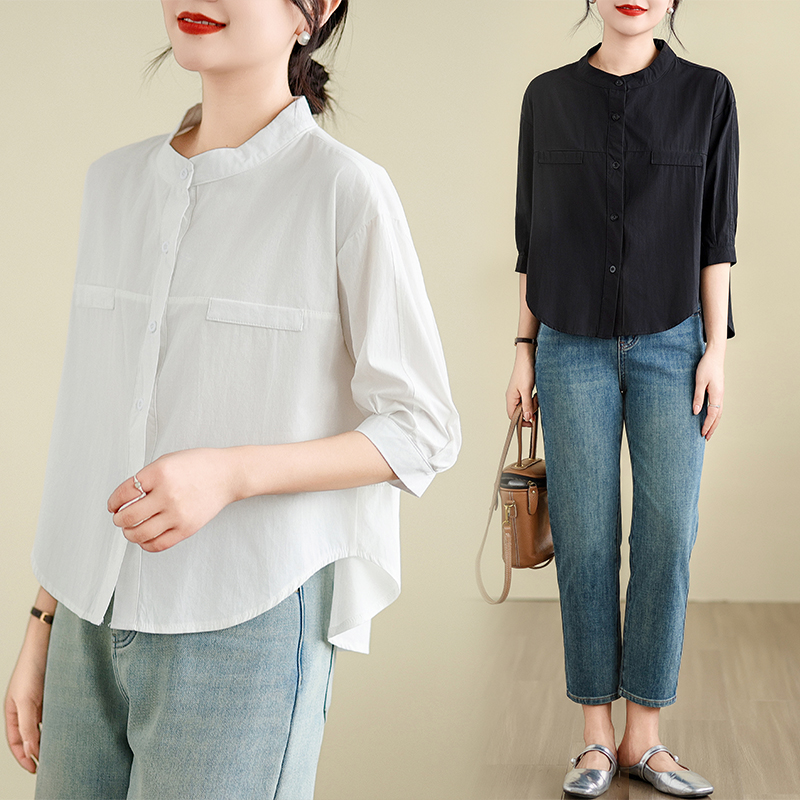 대외 무역 오리지널 일본식 화이트 롱 코트 여성 셔츠 루즈핏 캐주얼 작은 키 라운드 넥 순면 스택 착용 셔츠 치마