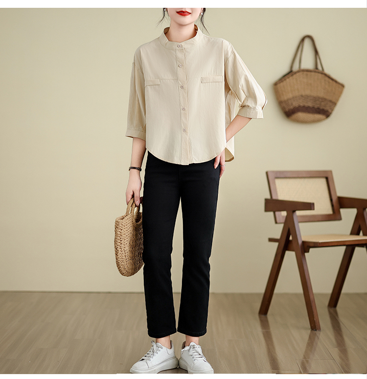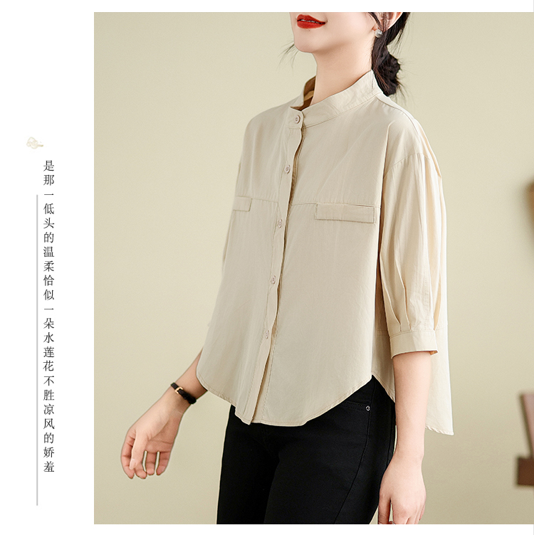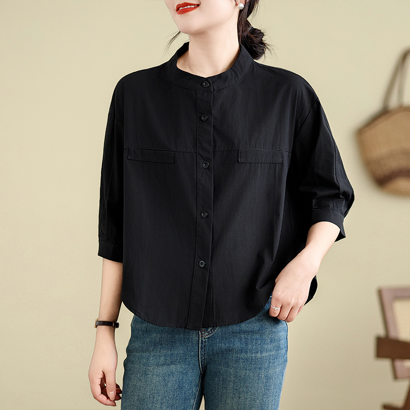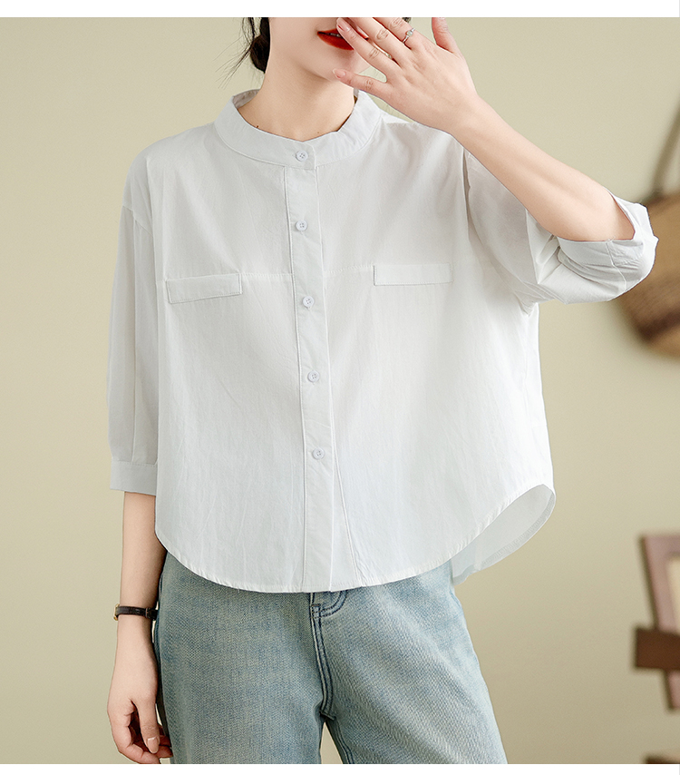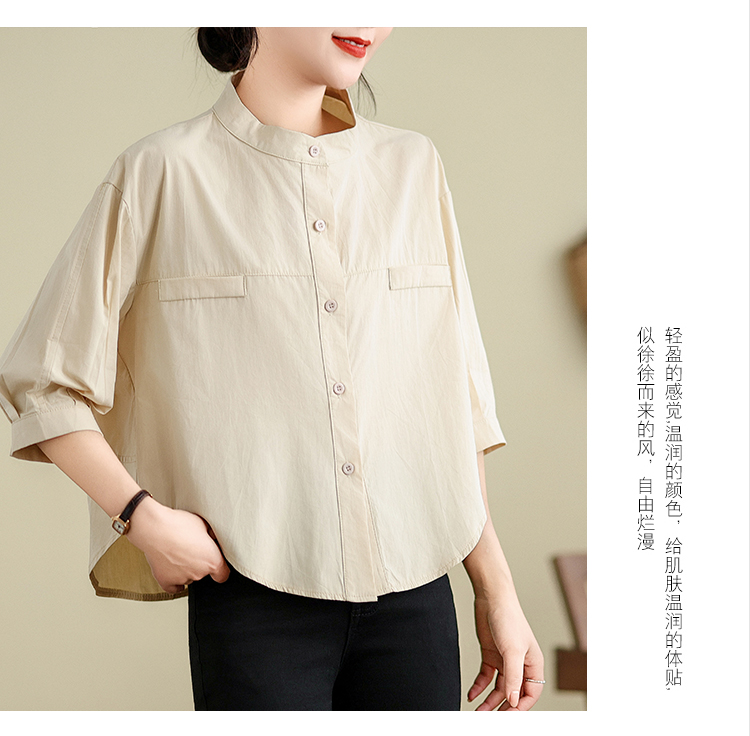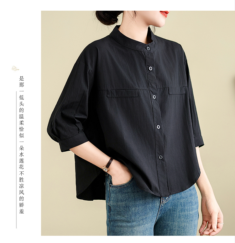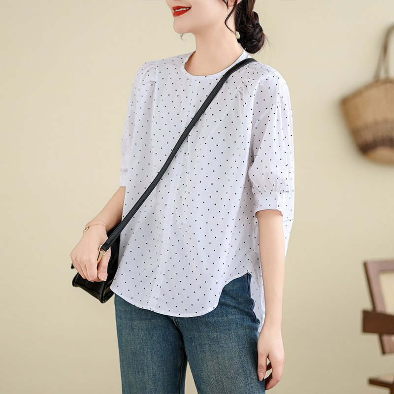 실사 여름 드레스 새로운 빅 사이즈 여성 의류 한국 스타일 미니멀리즘 중간 소매 셔츠 아름다움 라드. 루즈핏 셔츠 라운드 넥 맨위