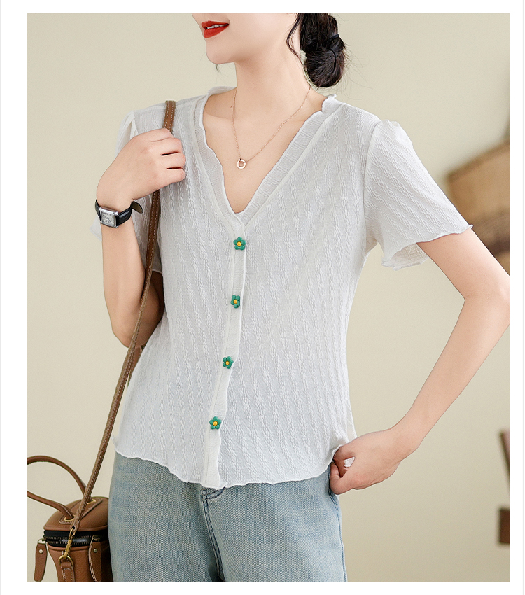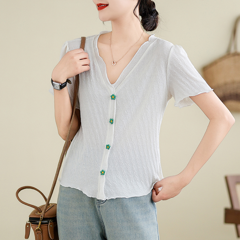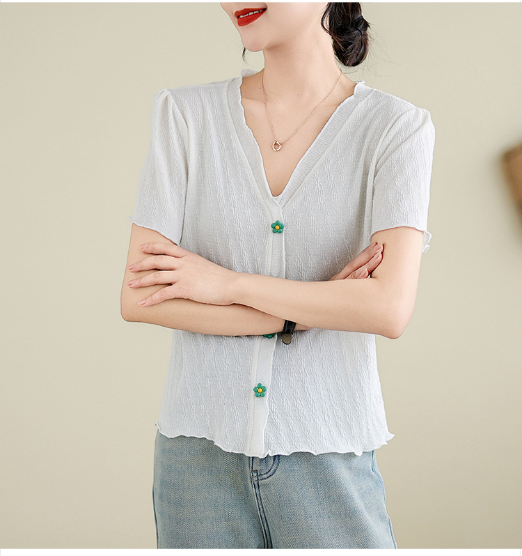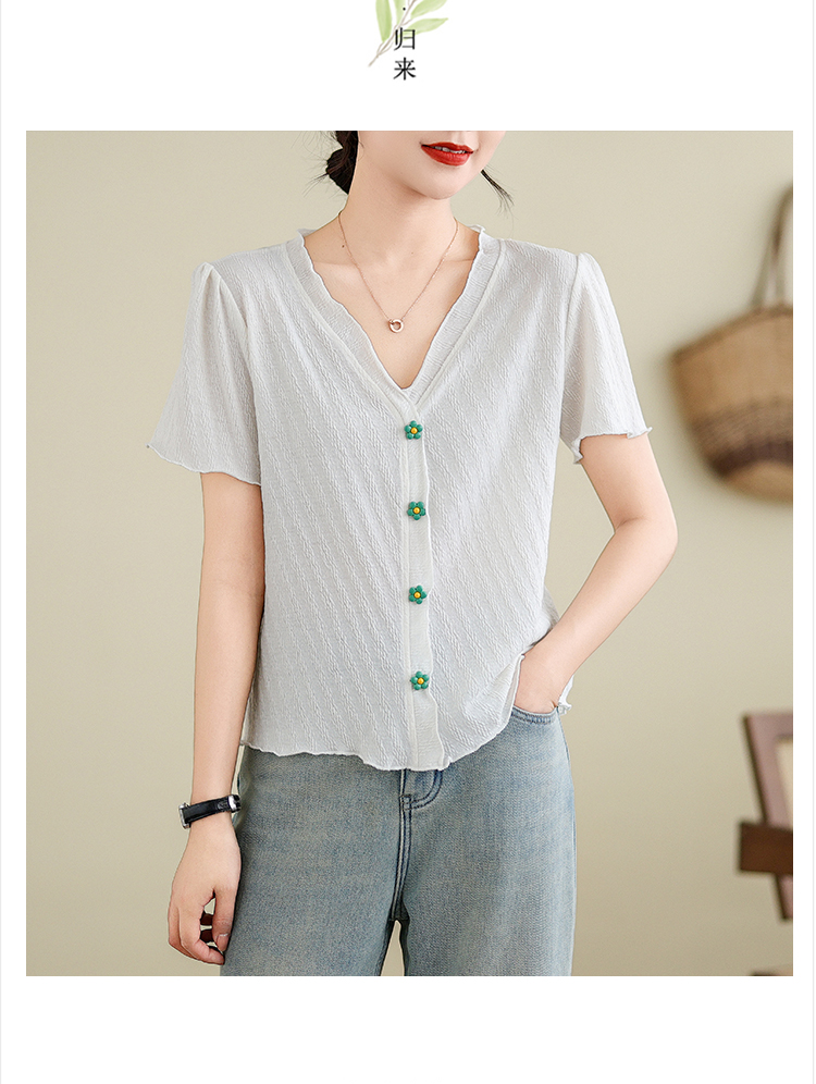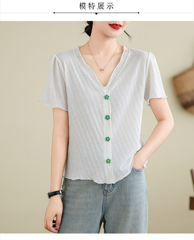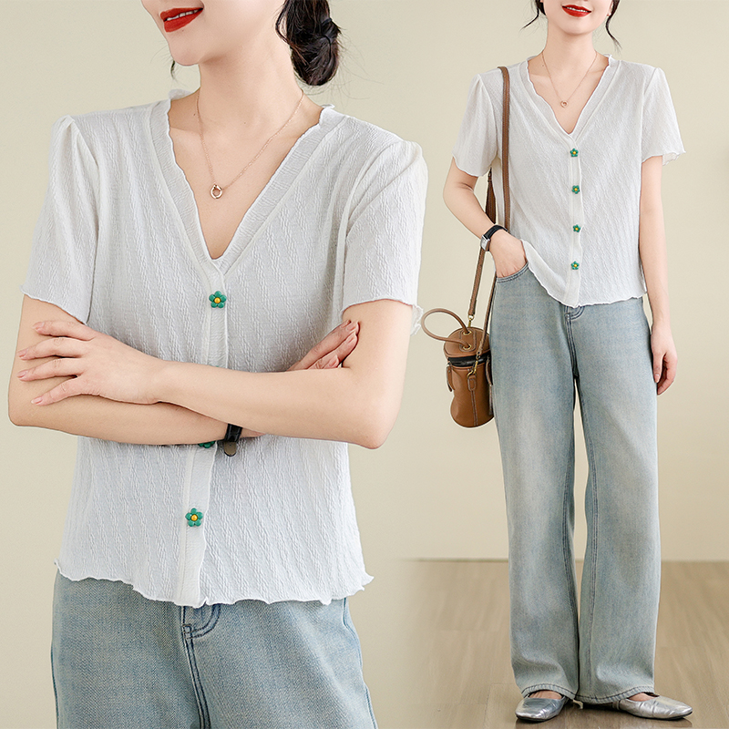 실사 여름 드레스 빅 사이즈 여성 의류 레이스업 인형 셔츠 반팔 셔츠 달콤함 외국 가스 작은 셔츠 프릴 연령 감소 맨위