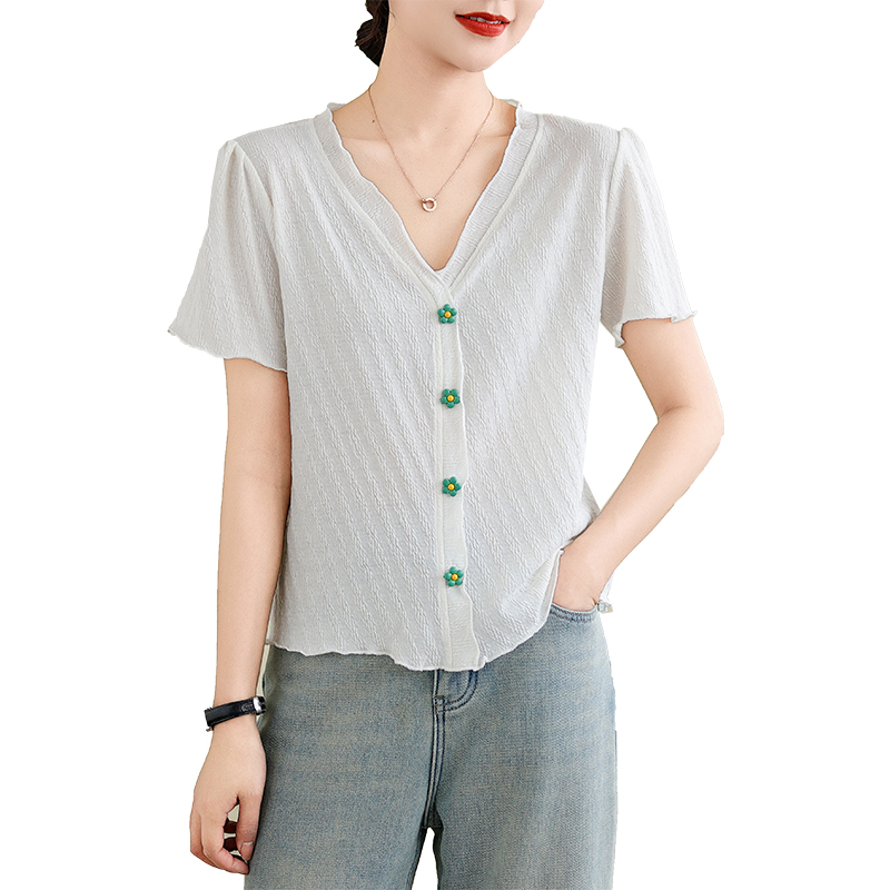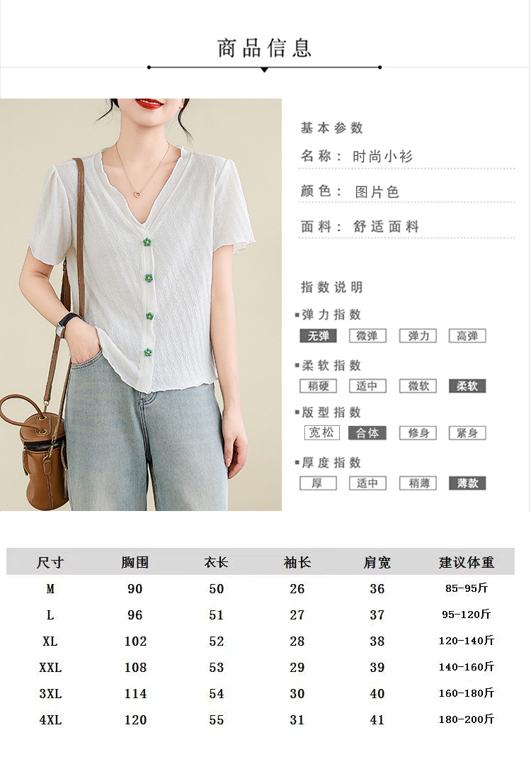 실사 여름 새로운 빅 사이즈 여성 의류 한 부서 다용도 빅 브이 넥 쇼트 스타일 신축성 반팔 티셔츠 m-4xl200 근
