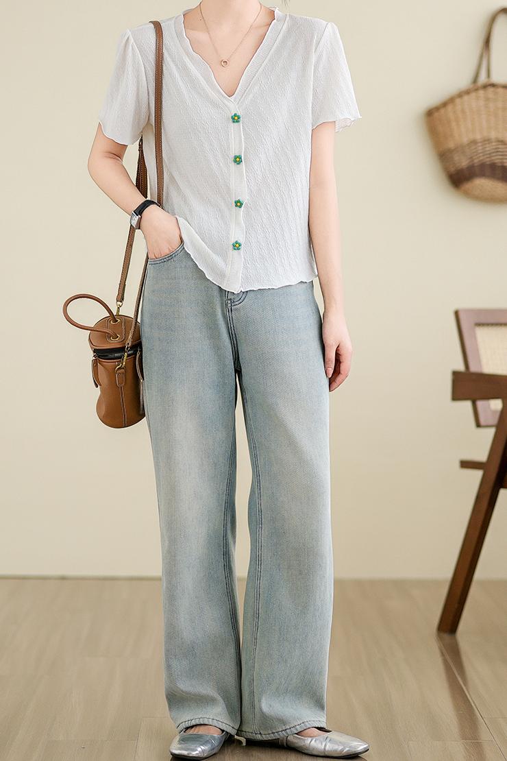 원본 것 프린트 뜨거운 구슬 보안 버클 아메리칸 레트로 스타일 V넥 반팔 티셔츠 여성 새로운 여름