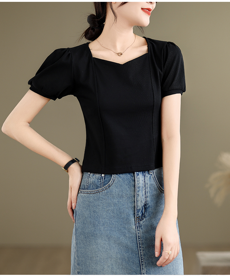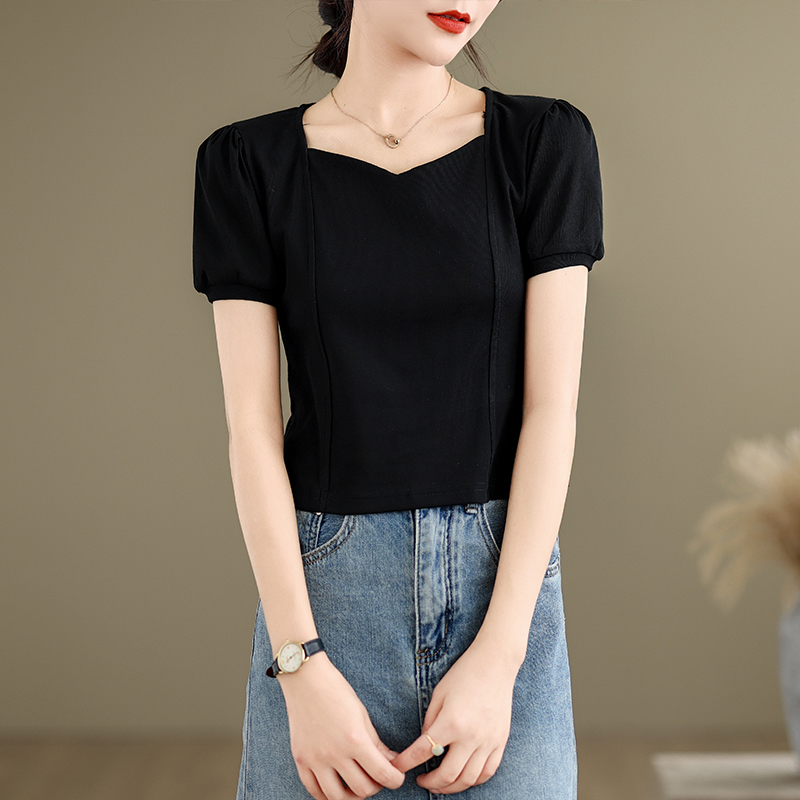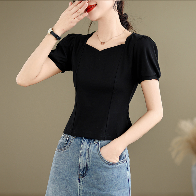 아메리칸 핫걸 전후 u 칼라 쇼트 스타일 카모플라주 티셔츠 여성 2026 여름 유럽 한 세련된 다용도 몸매 가꾸기 맨위