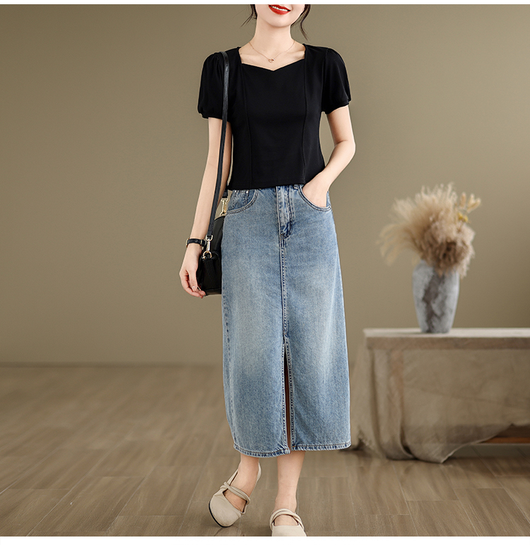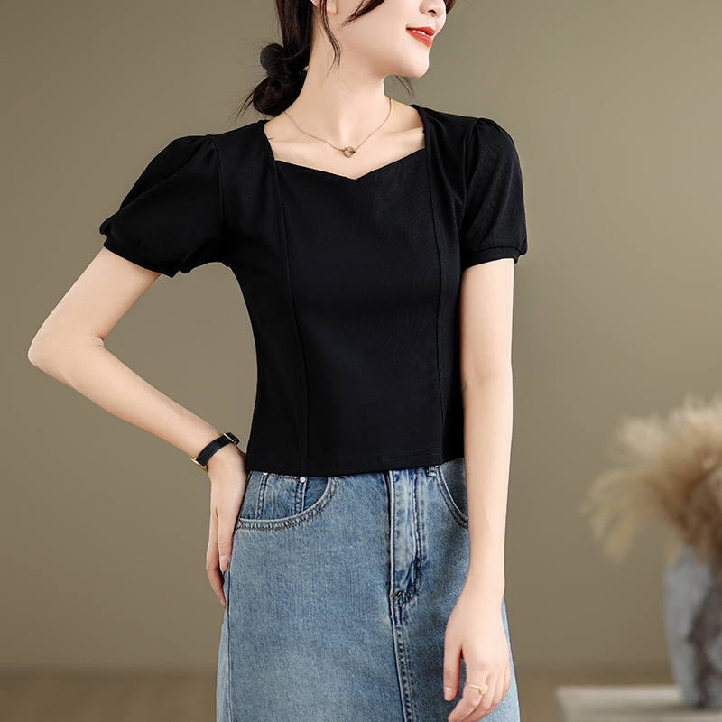 실사 여름 드레스 디자인 센스 Chic 맨위 빅 사이즈 여성 의류 V넥 이슬 쇄골 달콤한 매운맛 반팔 티셔츠 m-4xl200 근