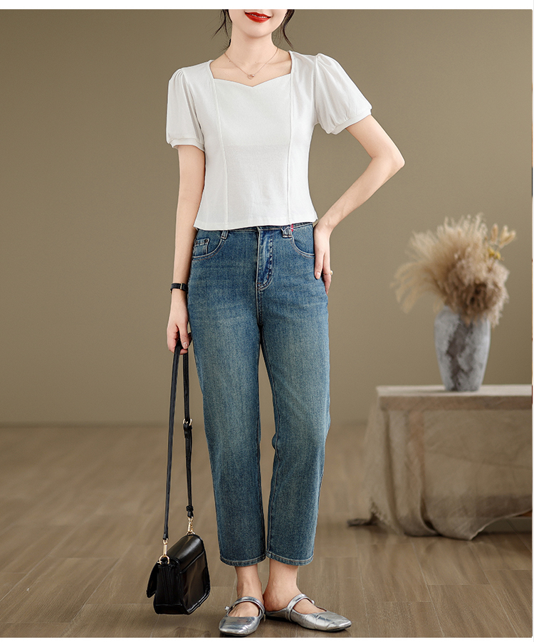 실사 여름 드레스 새로운 빅 사이즈 여성 의류 한국 스타일 미니멀리즘 중간 소매 셔츠 아름다움 라드. 루즈핏 셔츠 라운드 넥 맨위