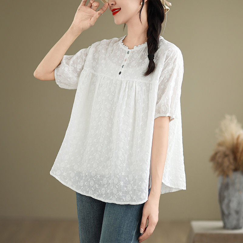 여름 드레스 고급 센스 화이트 라미 레이스 민소매 여성 셔츠 루즈핏 면 린넨 연령 감소 얇고 가벼운 아마 작은 셔츠