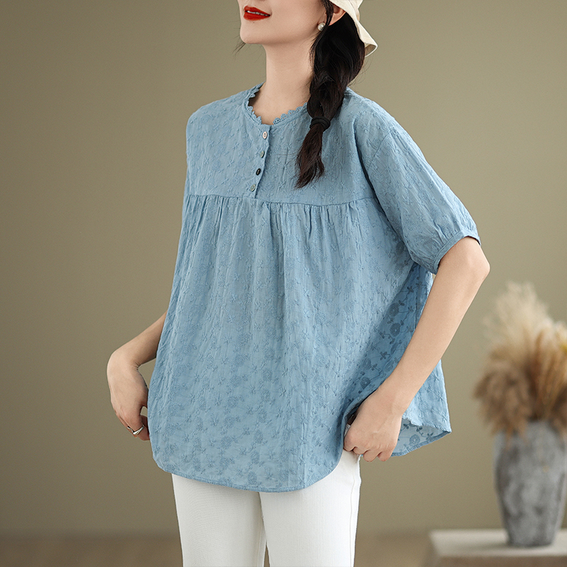 실사 여름 드레스 빅 사이즈 여성 의류 레이스업 인형 셔츠 반팔 셔츠 달콤함 외국 가스 작은 셔츠 프릴 연령 감소 맨위