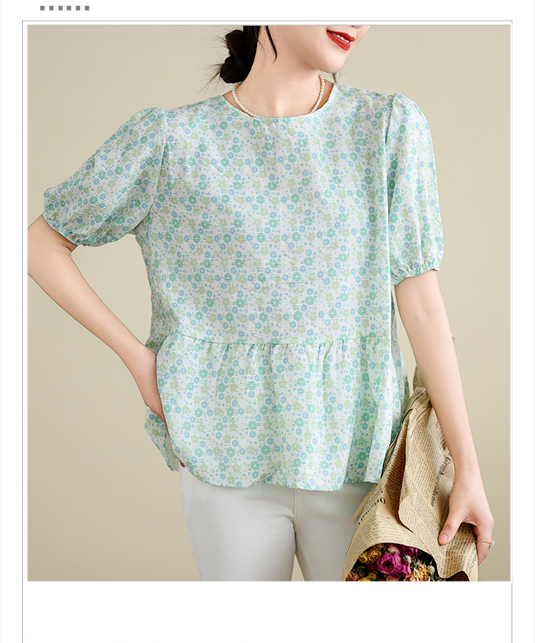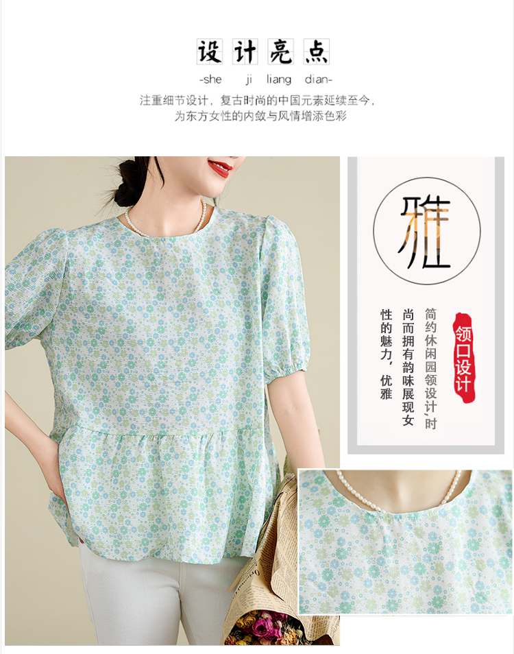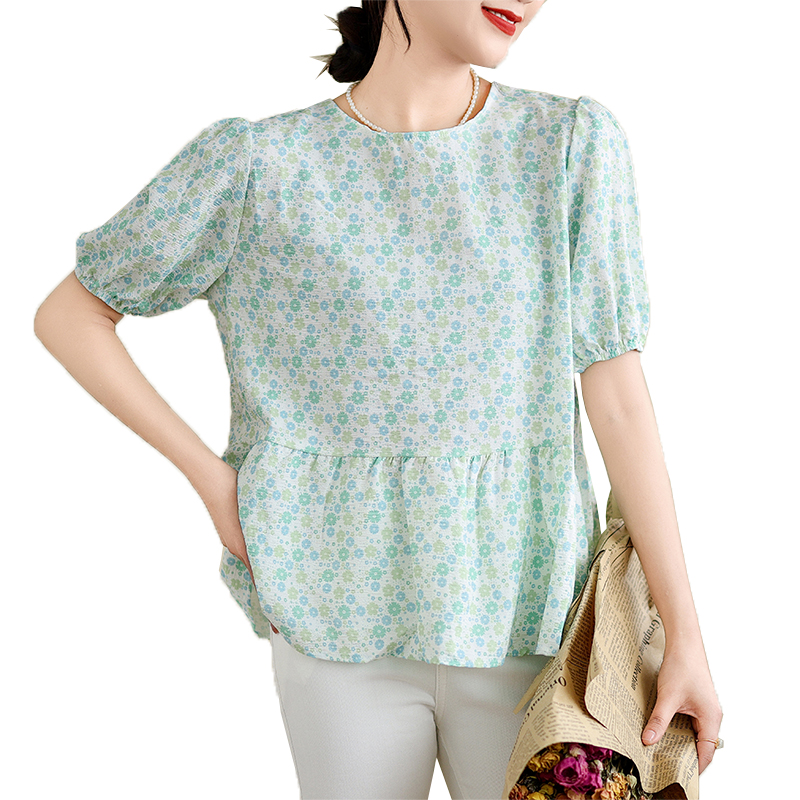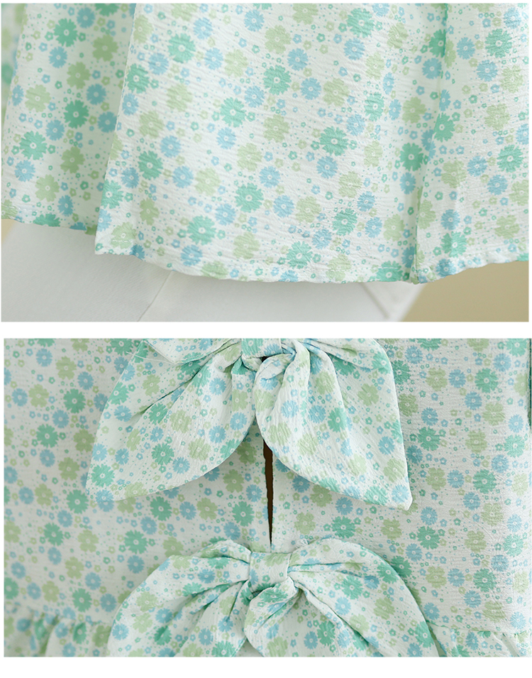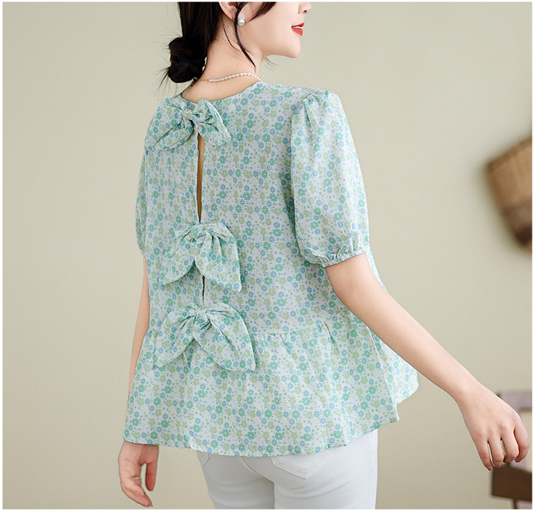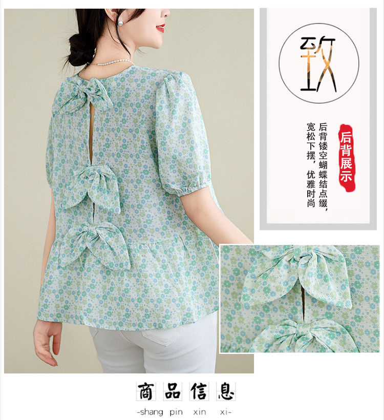 실사 디자인 센스 뒤로 나비 매듭 달콤함 인형 셔츠 한국 스타일 거품 소매 꽃무늬 셔츠 m-4xl200 근