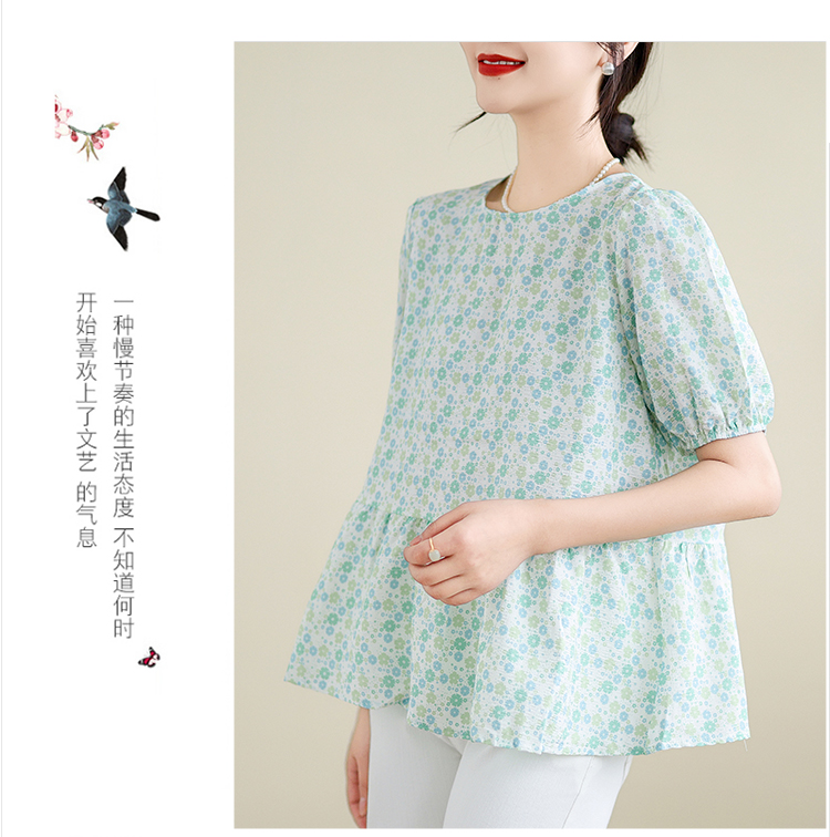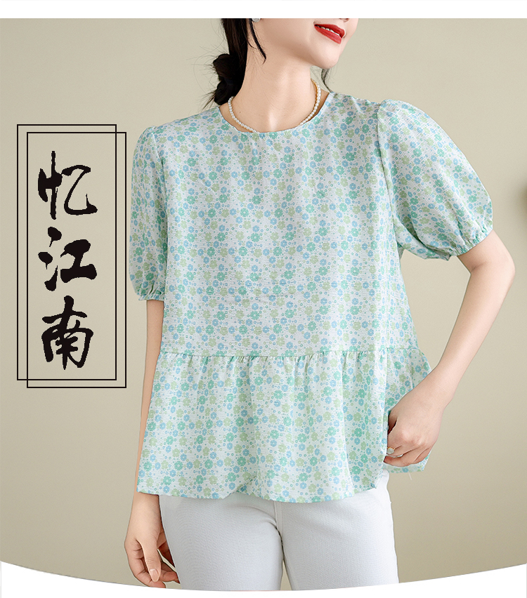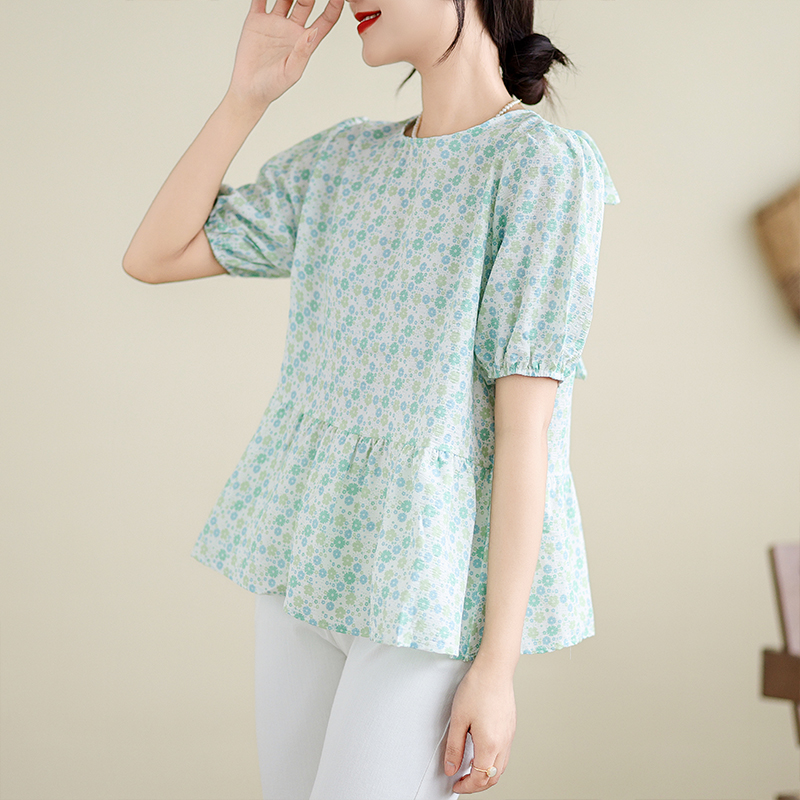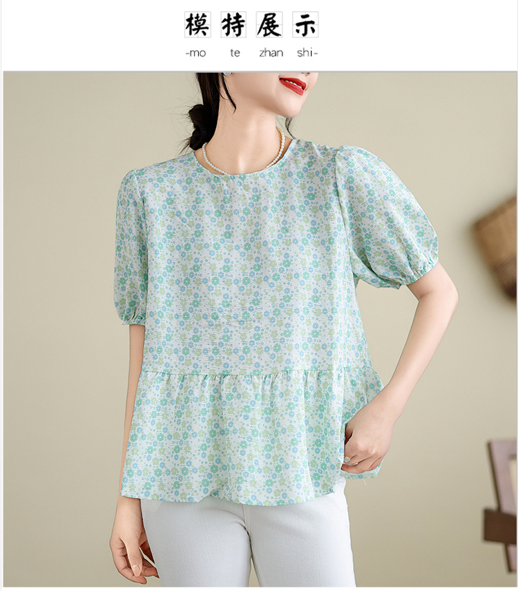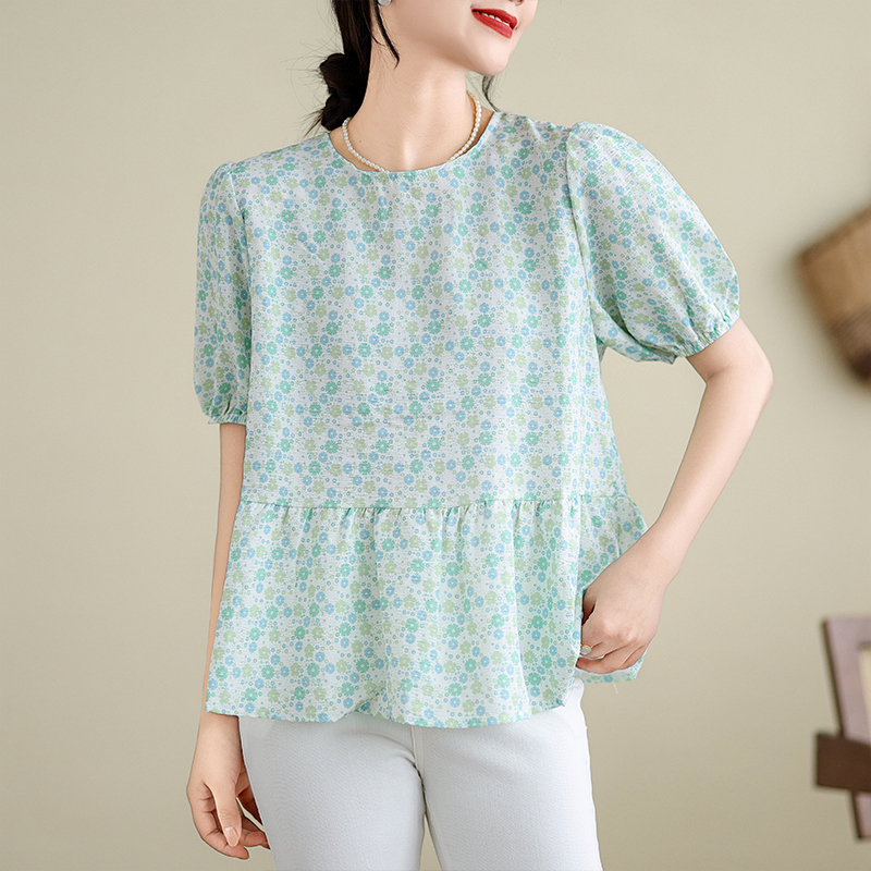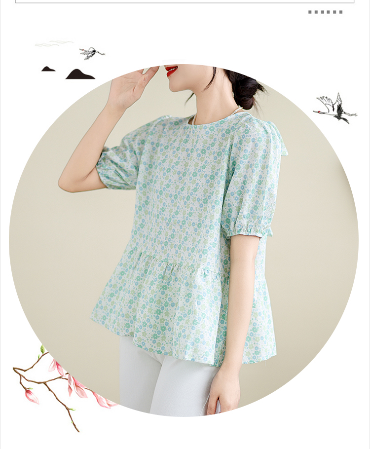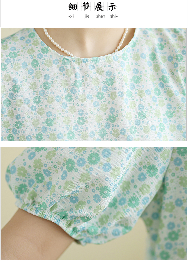 실사 디자인 센스 뒤로 나비 매듭 달콤함 인형 셔츠 한국 스타일 거품 소매 꽃무늬 셔츠 m-4xl200 근