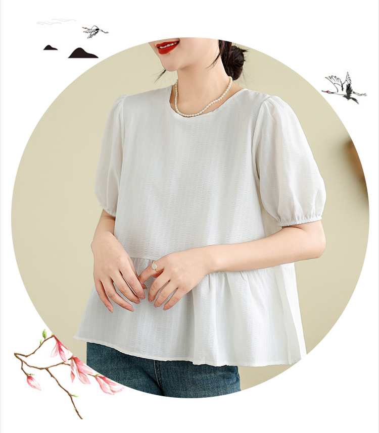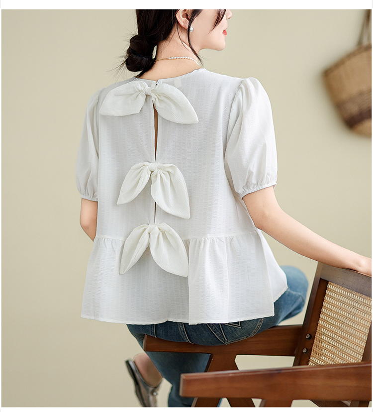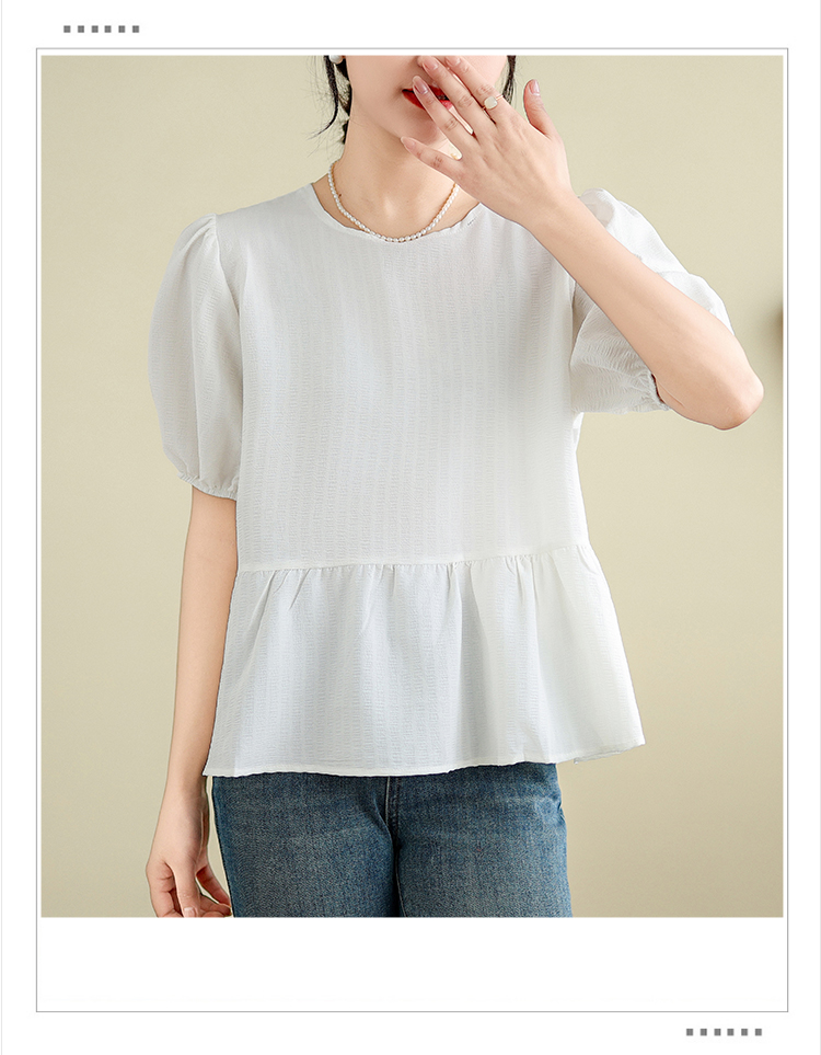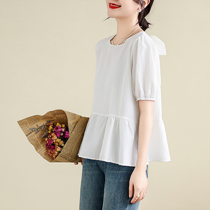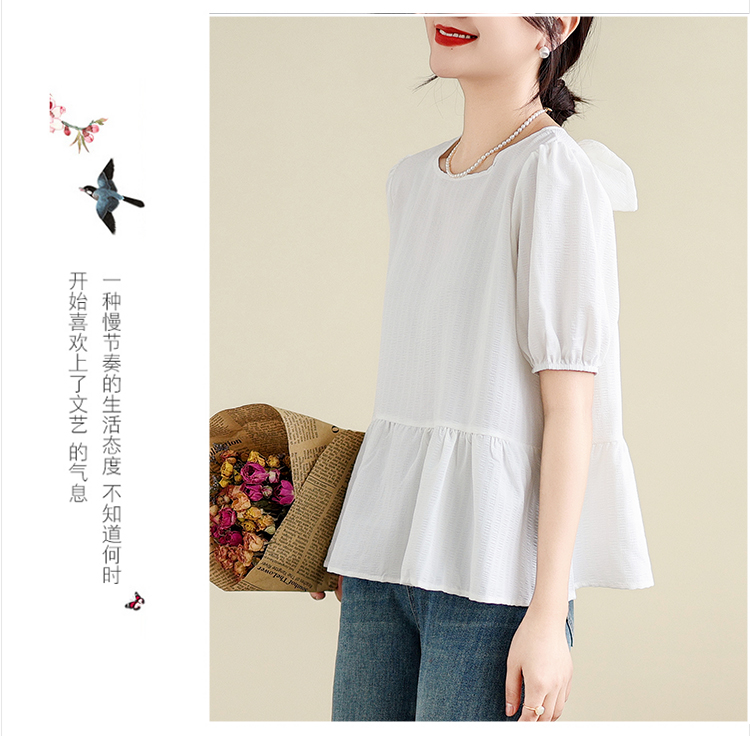 실사 여름 드레스 빅 사이즈 여성 의류 레이스업 인형 셔츠 반팔 셔츠 달콤함 외국 가스 작은 셔츠 프릴 연령 감소 맨위