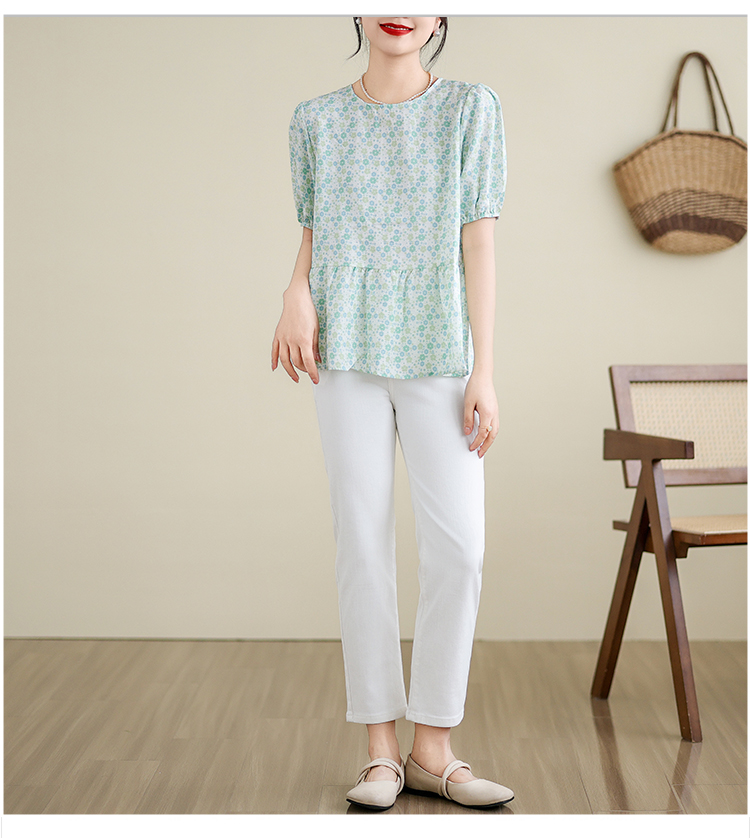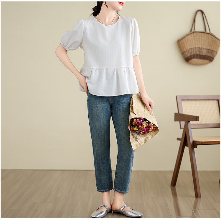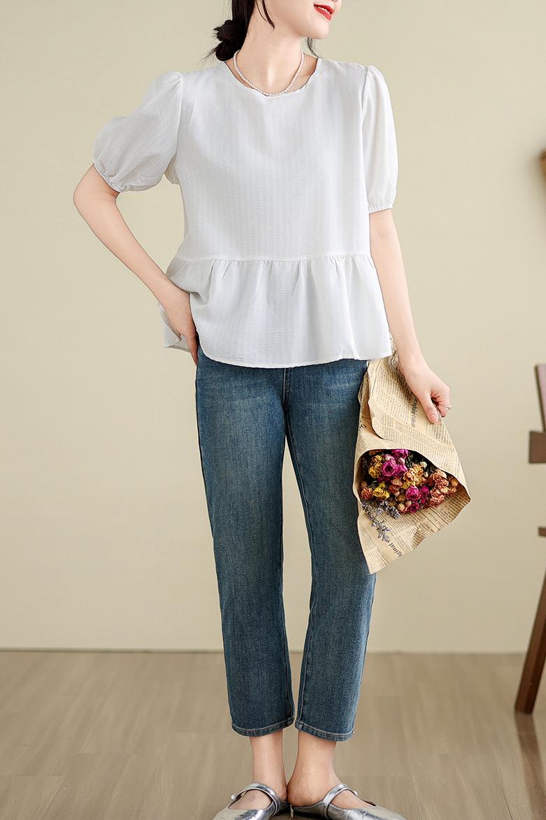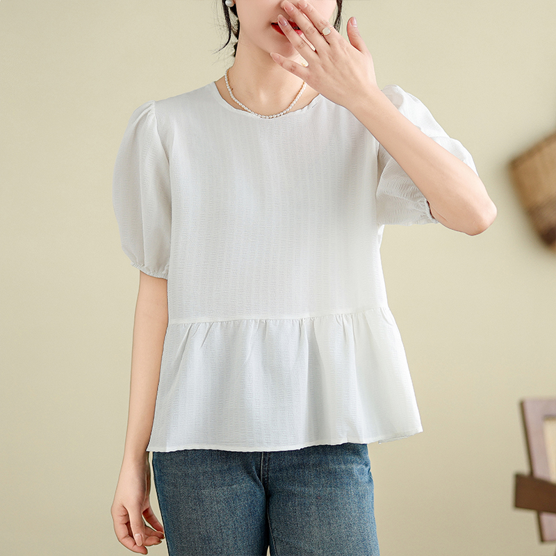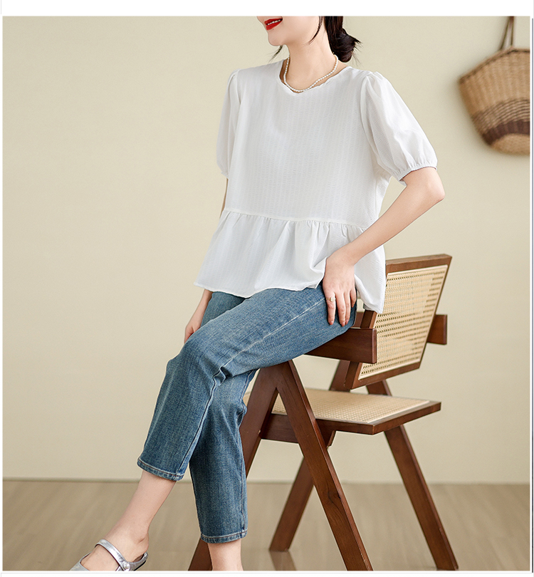 실사 여름 드레스 빅 사이즈 여성 의류 레이스업 인형 셔츠 반팔 셔츠 달콤함 외국 가스 작은 셔츠 프릴 연령 감소 맨위