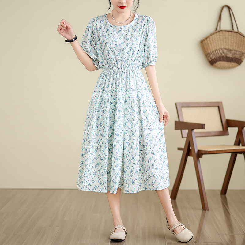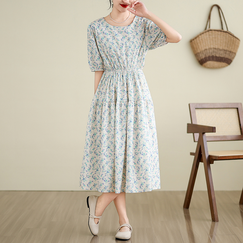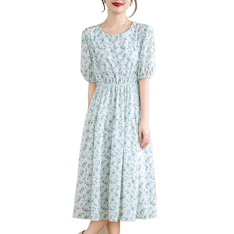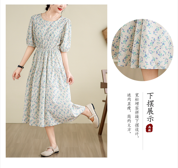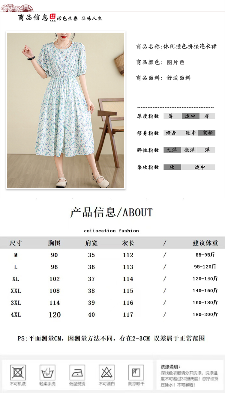 실사 여름 드레스 빅 사이즈 여성 의류 센스 학원 스타일 반팔 차 휴식 프랑스식 드레스 꽃무늬 롱 스커트 m-4xl200 근