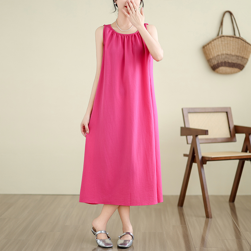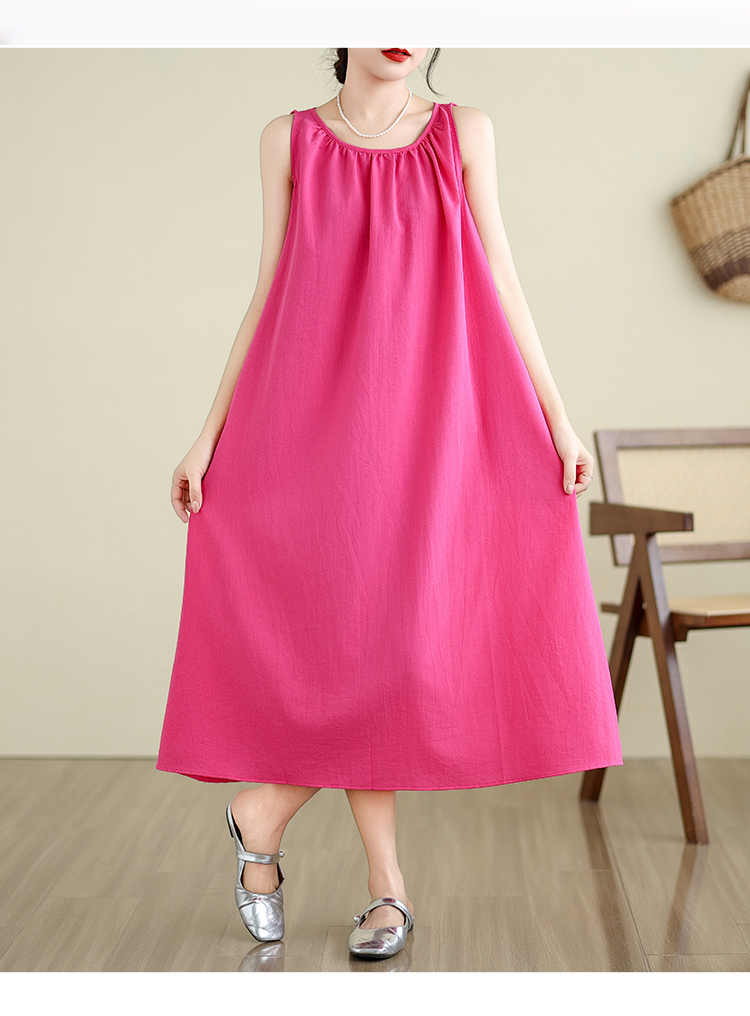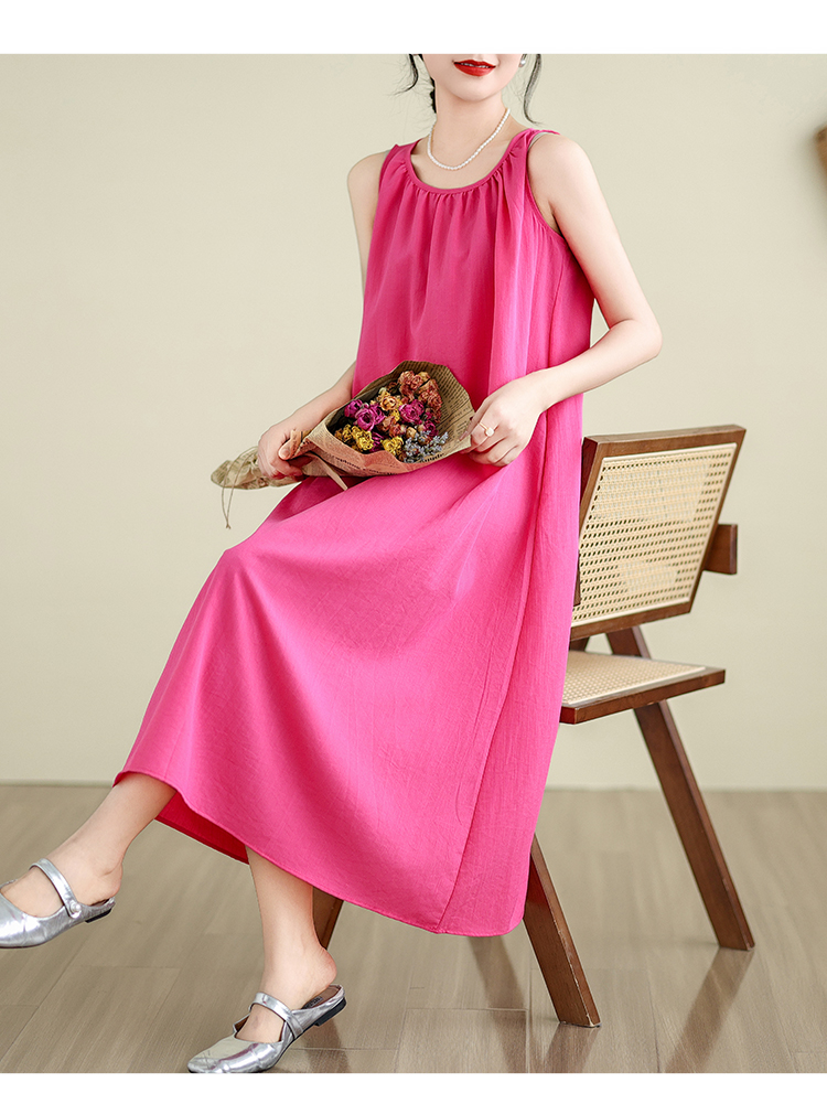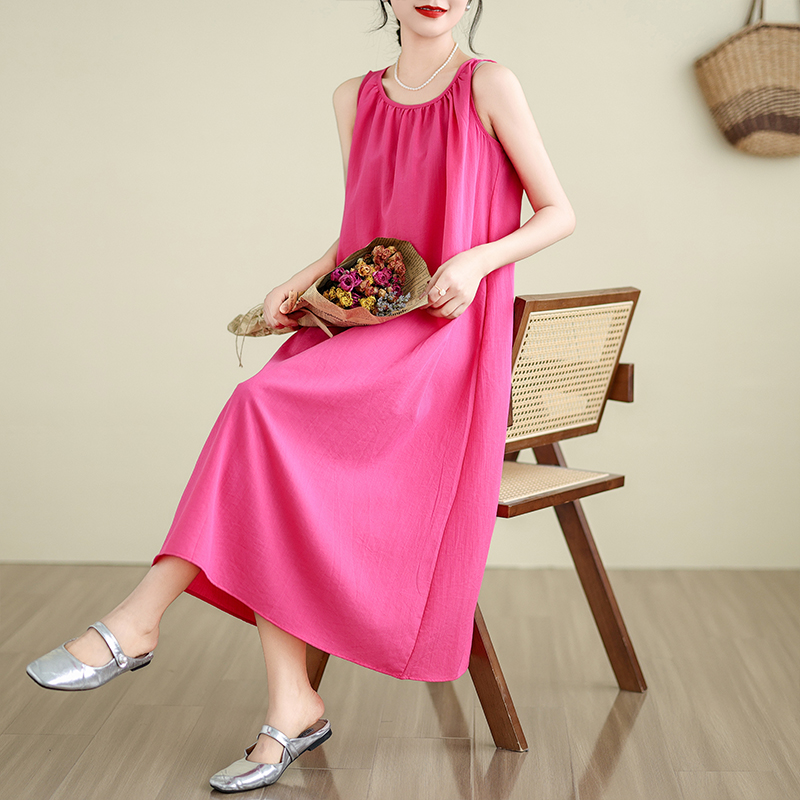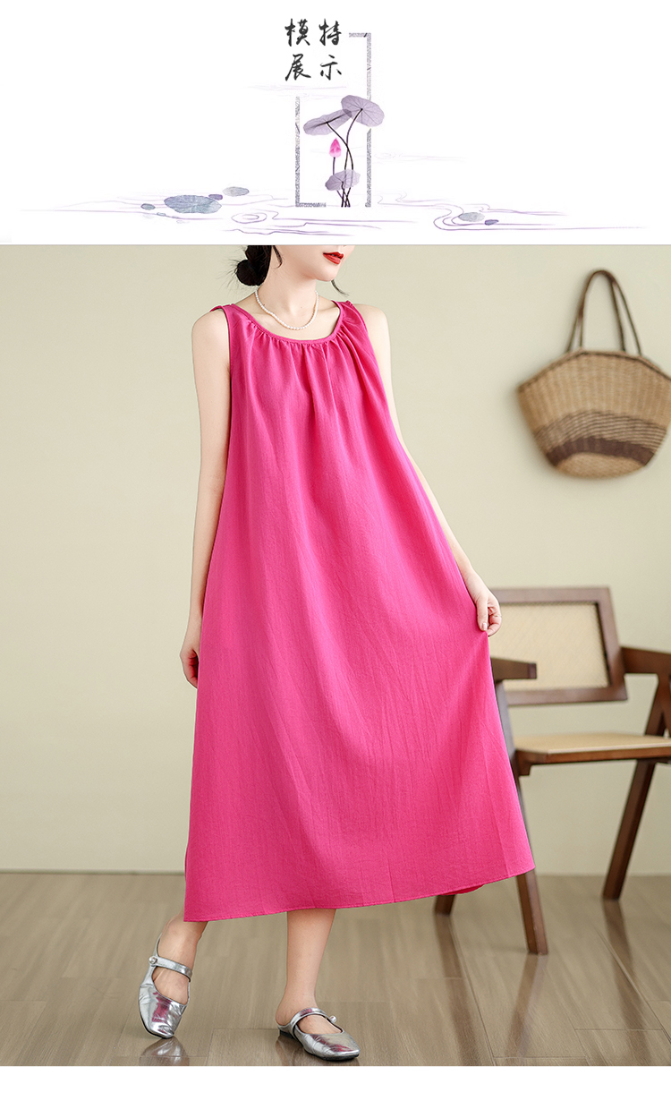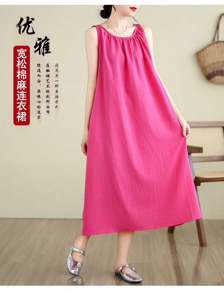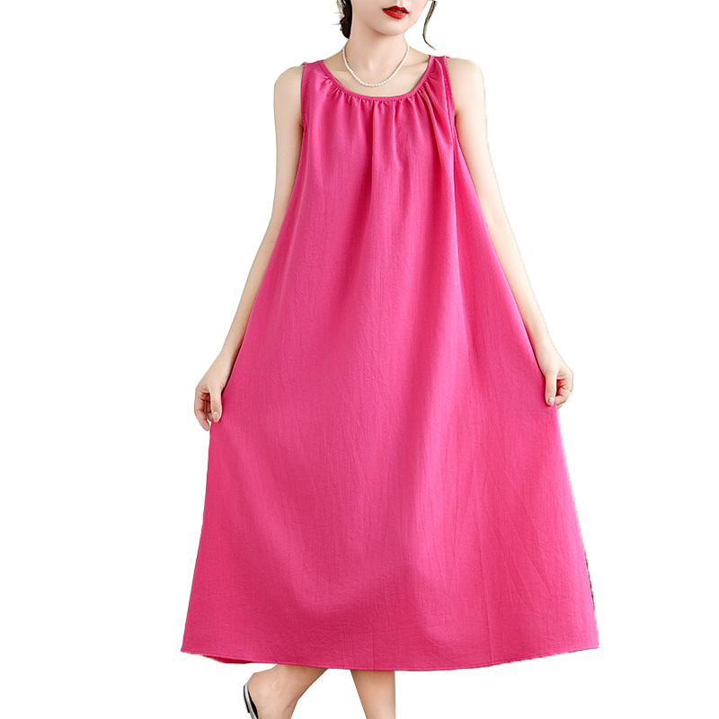 실사 여름 드레스 빅 사이즈 여성 의류 민소매 드레스 슬림해 보이는 해변가 휴가 조끼 행침 목 롱 스커트 m-4xl200 근