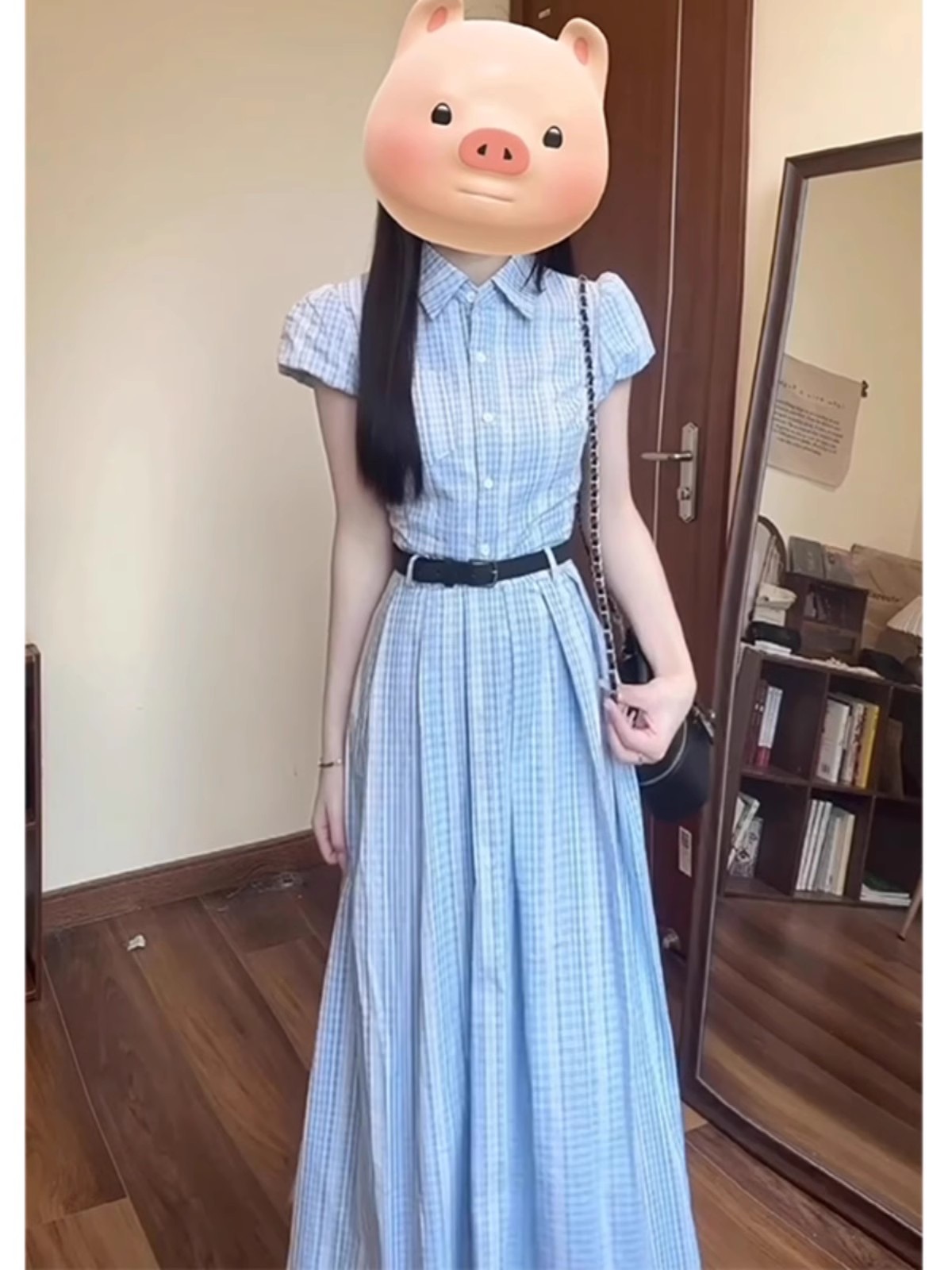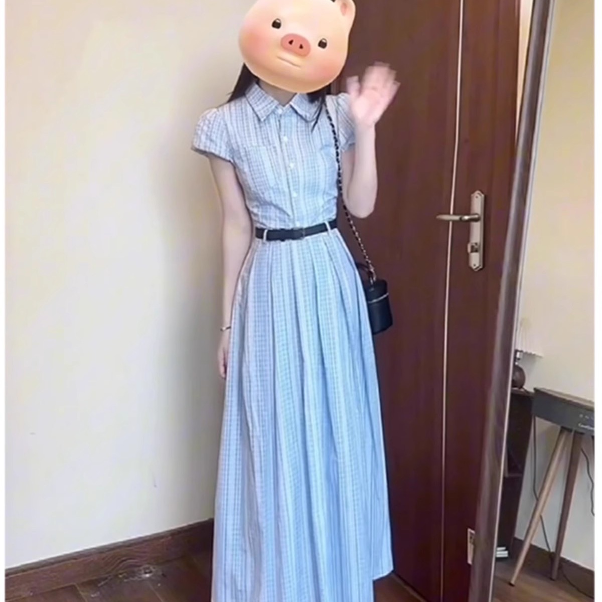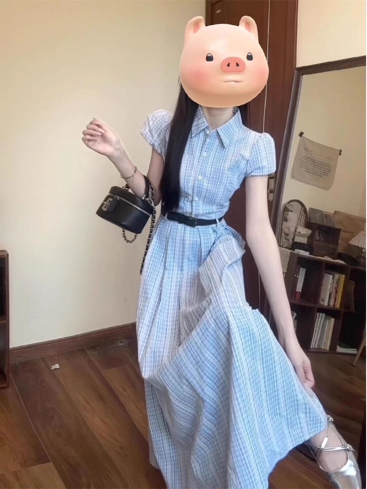 넓은 색상 miu 부서 파란색 체크무늬 여성 셔츠 2025 봄 새로운 프릴 긴팔 셔츠 맨위 쇼트 스타일 가을
