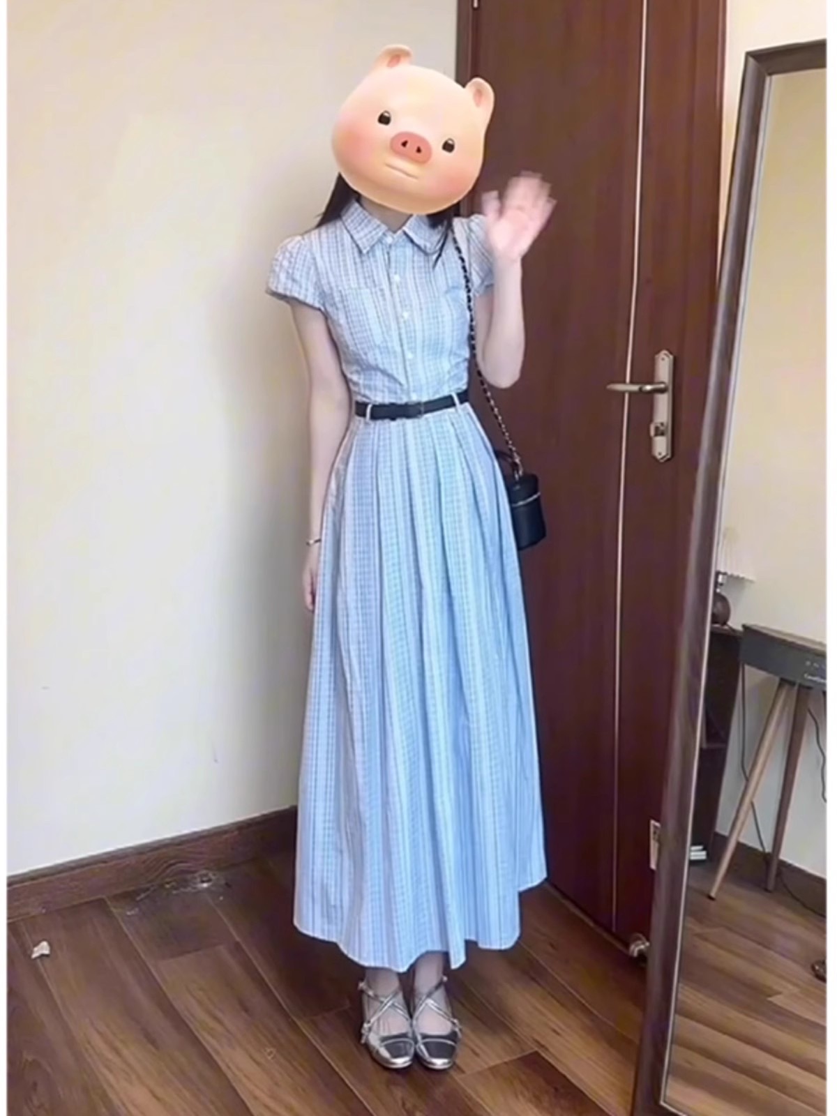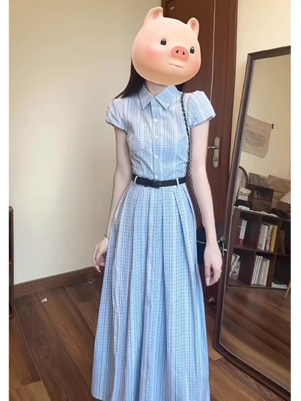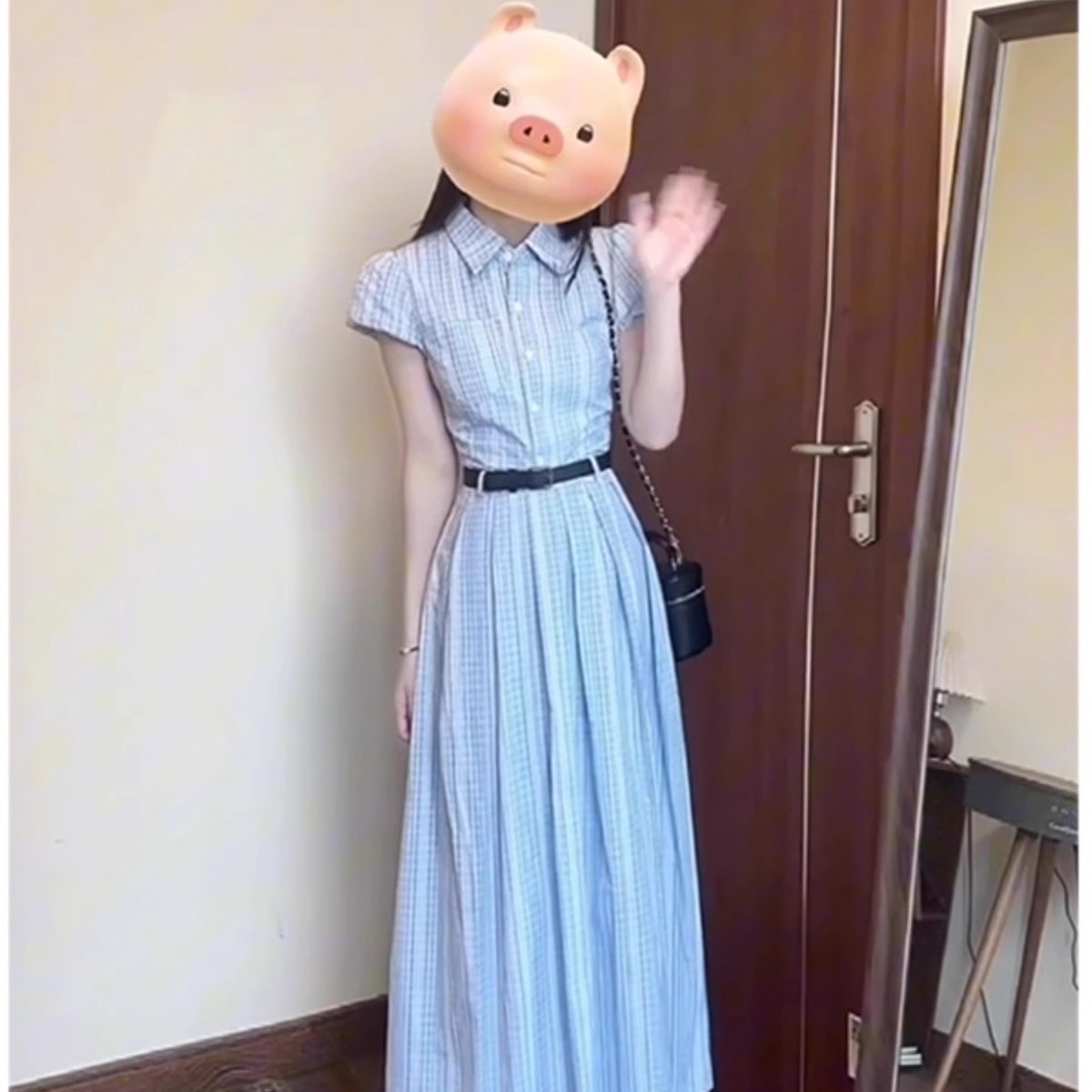넓은 색상 miu 부서 파란색 체크무늬 여성 셔츠 2025 봄 새로운 프릴 긴팔 셔츠 맨위 쇼트 스타일 가을