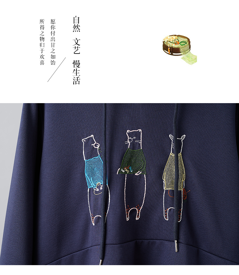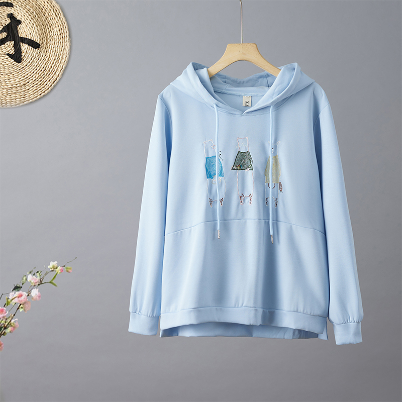 한 스타일 문예 2025 가을 새로운 여성 의류 루즈핏 슬림해 보이는 삽입 어깨 긴팔 3 차원 자수 후드티 여성 셔츠