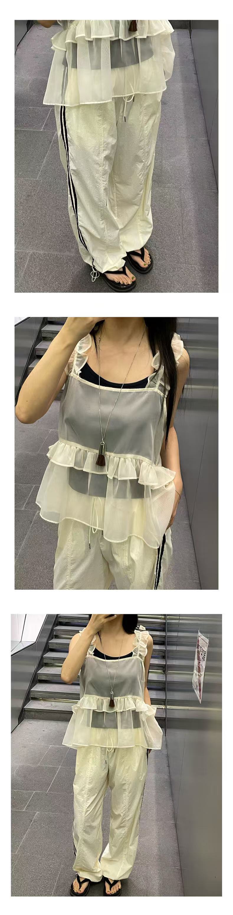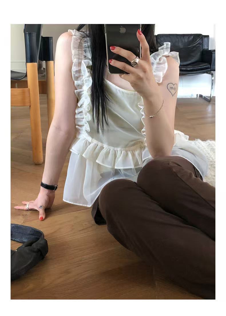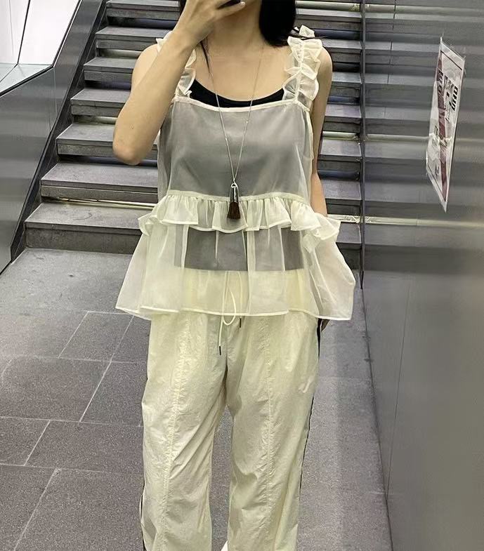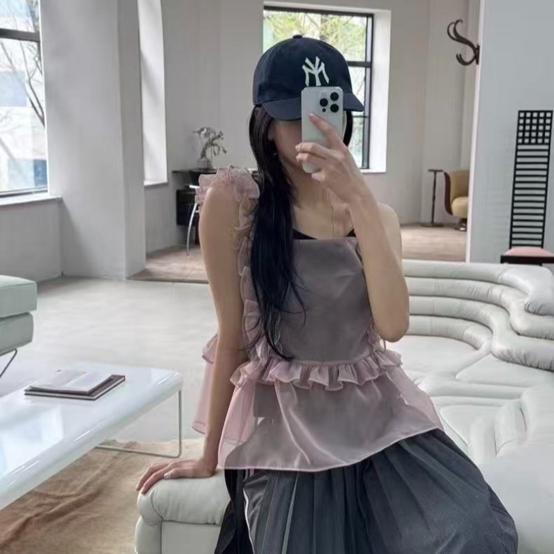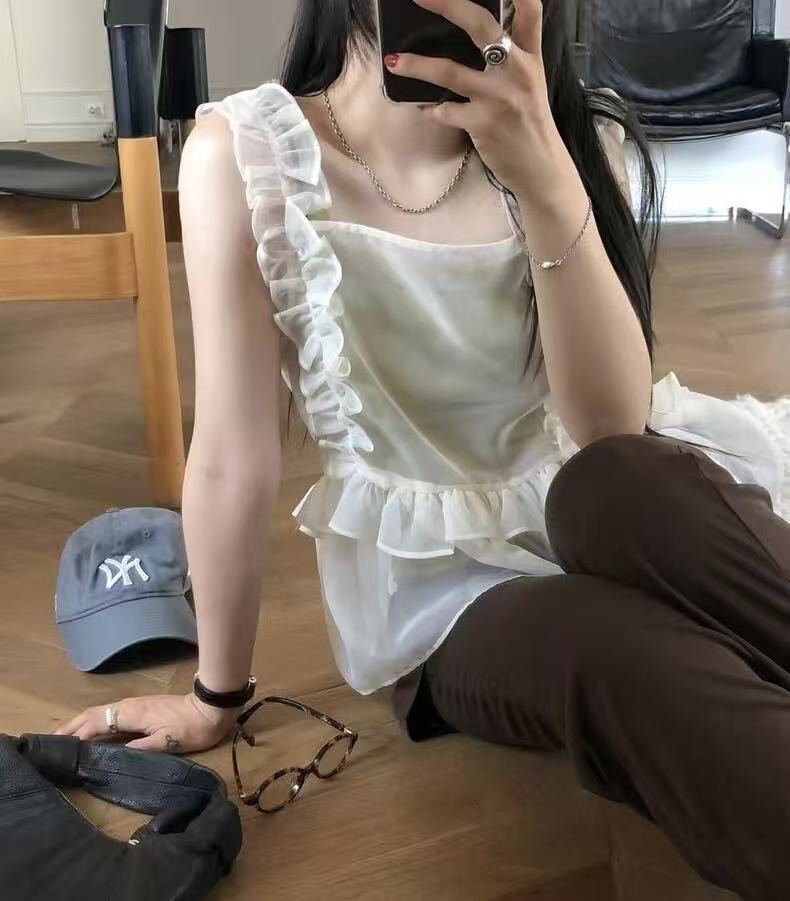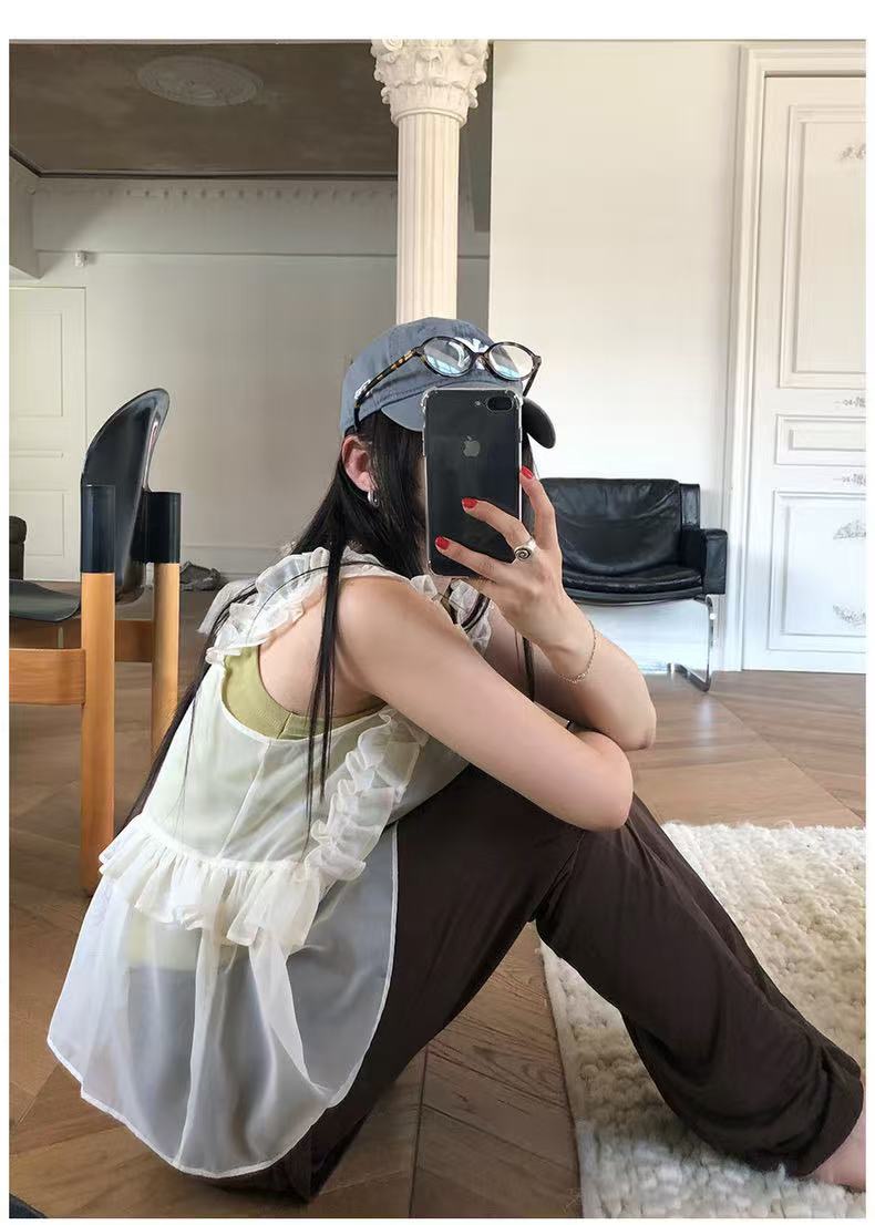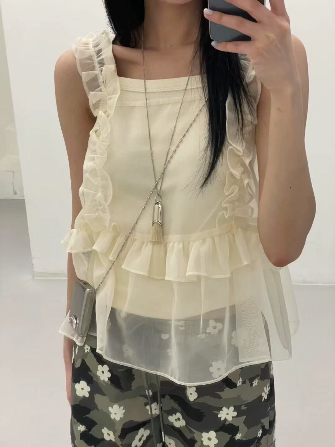 있음 밖으로 한국 chic 유럽 오간자 조끼 프릴 디자인 스택 착용 외부 가져 가라. 캐미솔