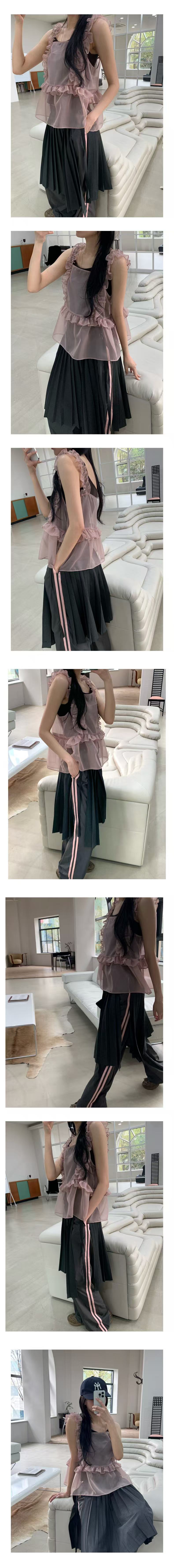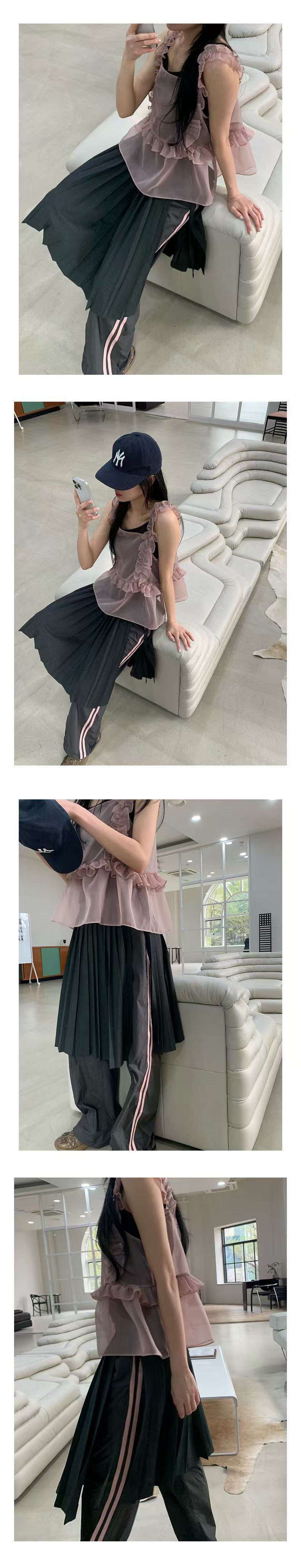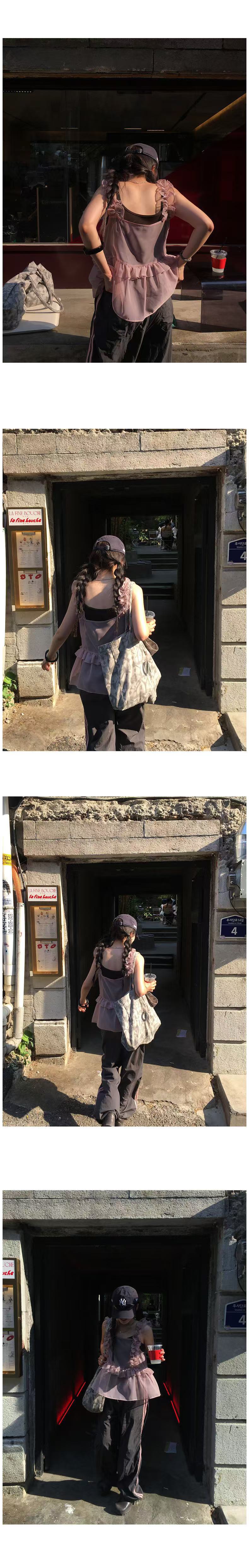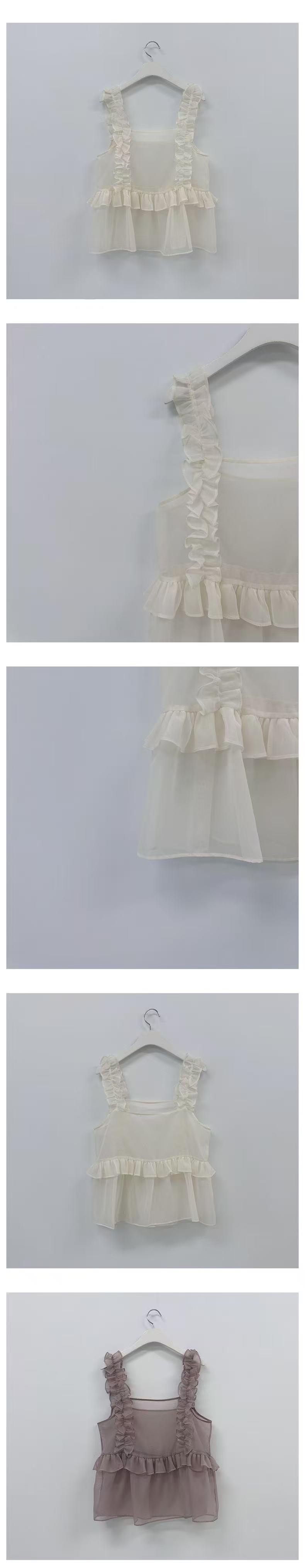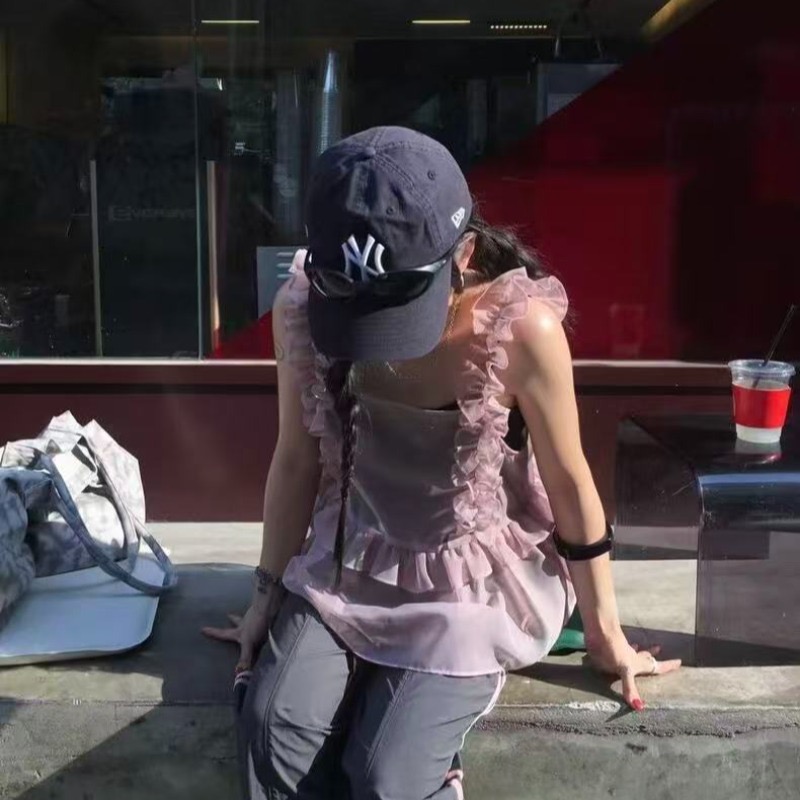 있음 밖으로 한국 chic 유럽 오간자 조끼 프릴 디자인 스택 착용 외부 가져 가라. 캐미솔
