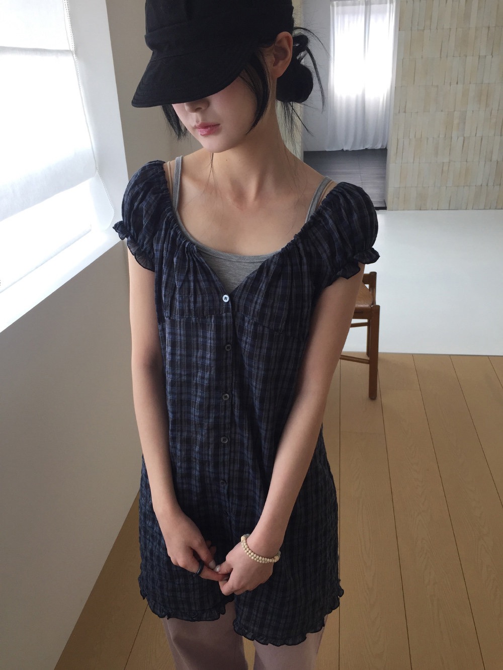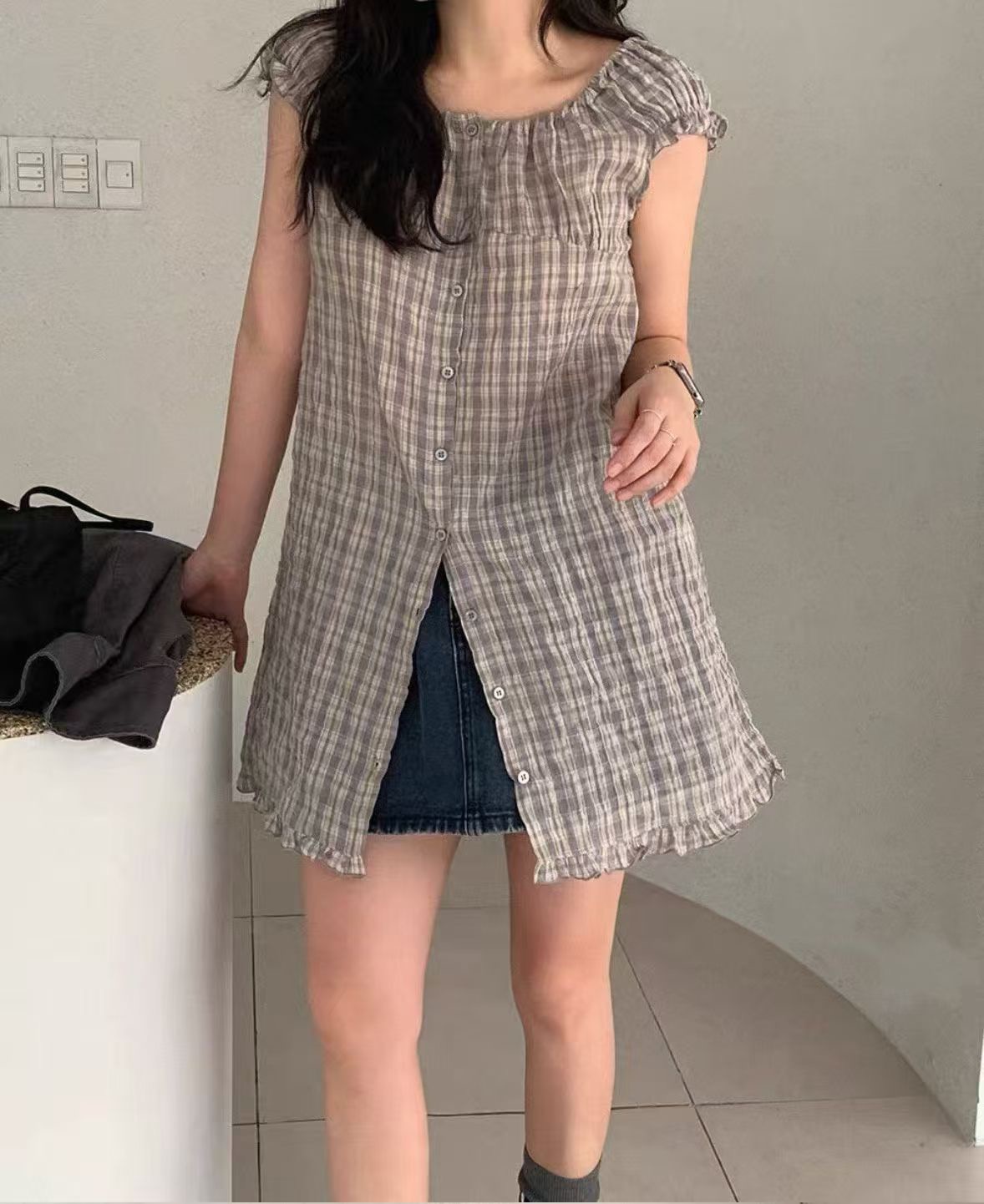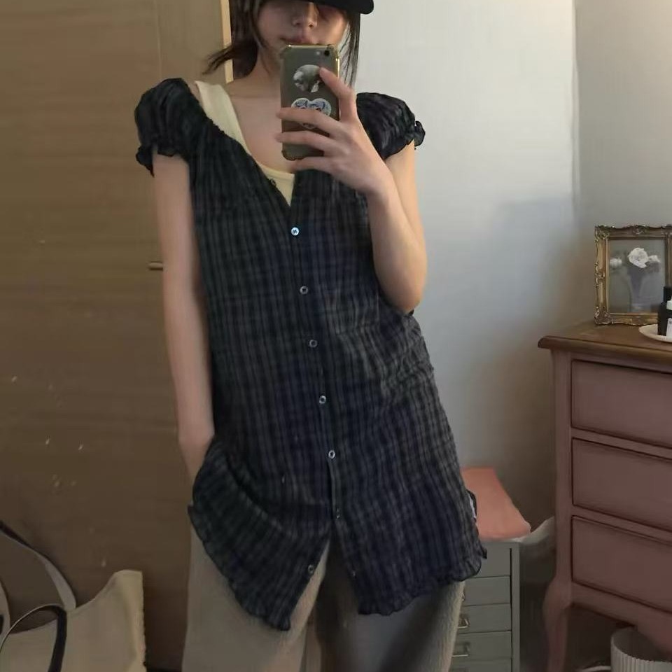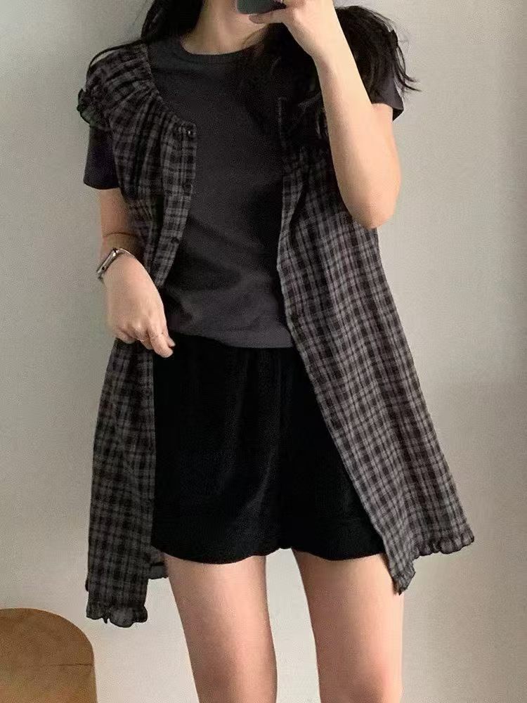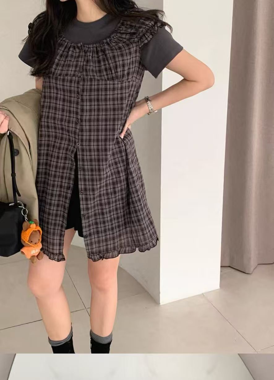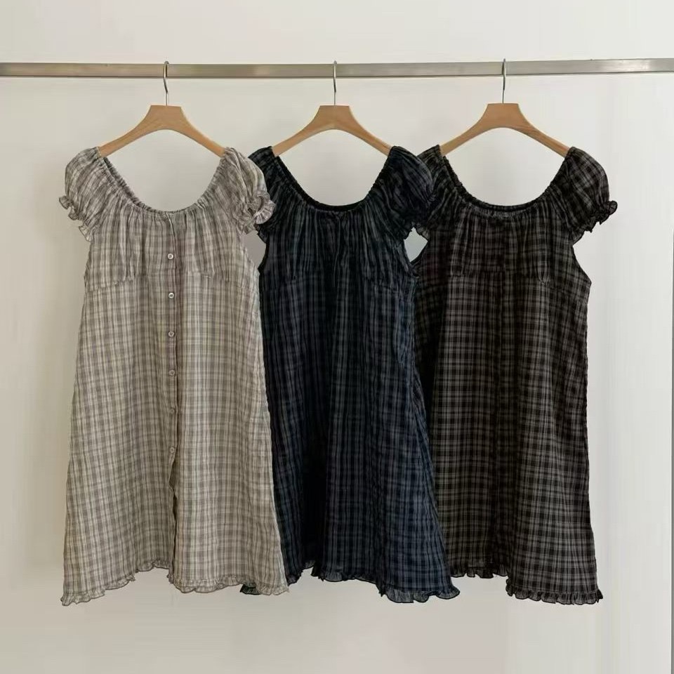 2026 여름 새로운 싱글 착용 또는 스택 착용 작은 청신 체크무늬 인형 드레스