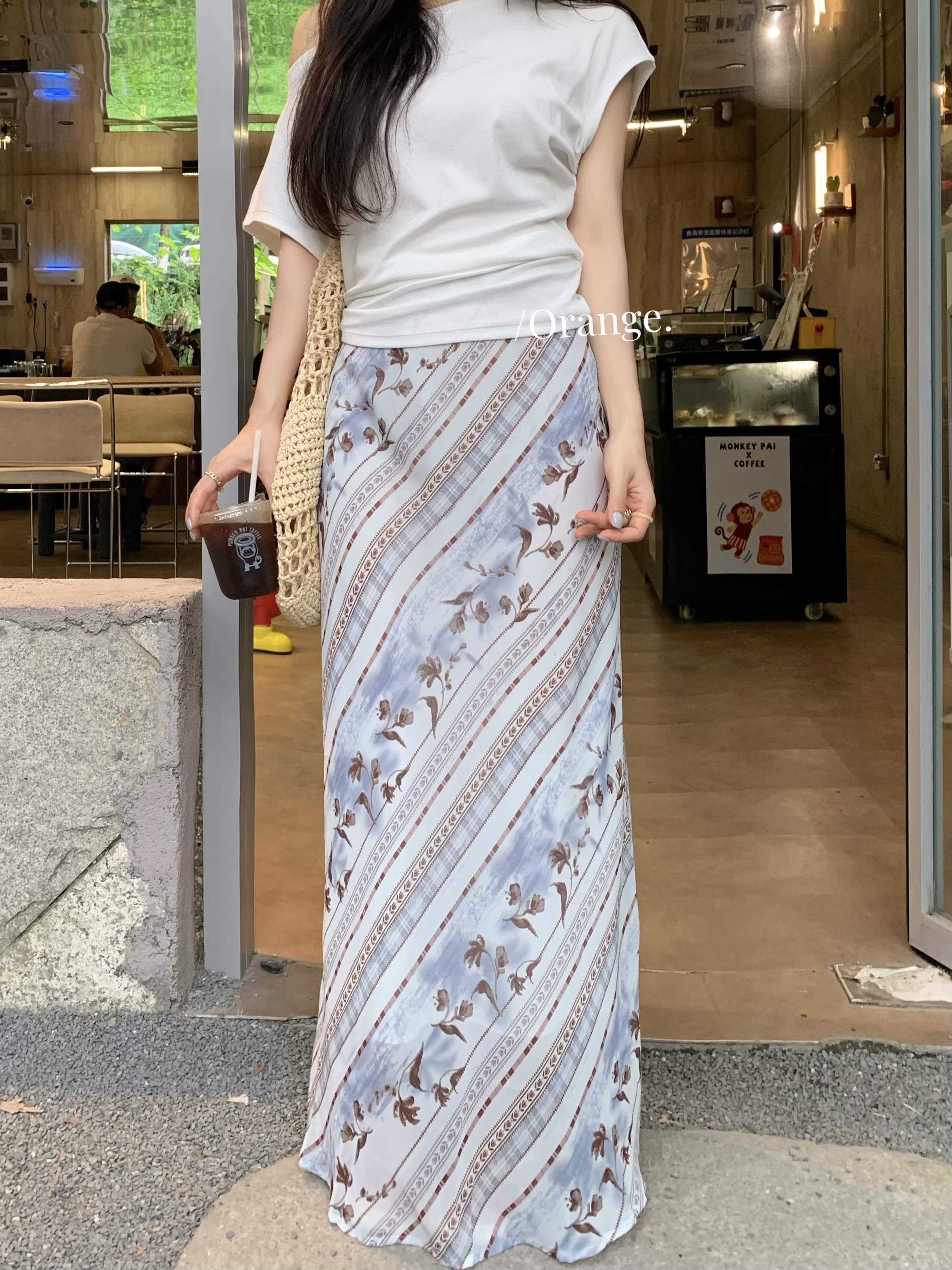 실사 정가 한 부서 여름 반신 스커트 꽃무늬 반신 스커트 불규칙 슬림해 보이는 중간 스커트