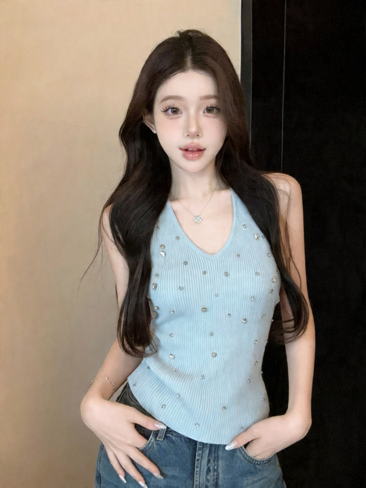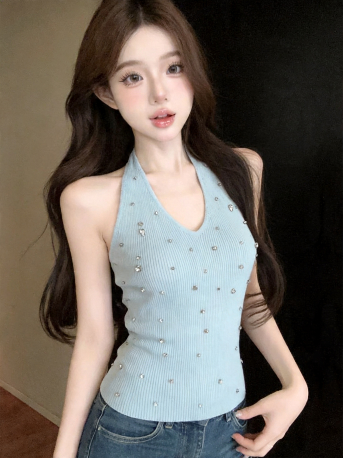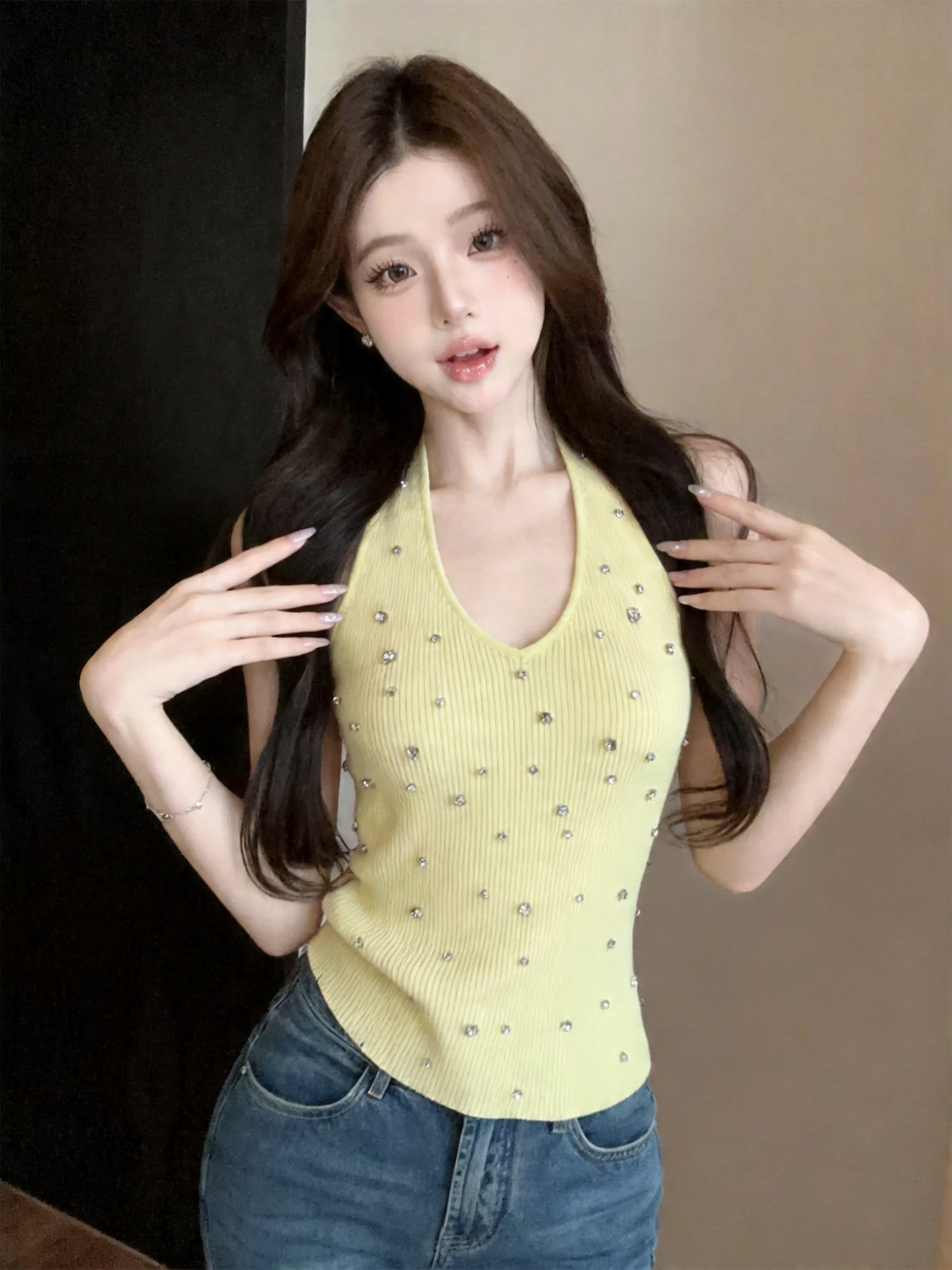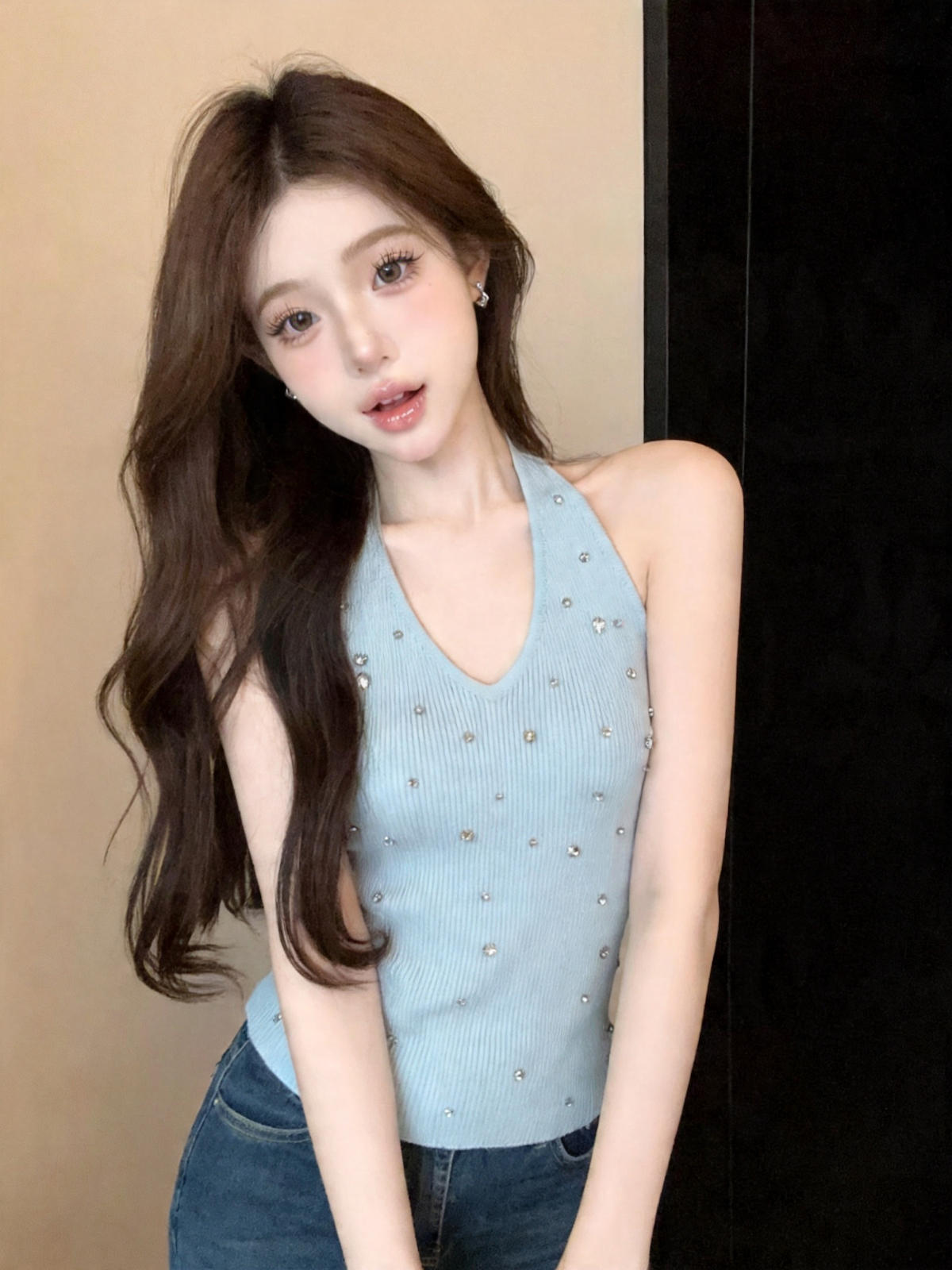 정가 있음 보호 핫걸 행침 목 스와로브스키 민소매 니트 조끼 여성 여름 몸매 가꾸기 슬림해 보이는 외출용 맨위 서비스