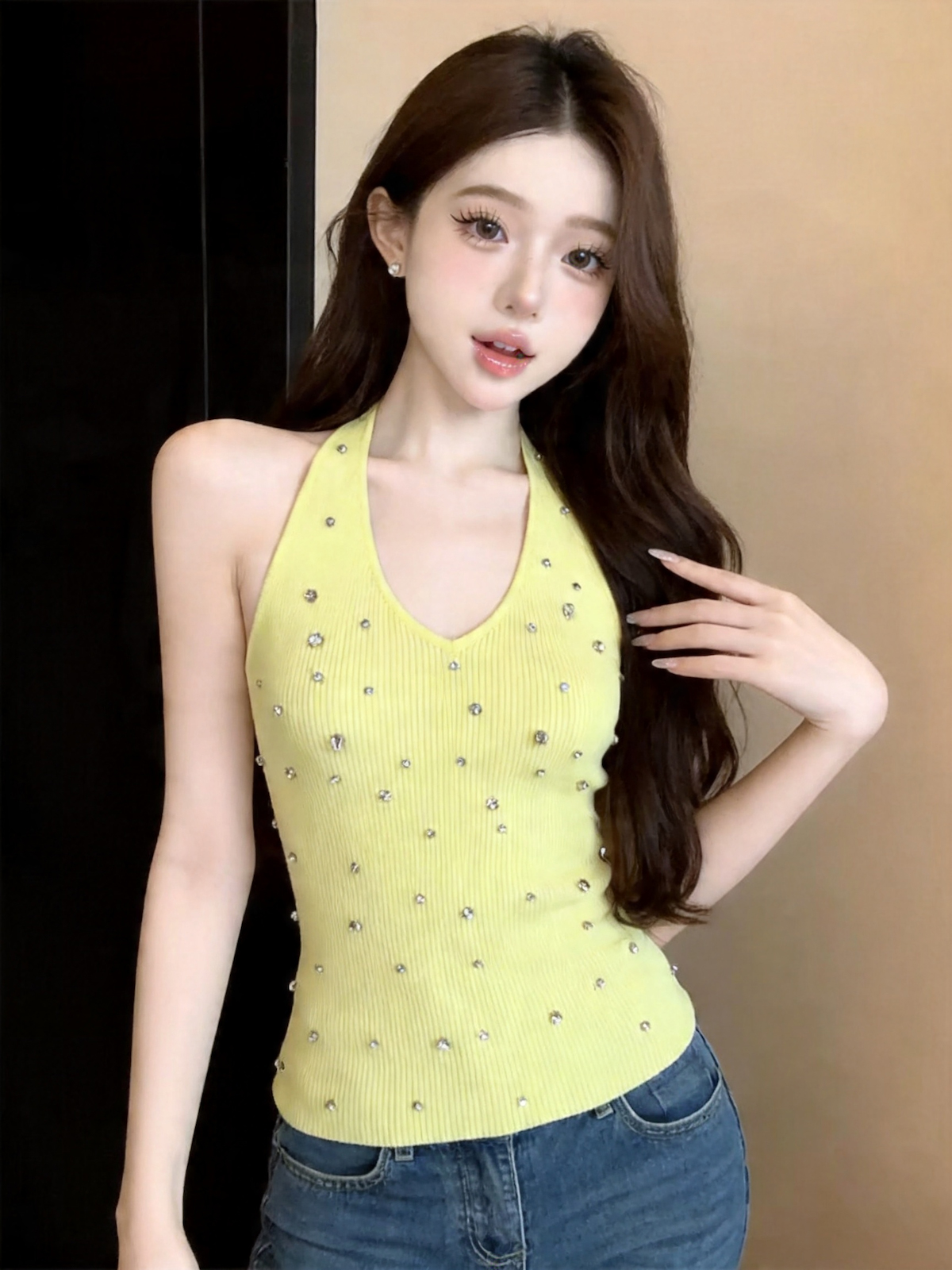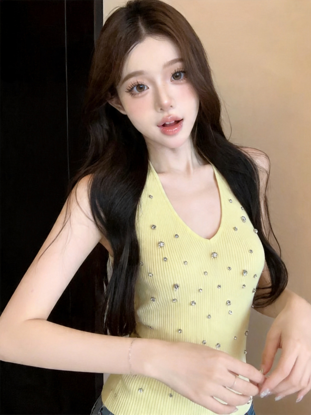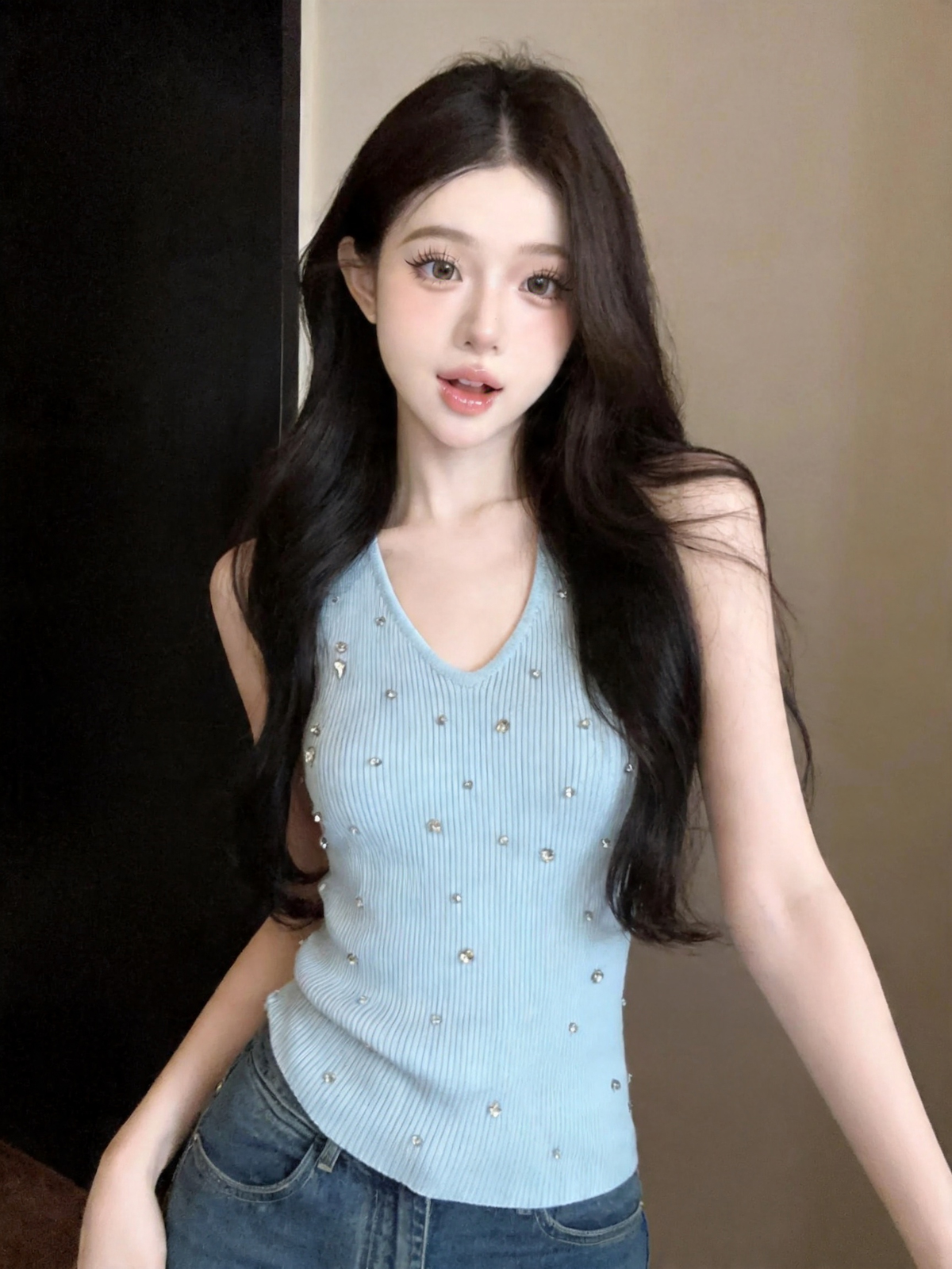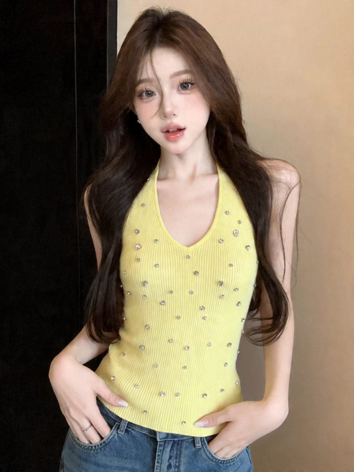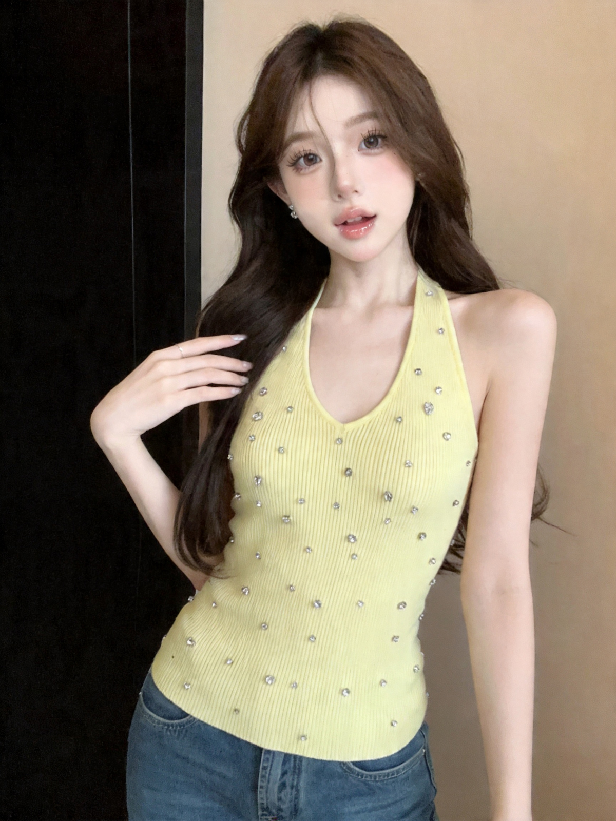 정가 있음 보호 핫걸 행침 목 스와로브스키 민소매 니트 조끼 여성 여름 몸매 가꾸기 슬림해 보이는 외출용 맨위 서비스