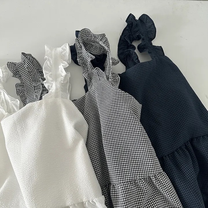 2026 여름 새로운 싱글 착용 또는 스택 착용 작은 청신 체크무늬 인형 드레스