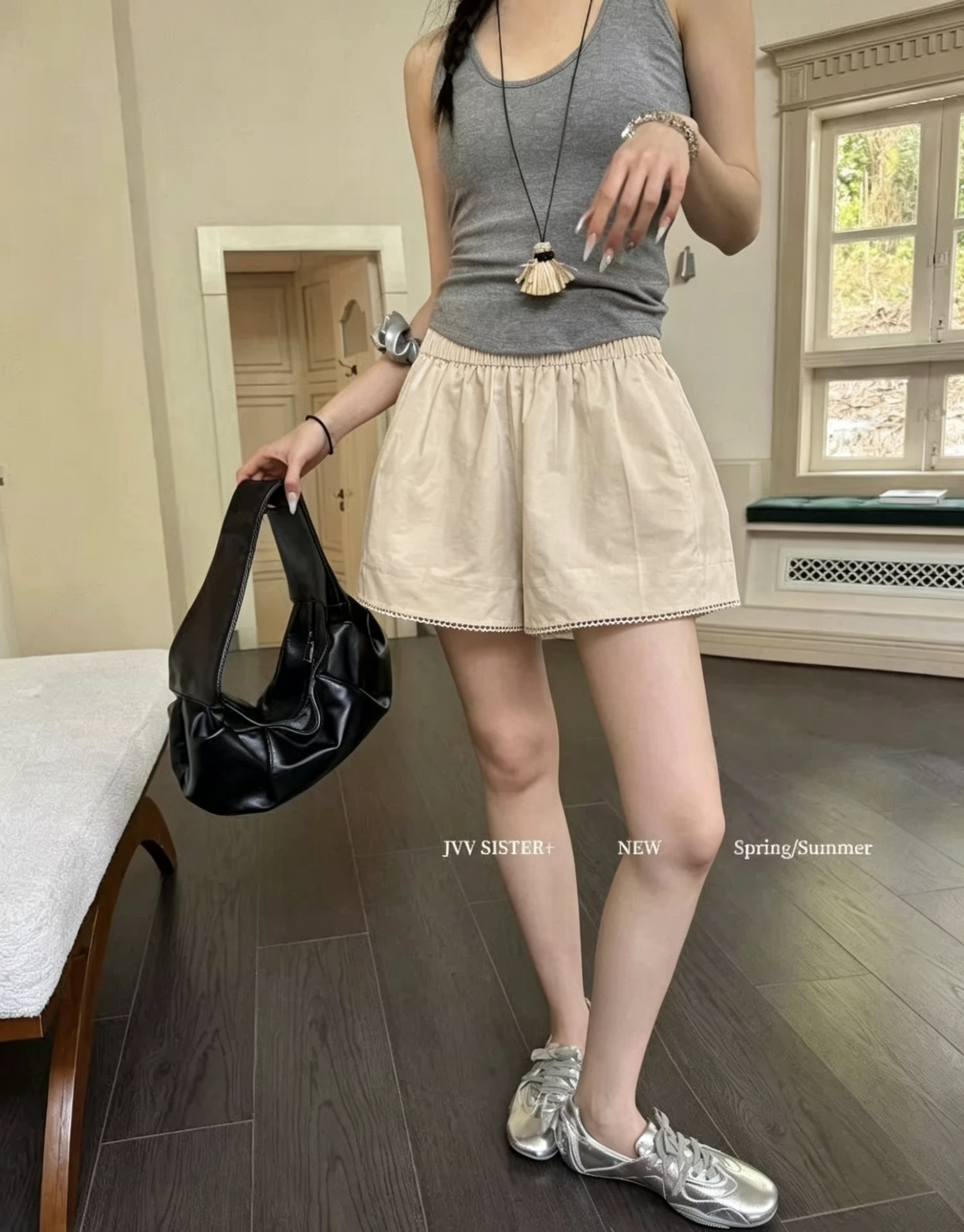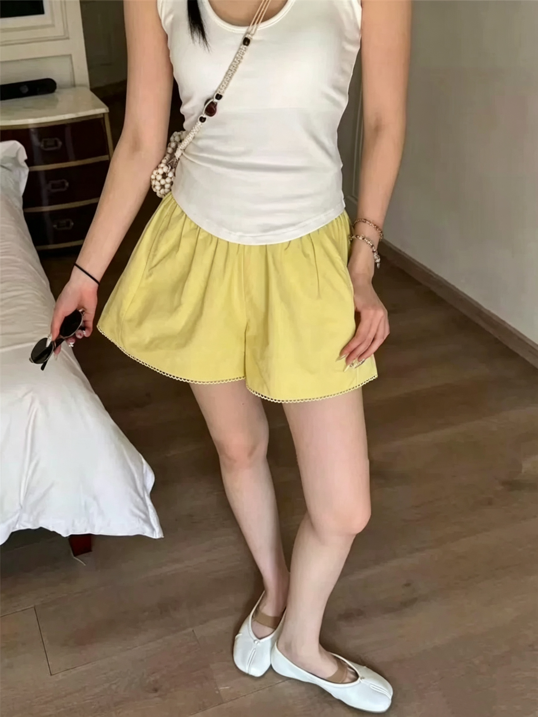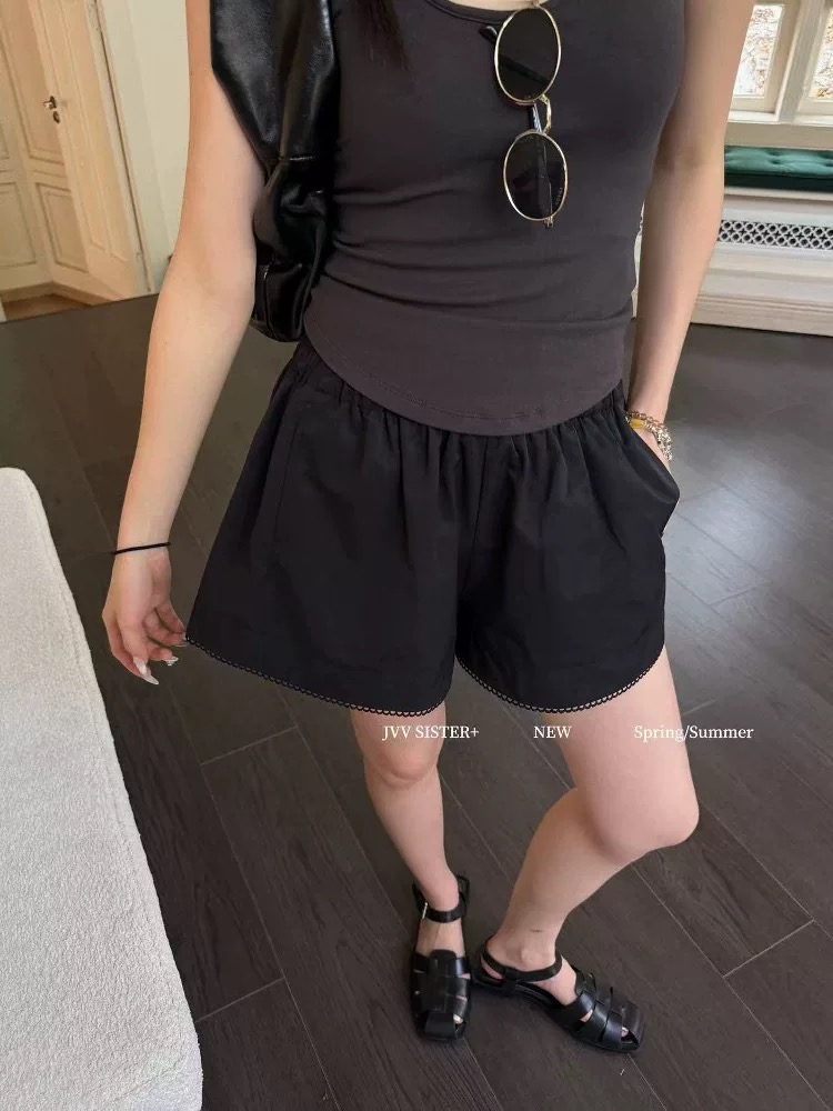2026 여름 새로운 여성 한국 스타일 패션 레이스 반바지 하이웨이스트 슬림해 보이는 와이드 레그 팬츠 캐주얼 다용도 핫 바지 트렌디