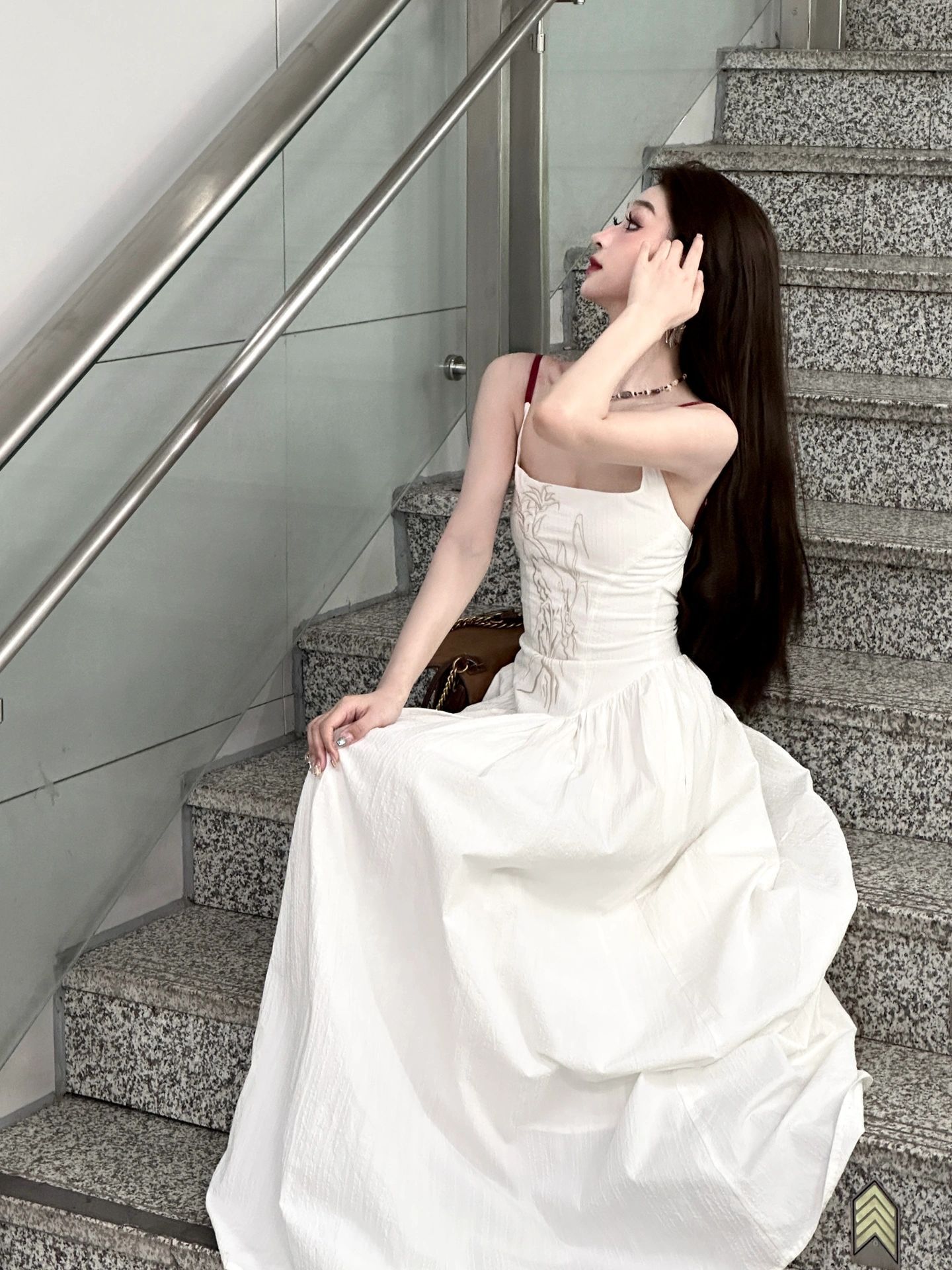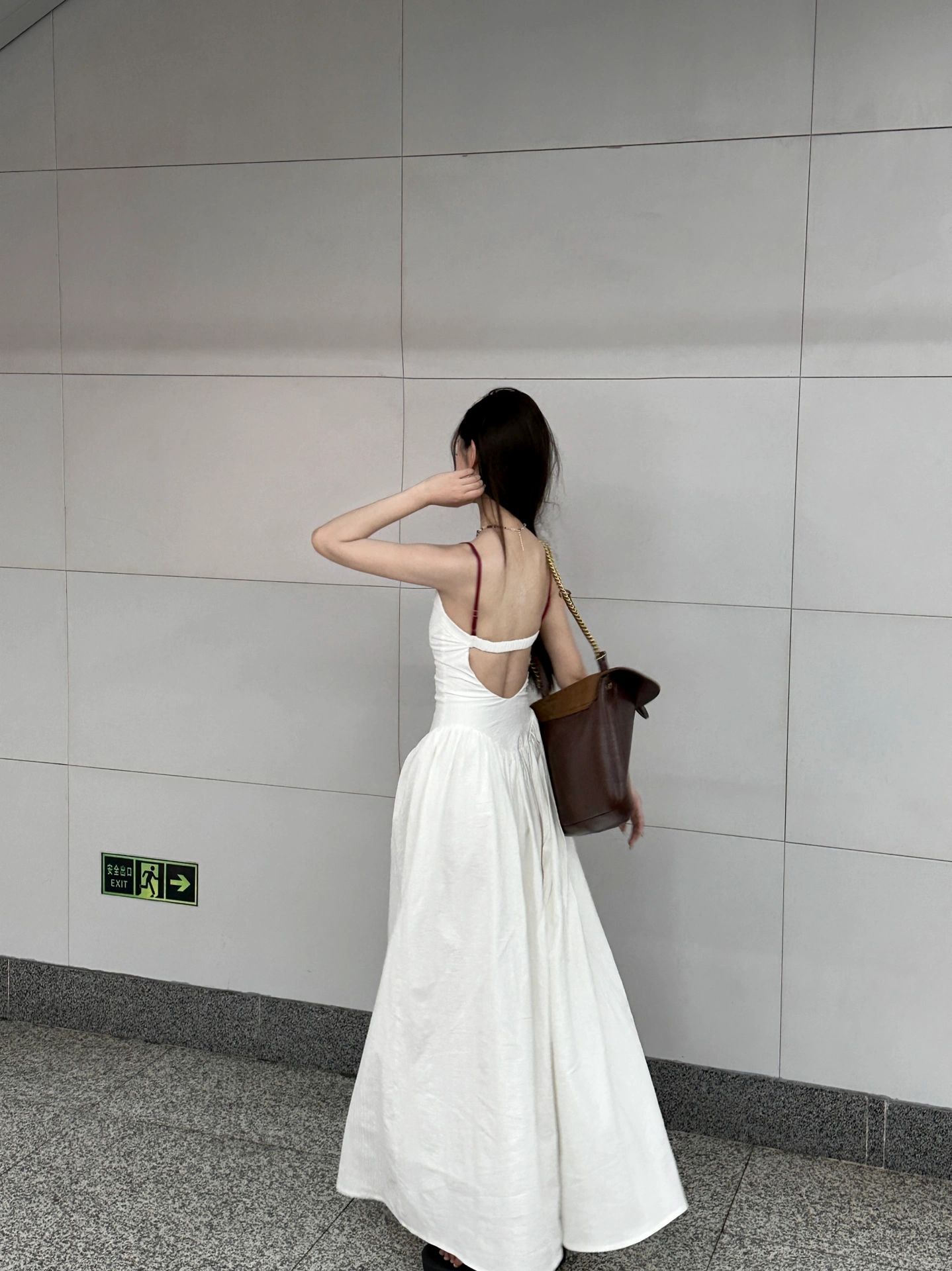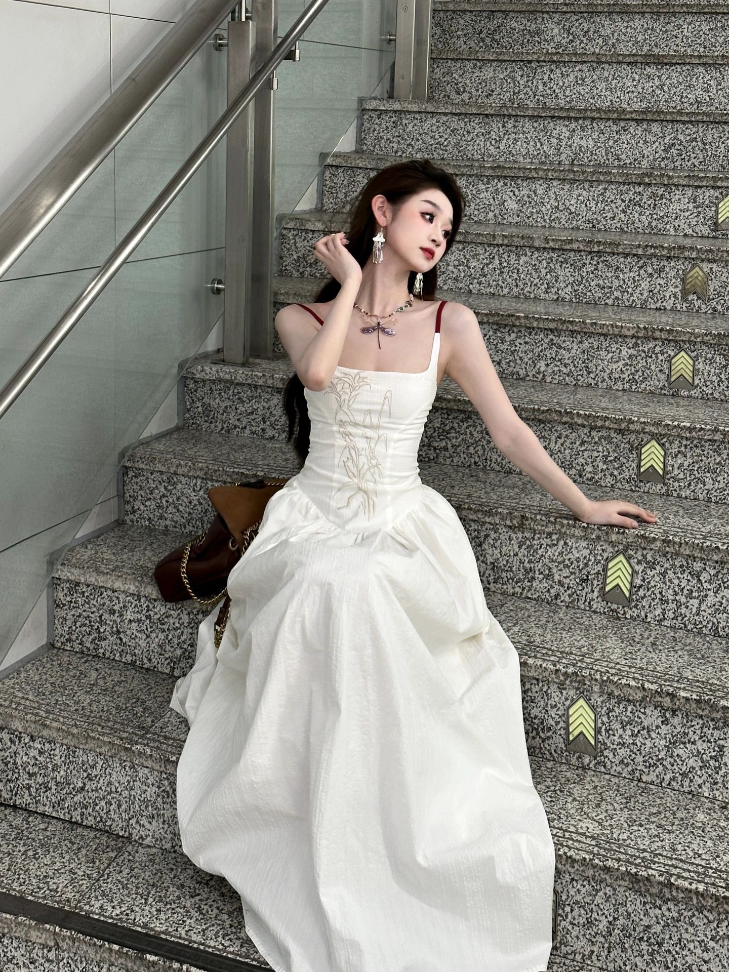 이중층 세트 인사이드 2026 새로운 새로운 중식 자수 롱 코트 백리스 허리 수축 슬림해 보이는 슬립 여성 드레스