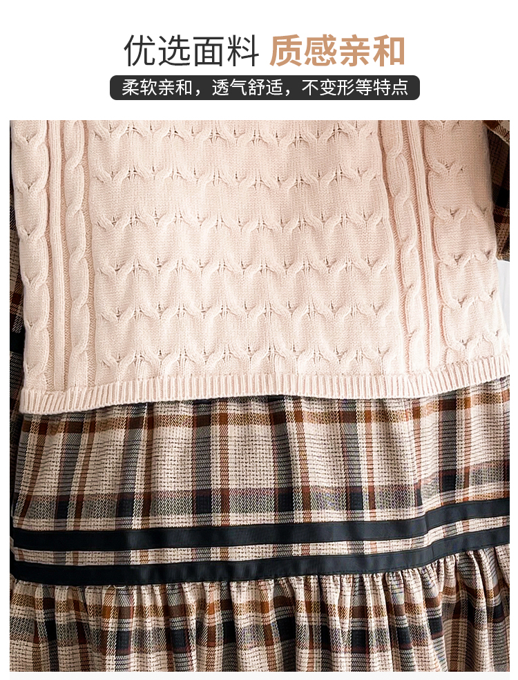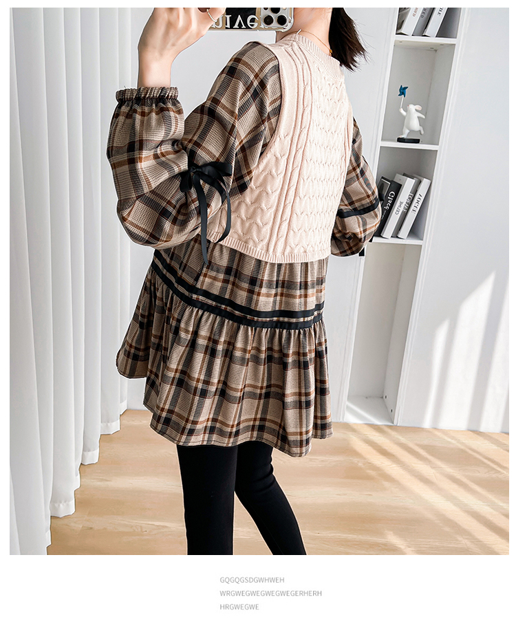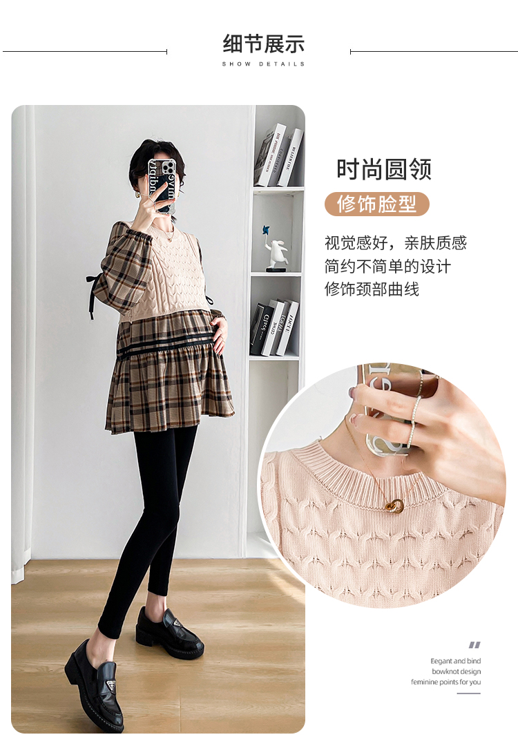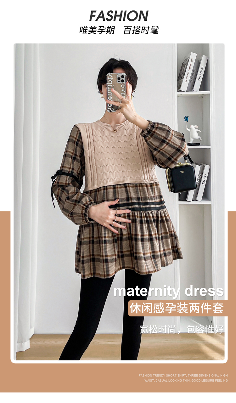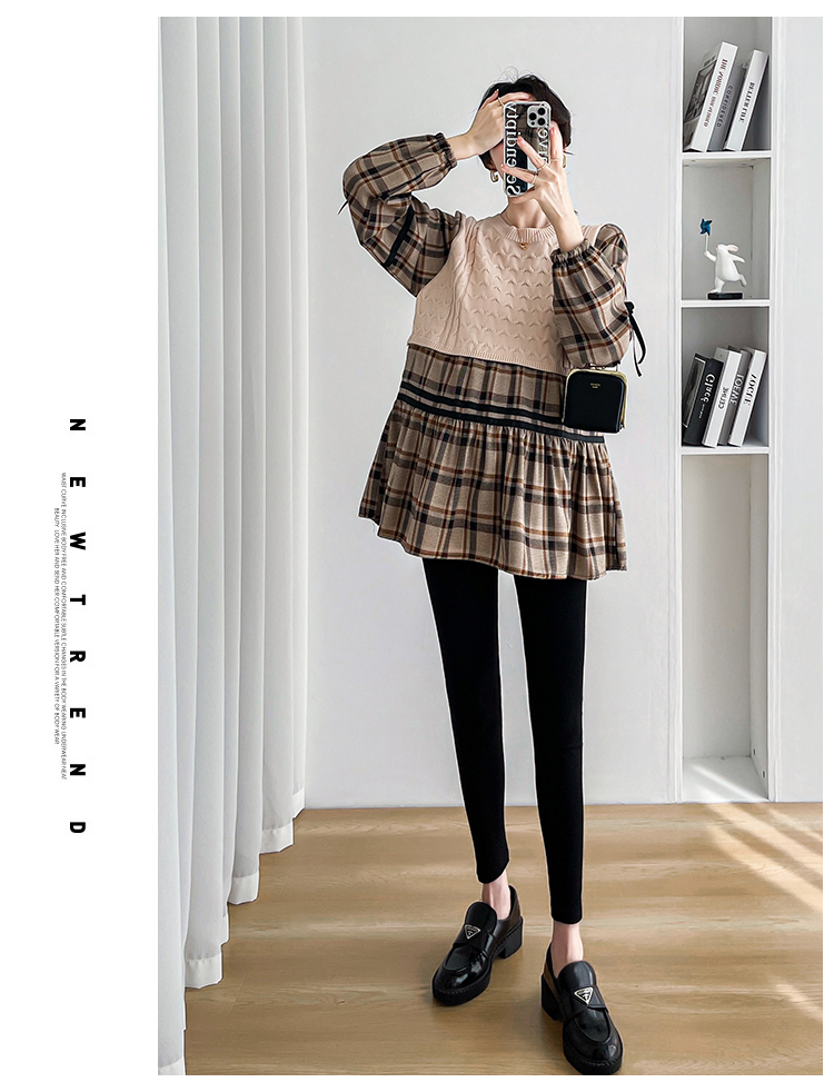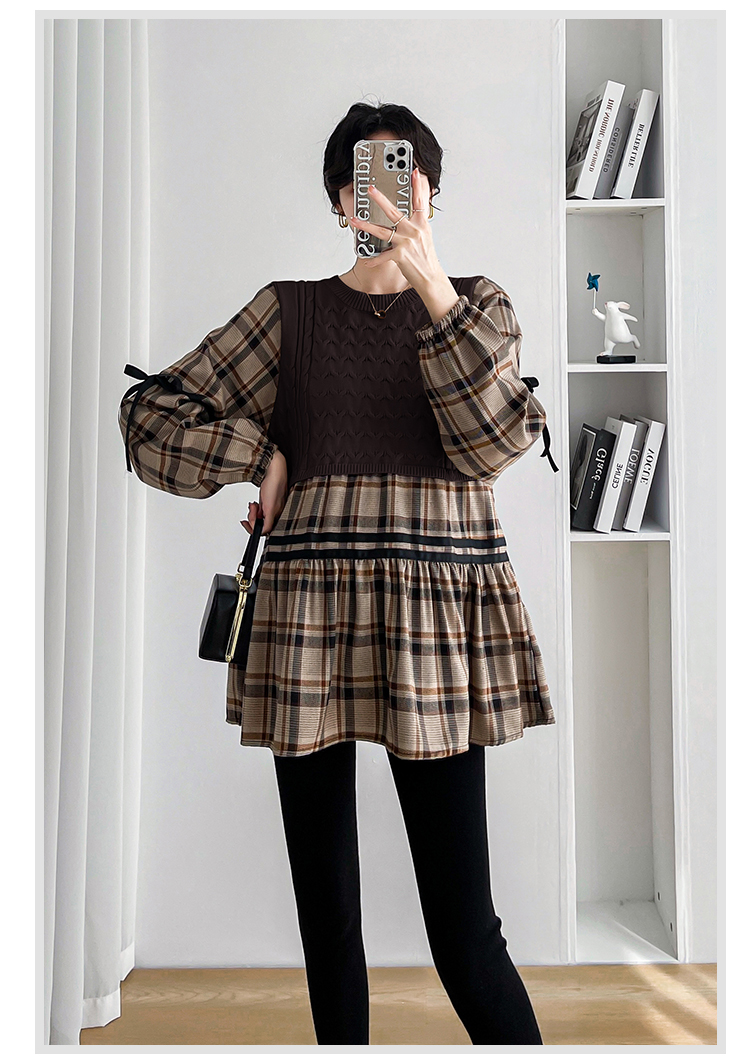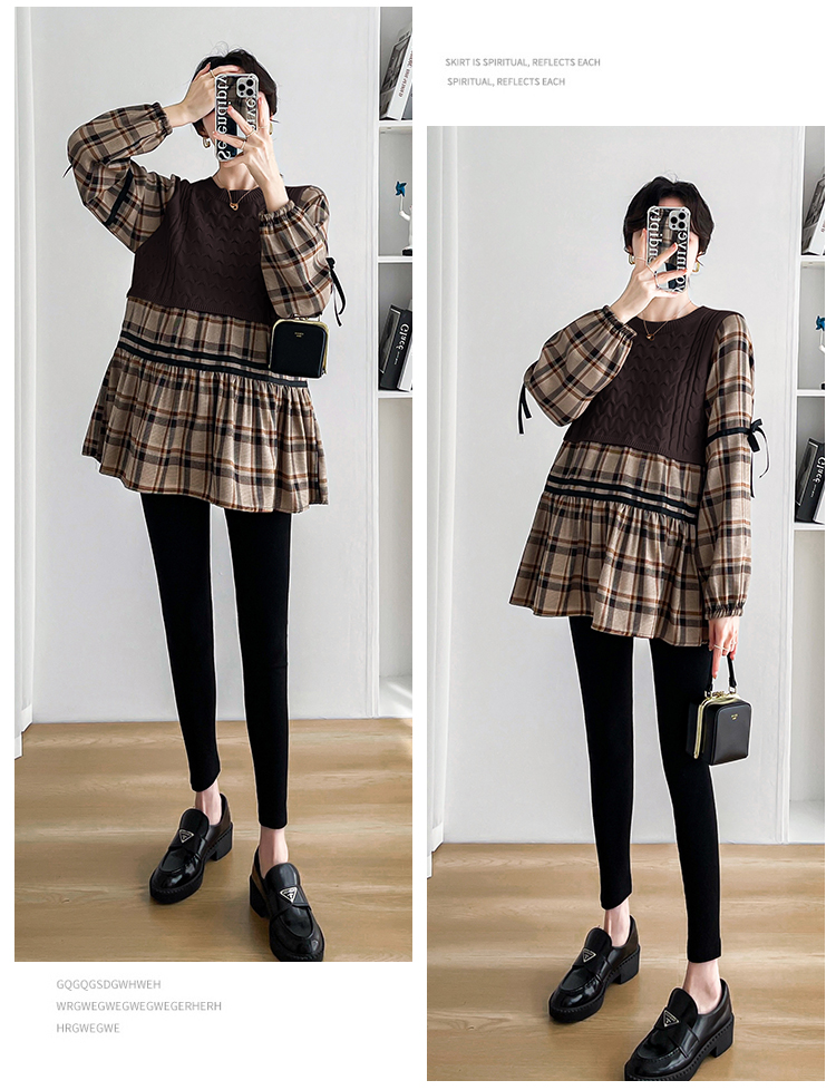 실사 임산부 봄 드레스 인터넷 유명인 한국 스타일 루즈핏 체크무늬 패치워크 패션 다용도 인형 셔츠 루즈핏 슬림해 보이는 맨위
