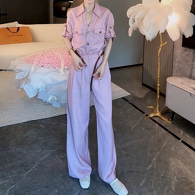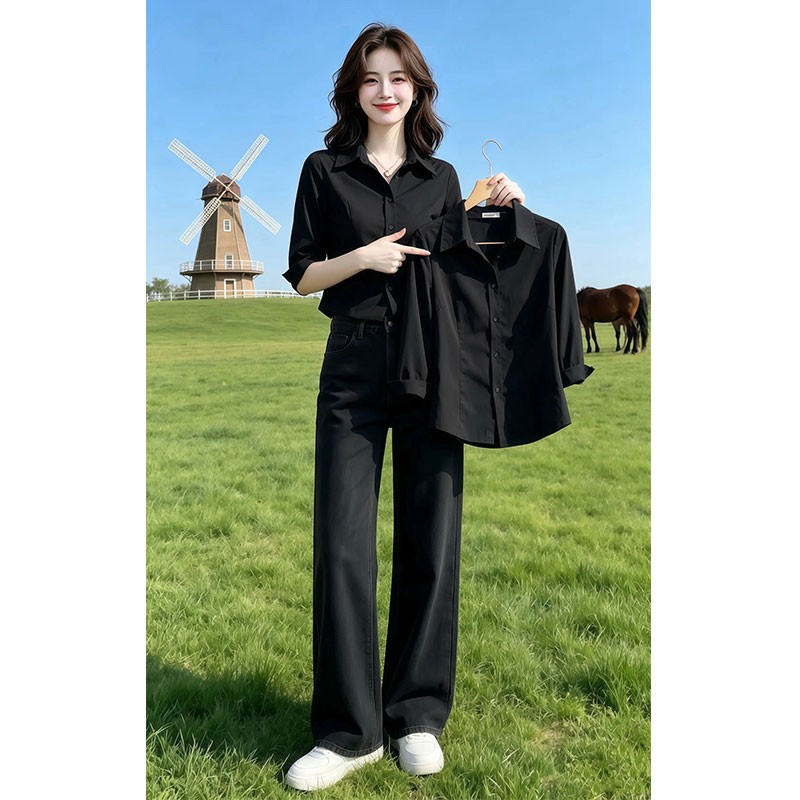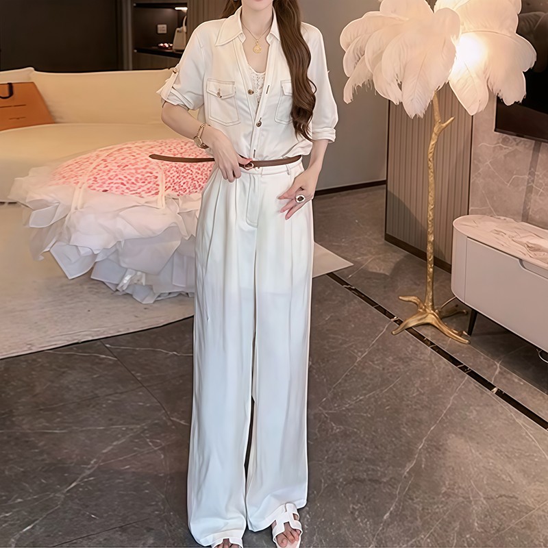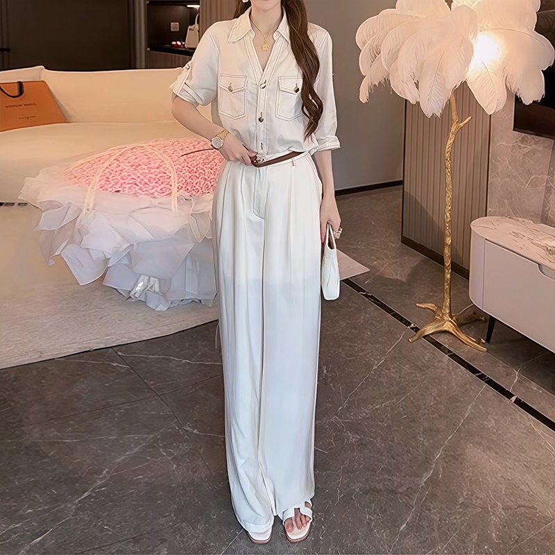 2026 여름 새로운 품질 레트로 셔츠 넓은 다리 패션 세트 고급 센스 셔츠 바지 투피스 세트