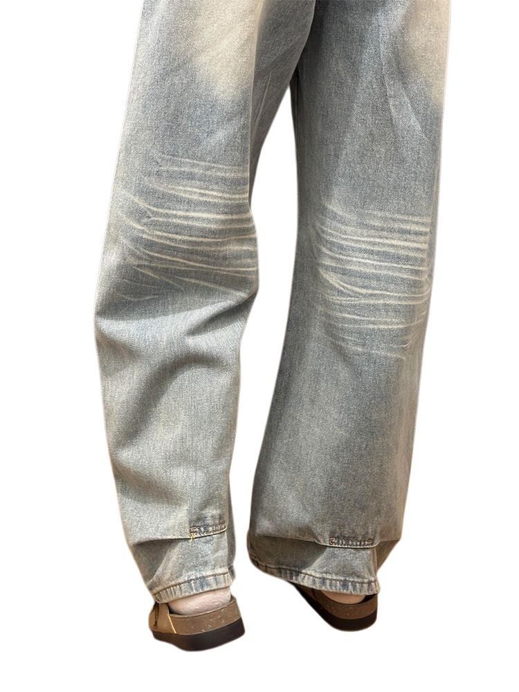 아메리칸 레트로 파리 버클 디자인 대나무 마디 청바지 남녀 워싱 스트레이트 루즈핏 다용도 긴 바지 ins