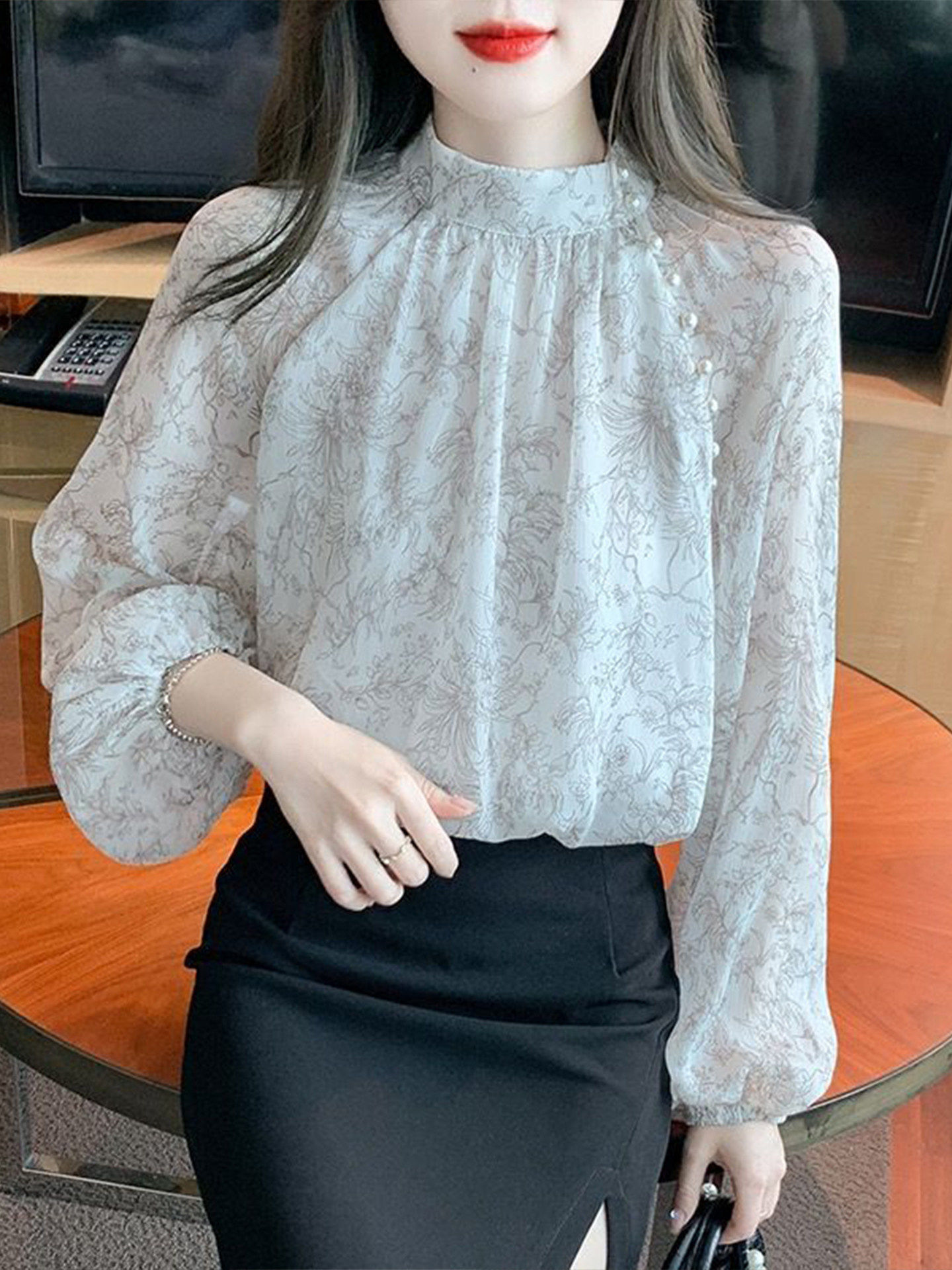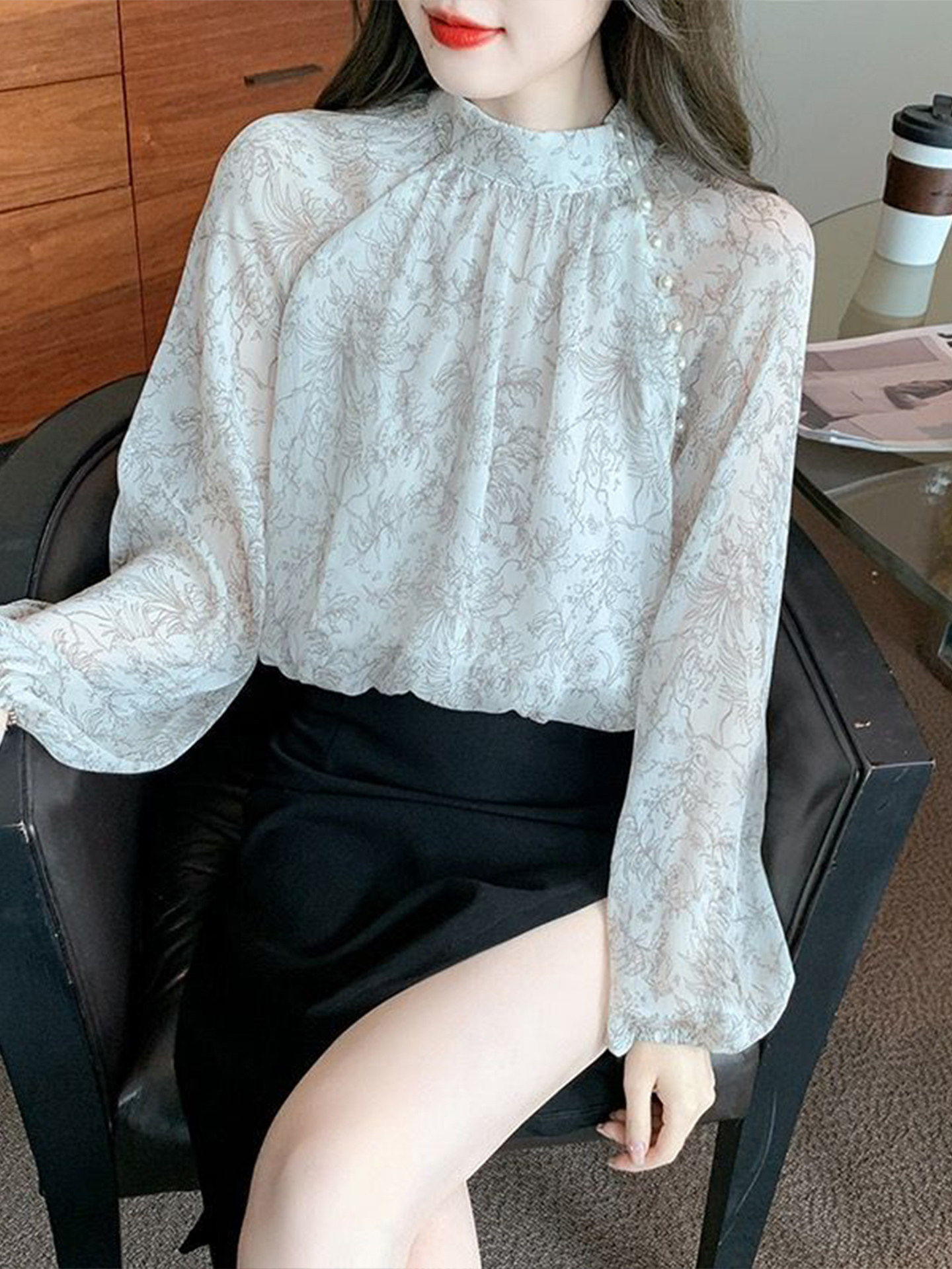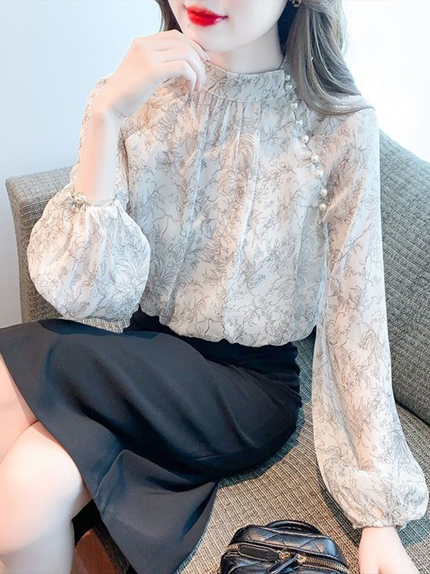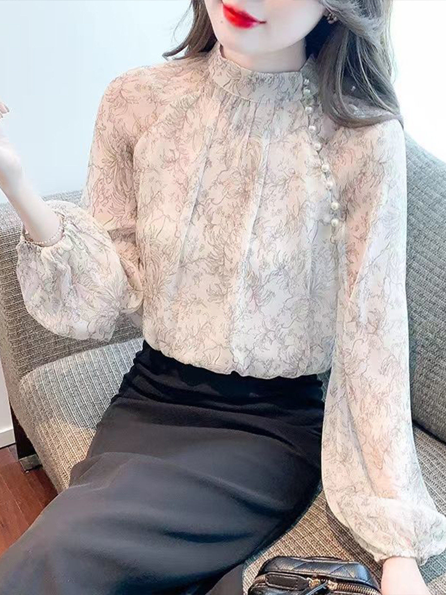 프랑스식 고급 꽃무늬 쉬폰 여성 셔츠 봄 2026 새로운 외국 가스 아름다운 긴팔 기본 셔츠 작은 셔츠 맨위
