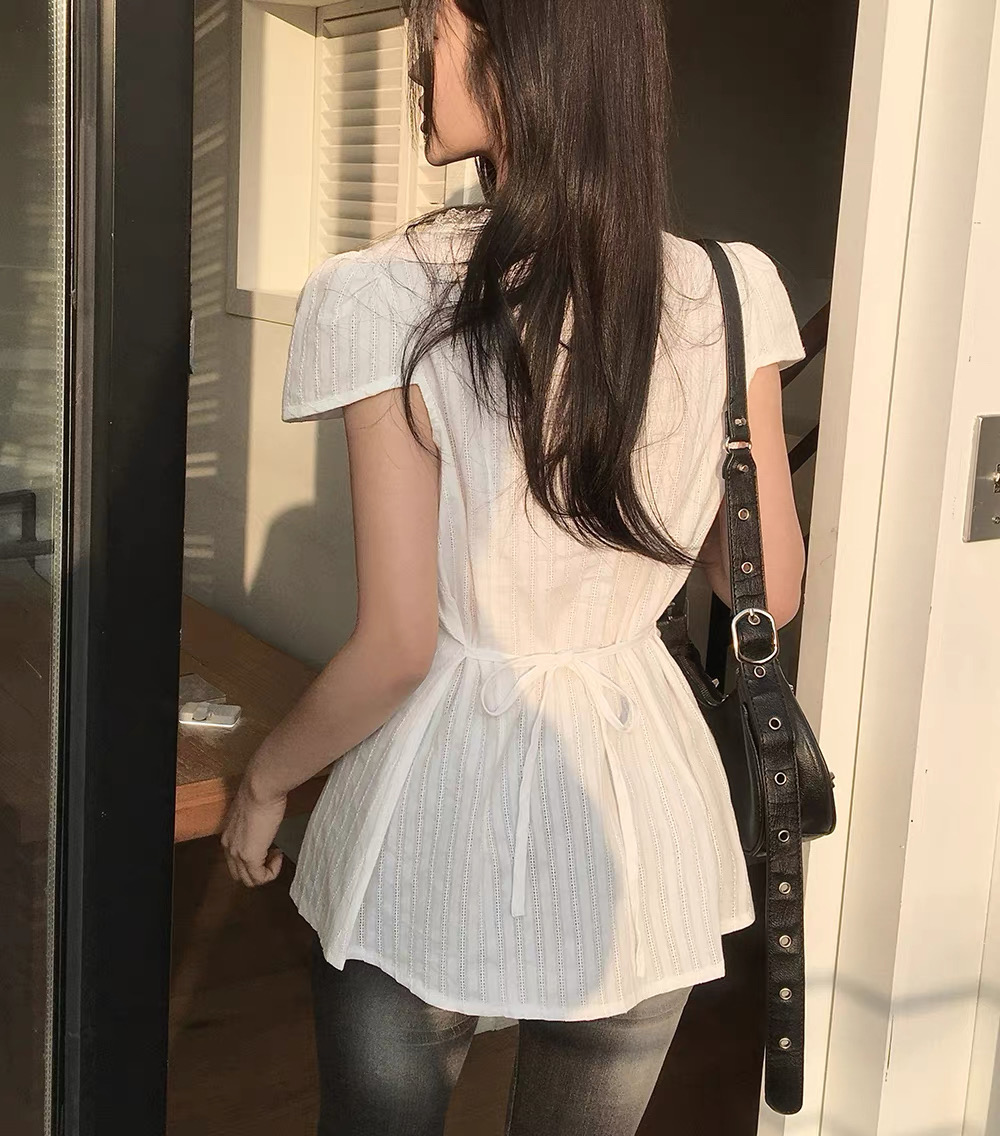 있음 선적 한국 chic 품격 미니멀리즘 광장 칼라 레이스업 허리 수축 셔츠