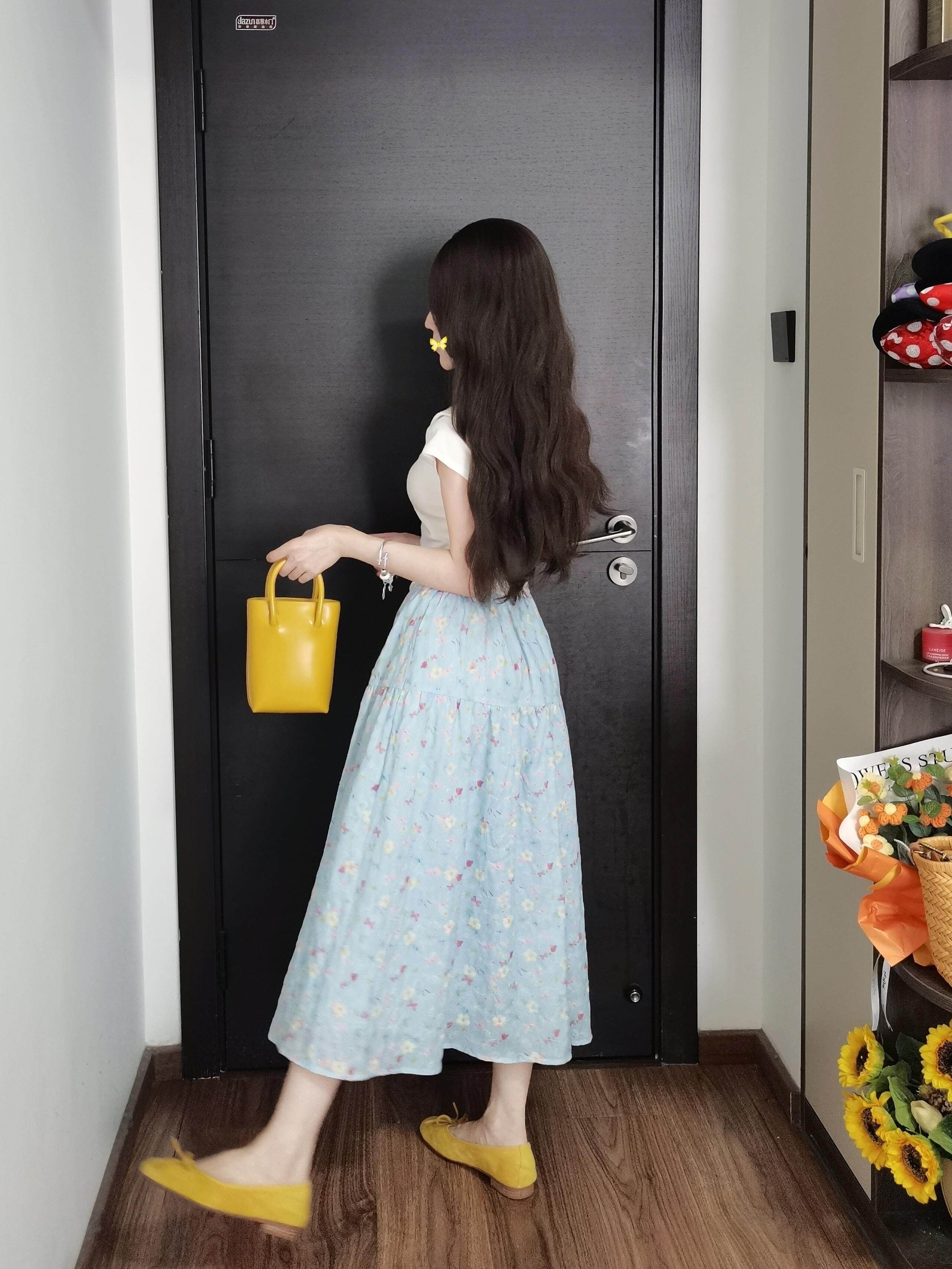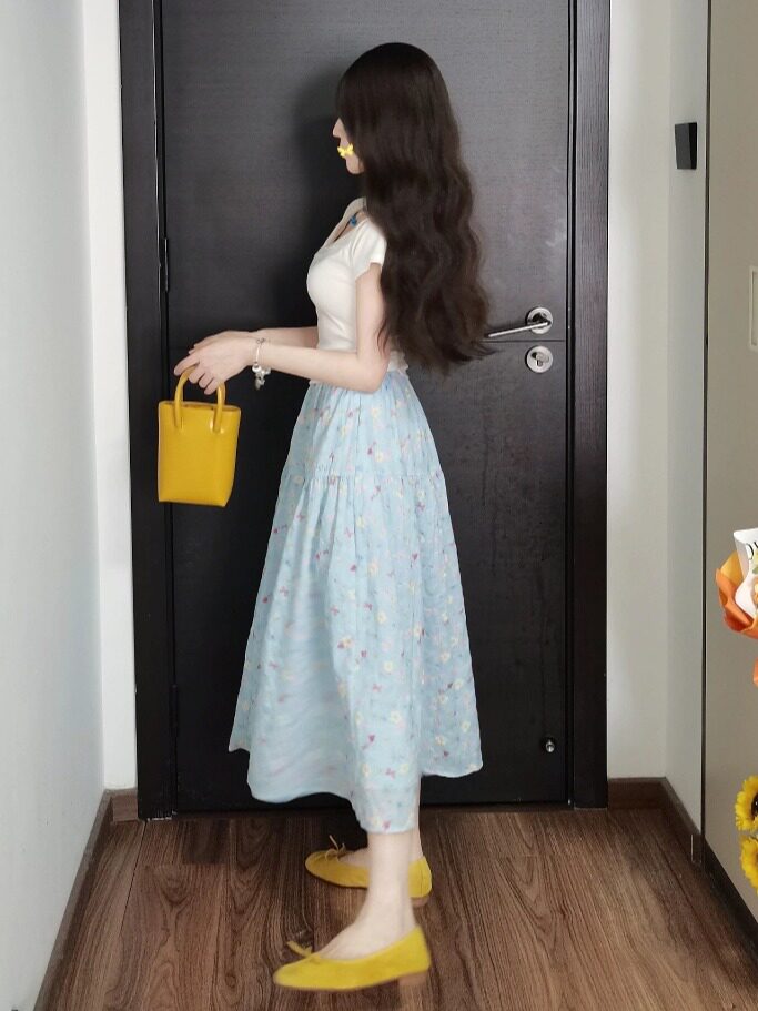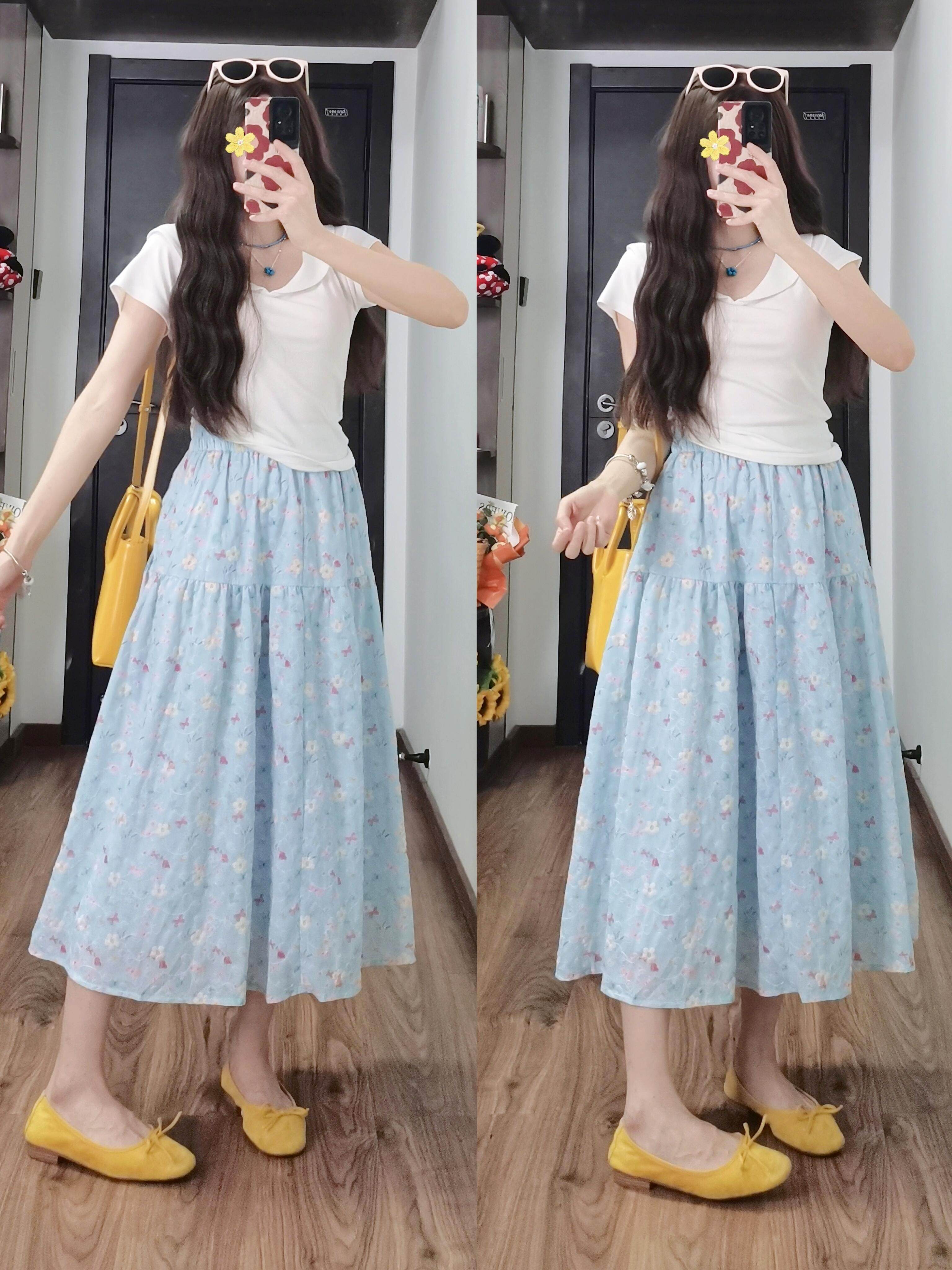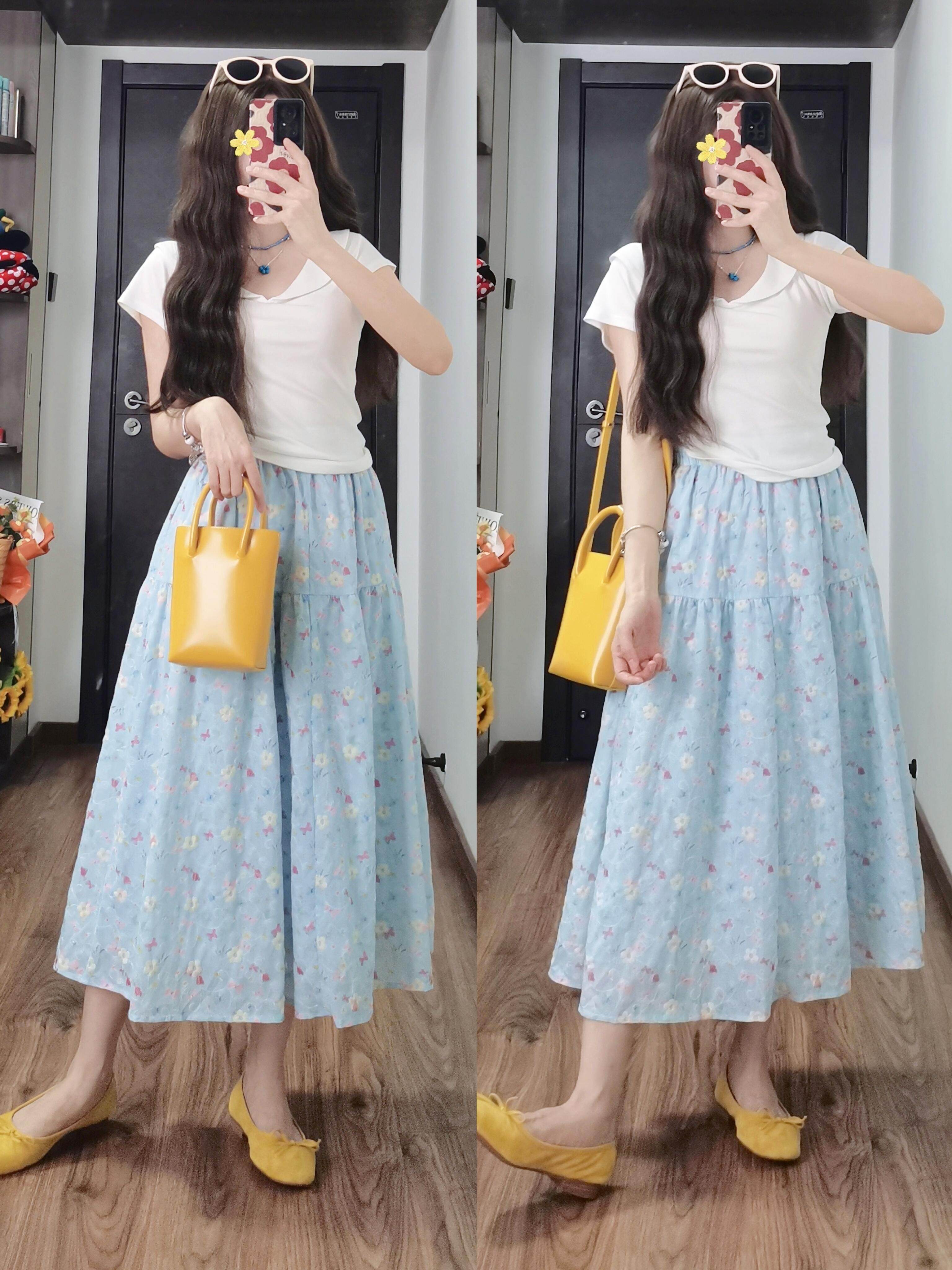 여름 착용 가져 가라. 전체 집합 빅 사이즈 지방 mm 베이비 칼라 티셔츠 꽃무늬 반신 스커트 품격 연령 감소 잘 생긴 세트 여성