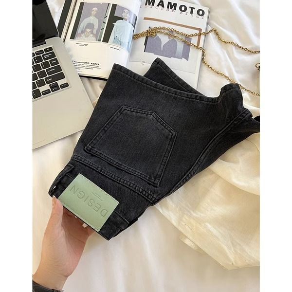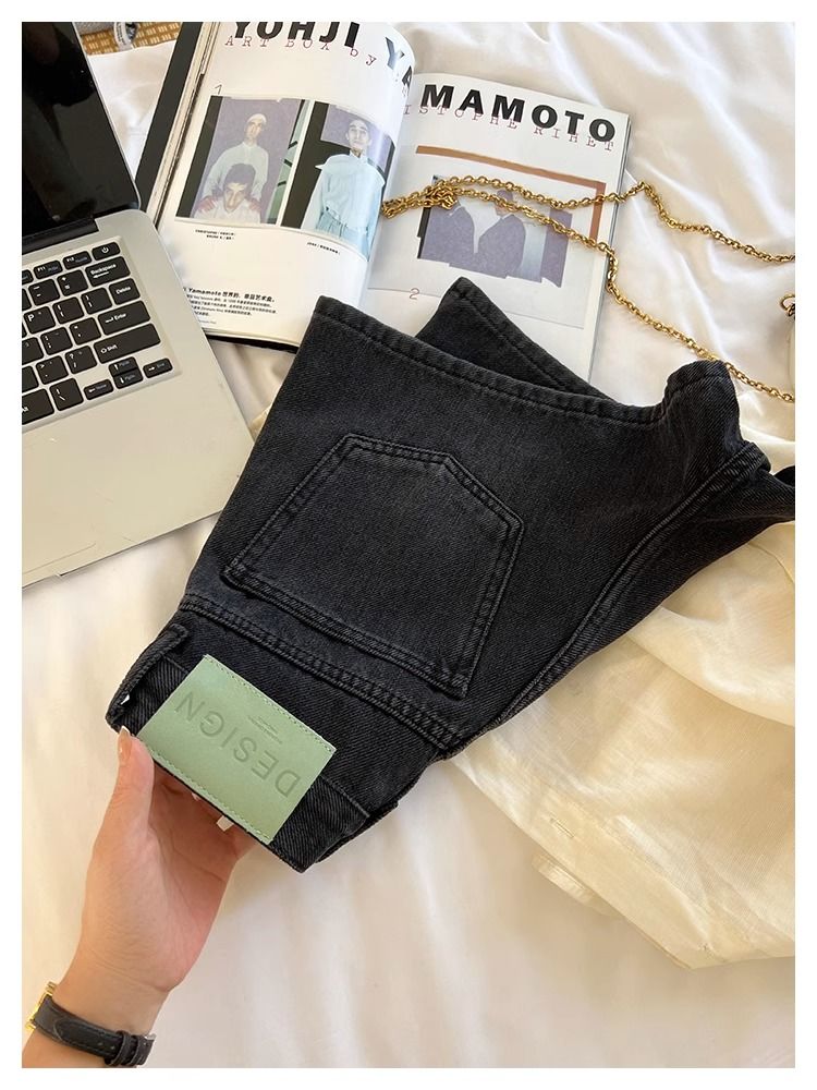 아메리칸 레트로 파리 버클 디자인 대나무 마디 청바지 남녀 워싱 스트레이트 루즈핏 다용도 긴 바지 ins