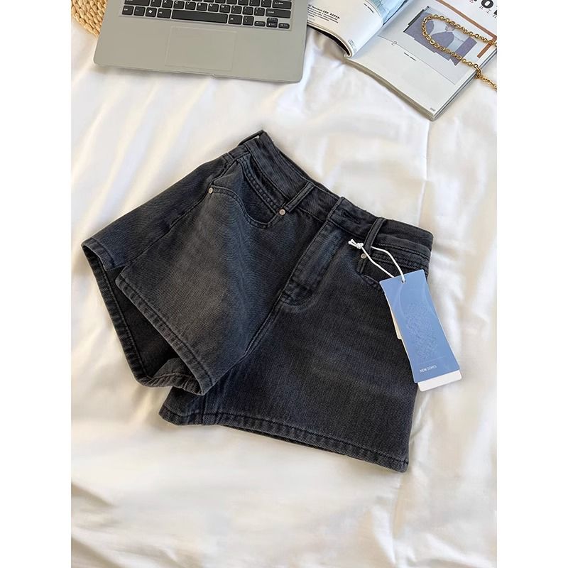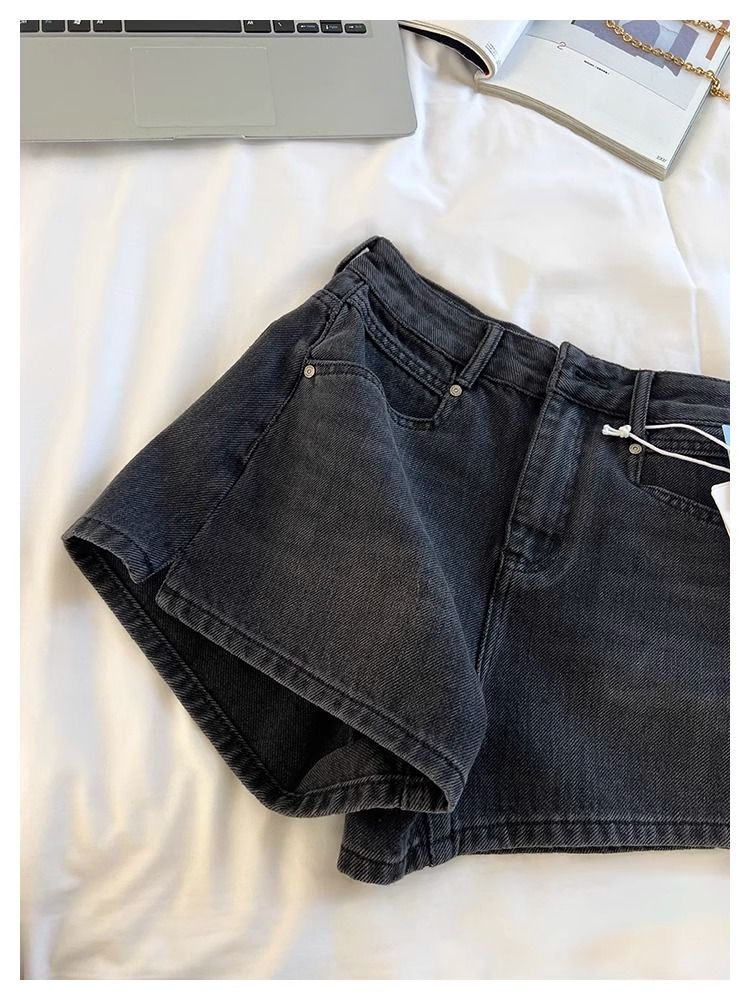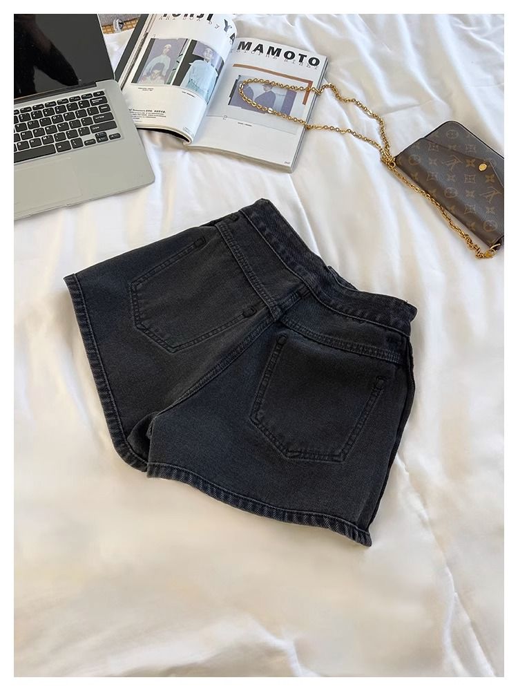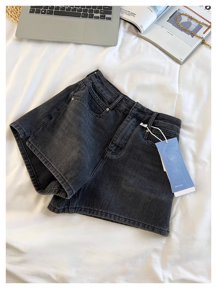 한 스타일 여름 높음 거리 미니멀리즘 다용도 데님 반바지 여성 의류 새로운 레트로 하이웨이스트 핫걸 한 마디 넓은 다리 핫 바지