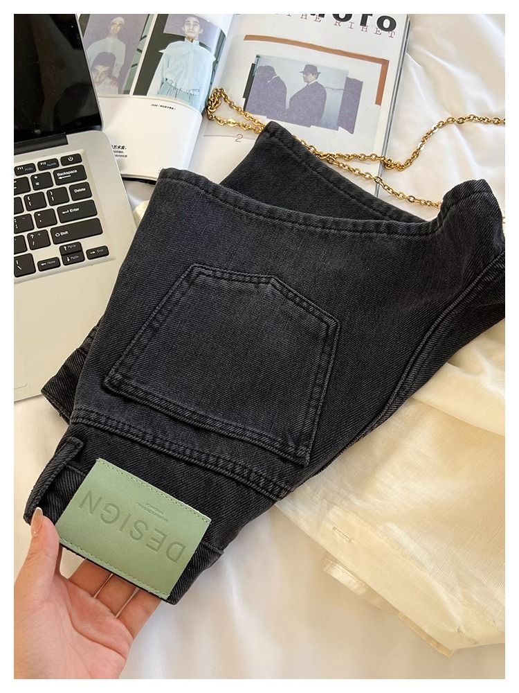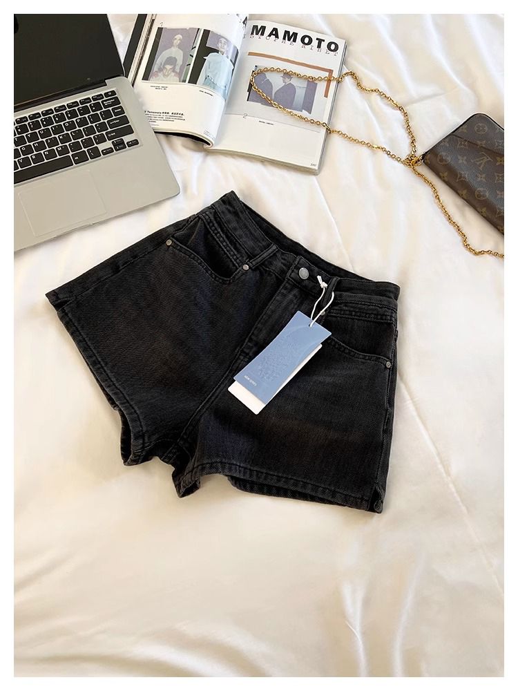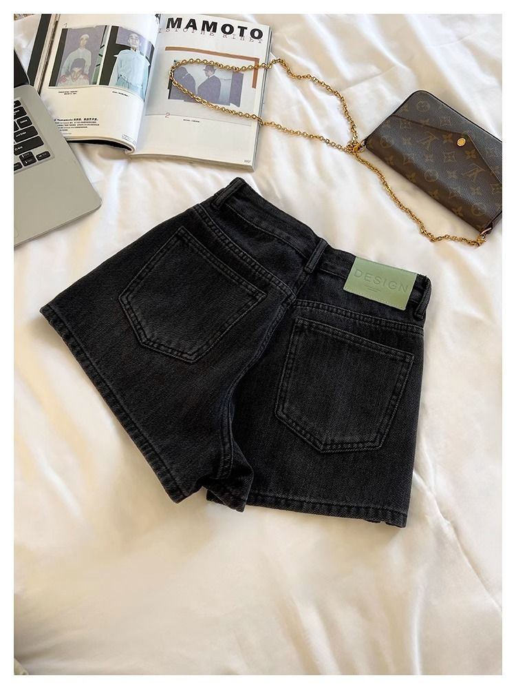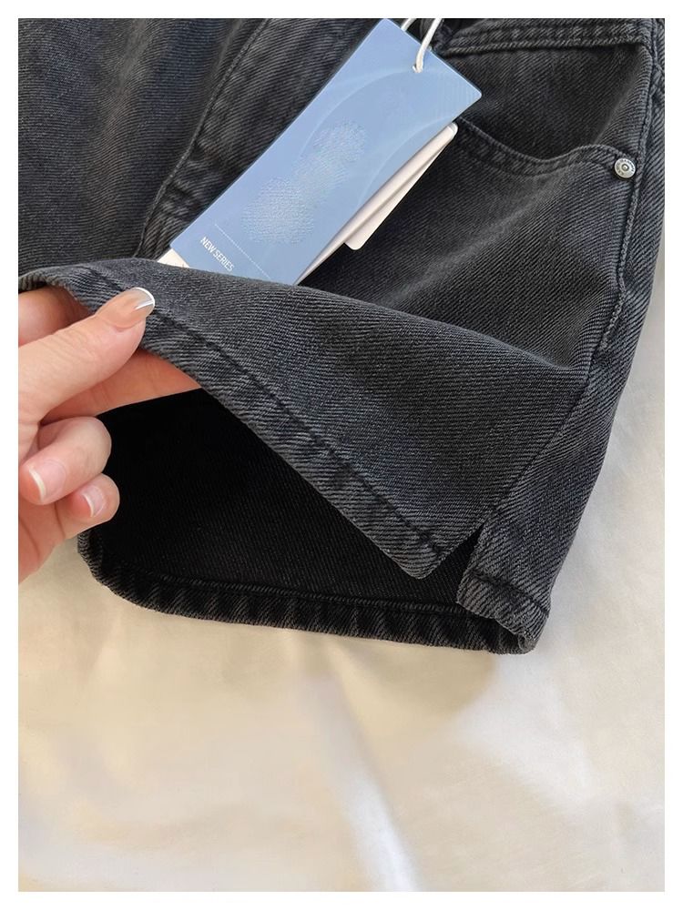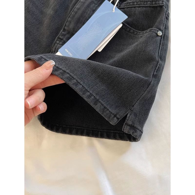 2026 트임 하이웨이스트 데님 반바지 여성 여름 빅 사이즈 검정색 루즈핏 슬림해 보이는 새로운 품격 미니멀리즘 뜨거운 바지