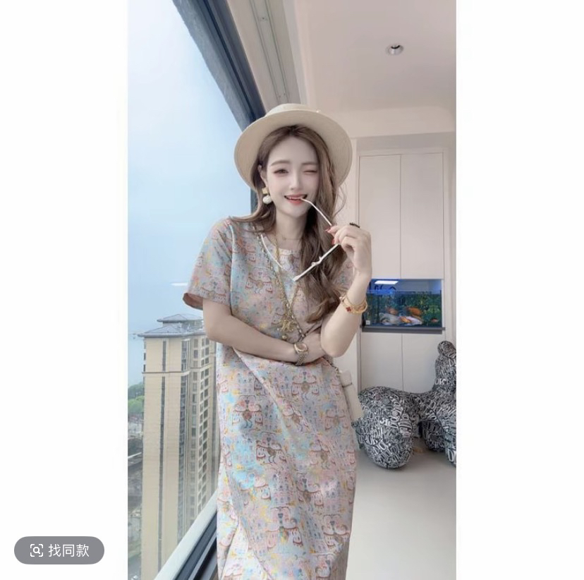 이슬 염색 장미 새로운 품격 빛 럭셔리 여름 국풍 슬림해 보이는 드레스 lw26873