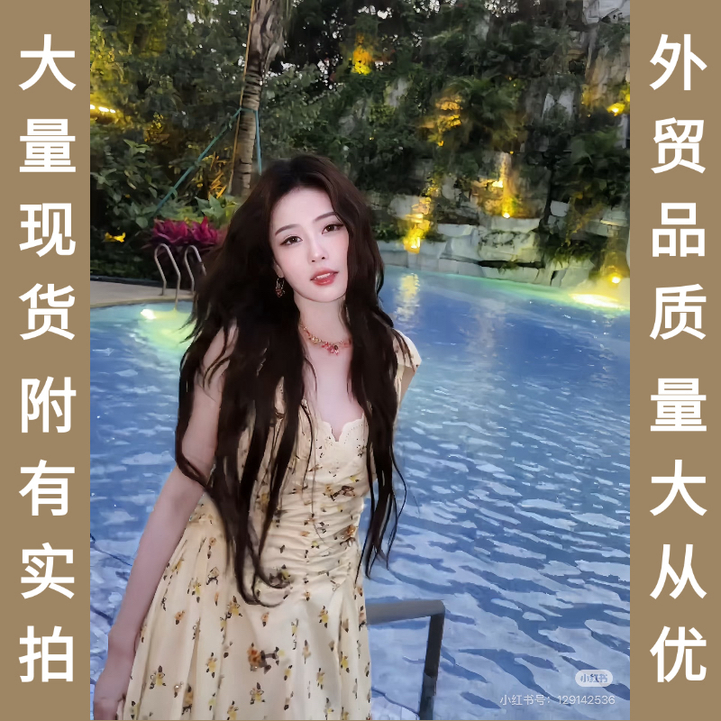 2026 프랑스식 품격 V넥 꽃무늬 순수한 욕망 하이웨이스트 치마 여성 지방 mm 여름 우아한 태도 가짜 아름다운 드레스