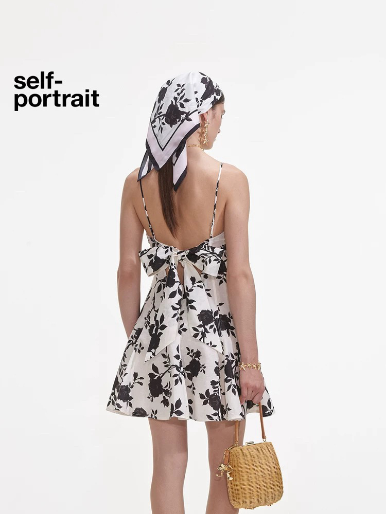 iu 같은 단락 2026 봄 흑인과 백인 꽃무늬 프린트 백리스 레이스업 드레스