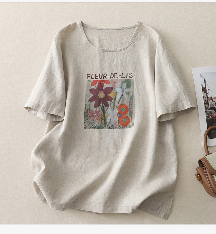 2026 여름 새로운 디자이너 추상 프린트 작은 날다 소매 맨위 루즈핏 슬림해 보이는 아마 작은 셔츠