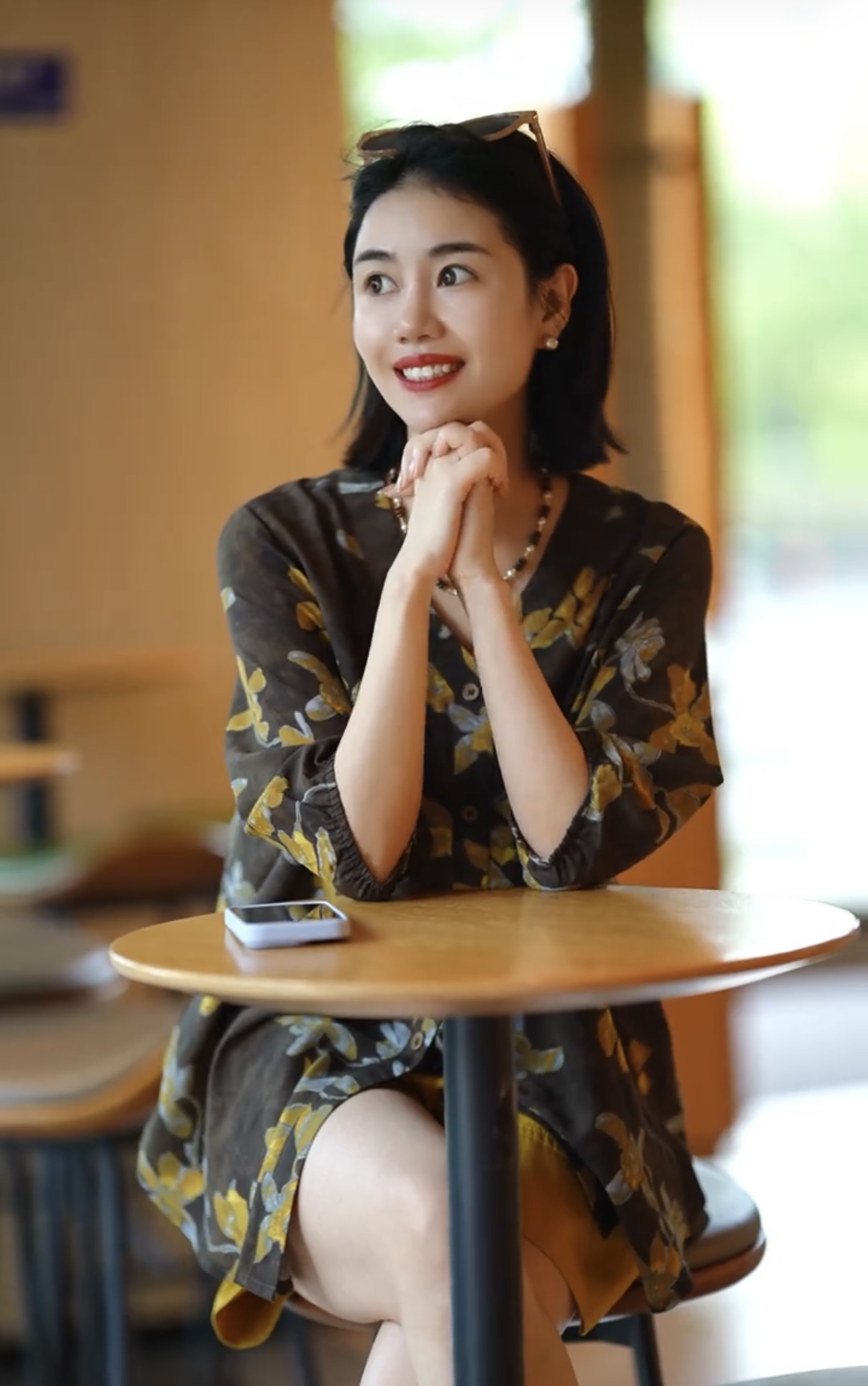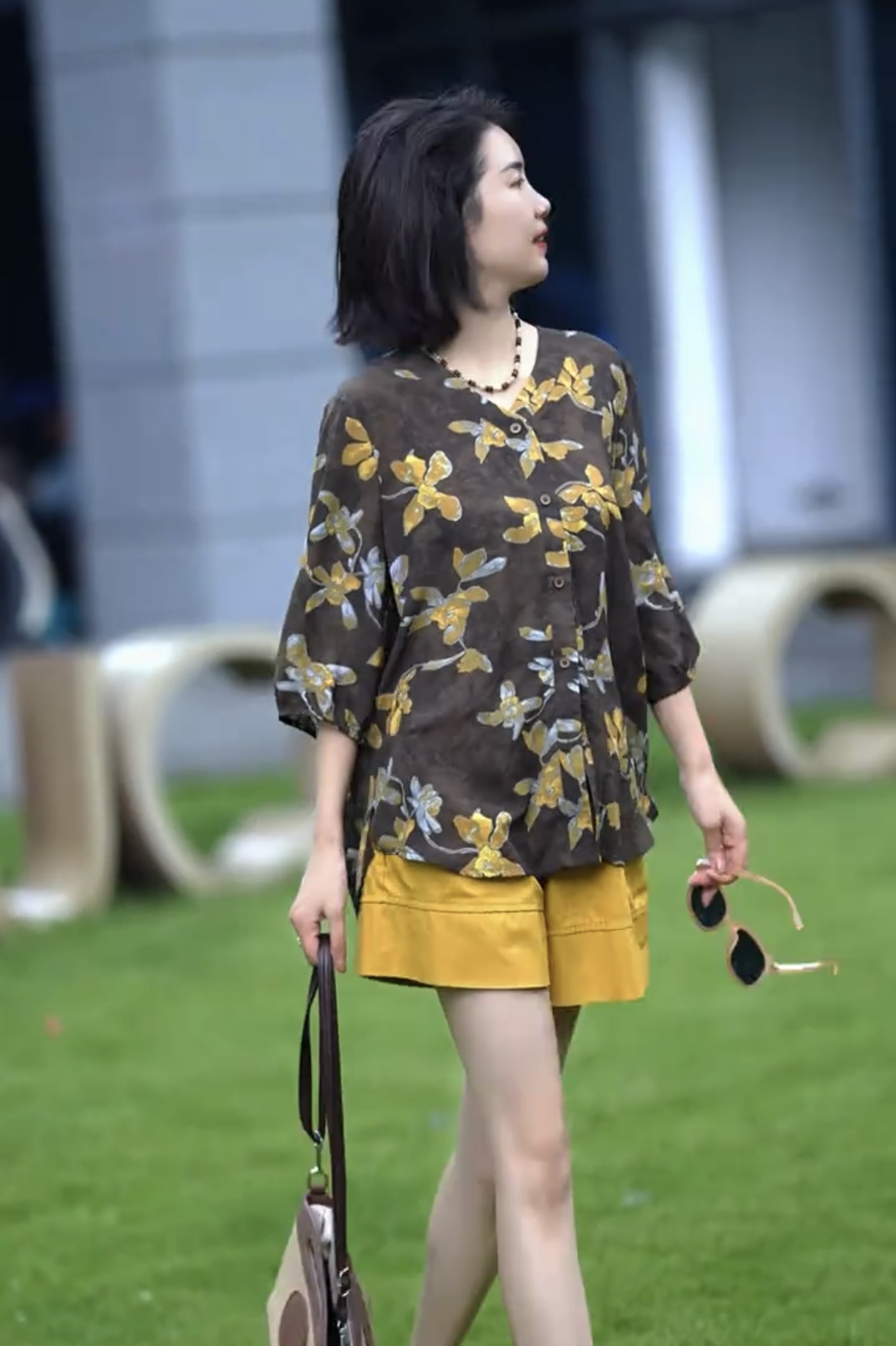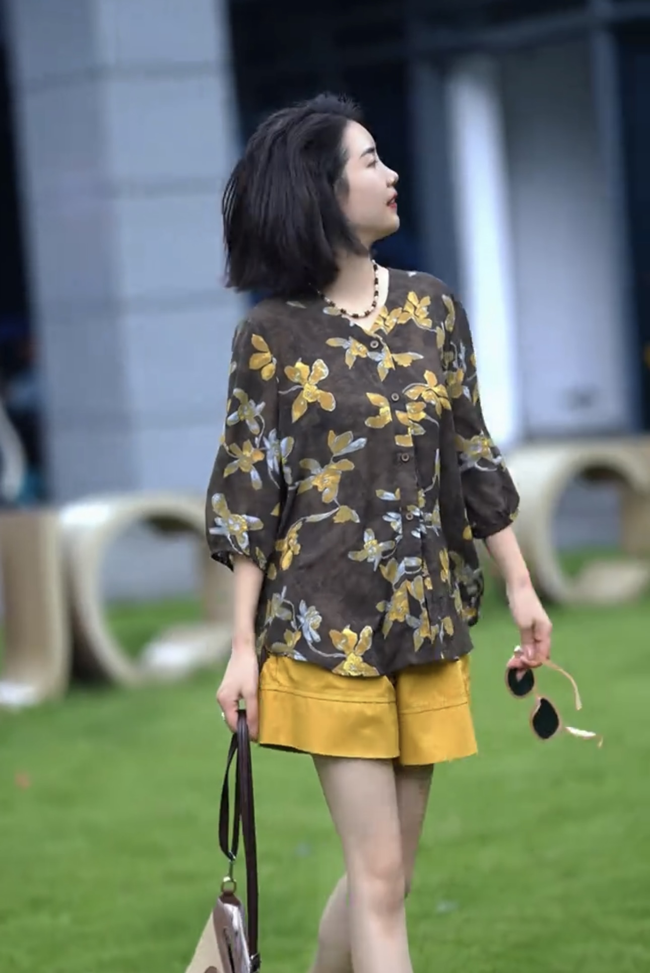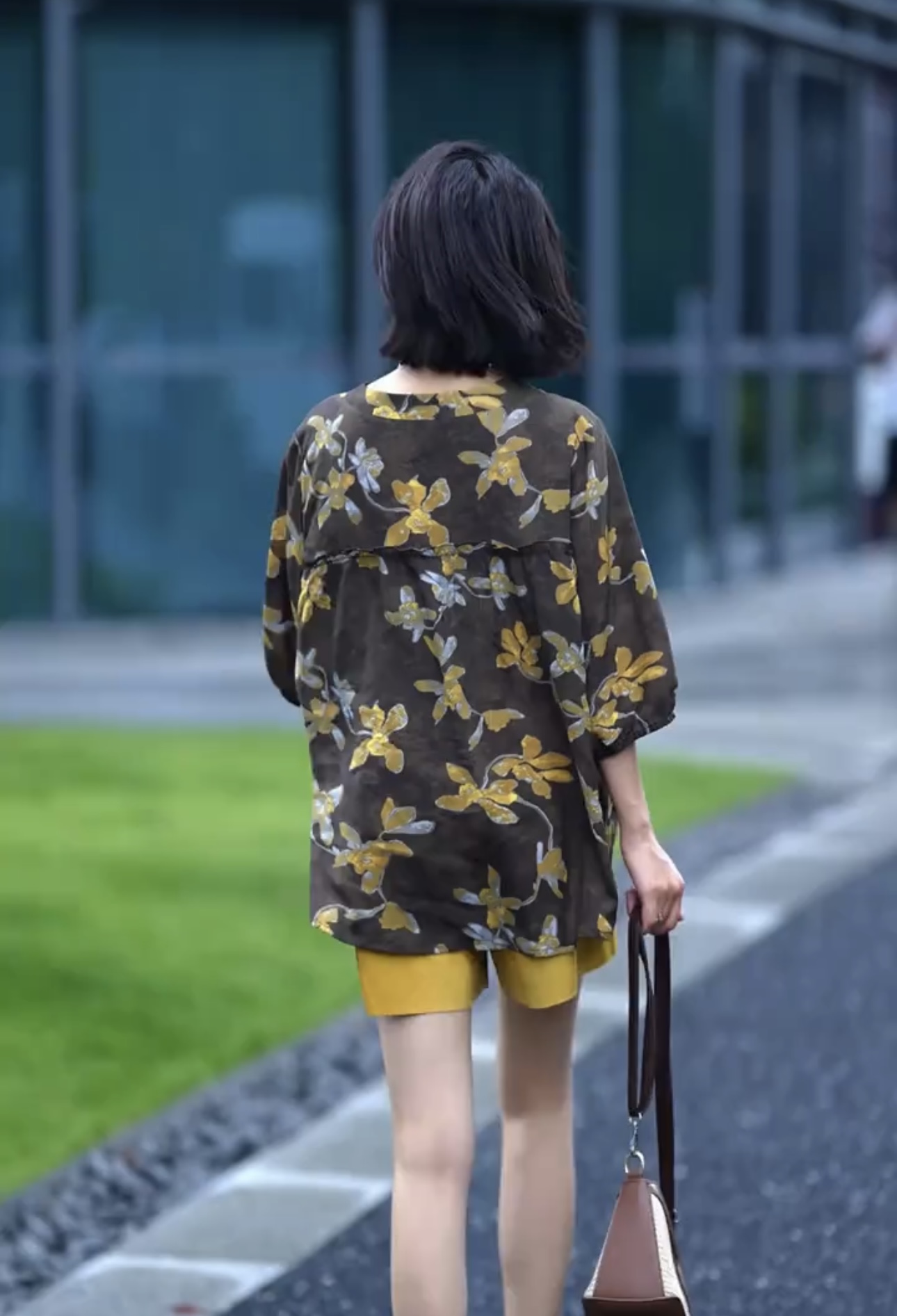 프랑스식 예술 센스 추상 프린트 라운드 넥 중간 소매 티셔츠 여성 여름 얇은 스타일 슬림해 보이는 품격 맨위