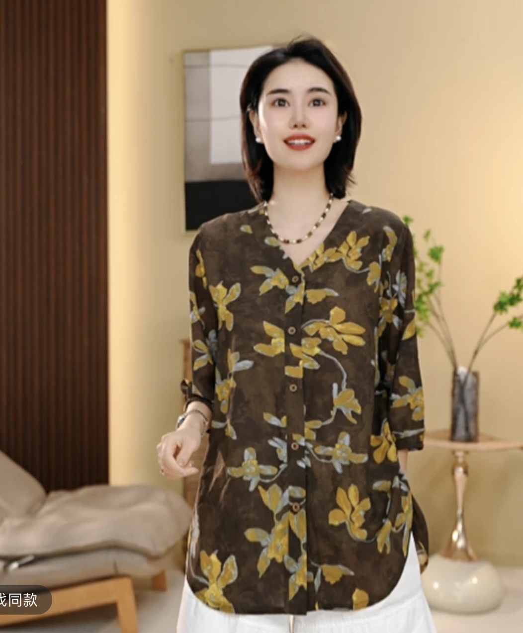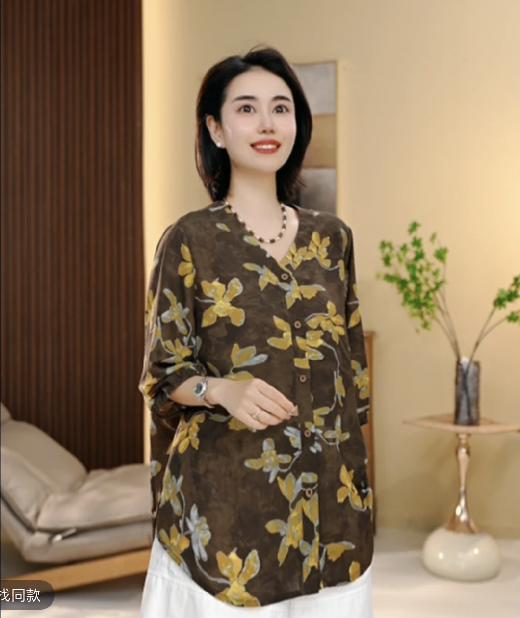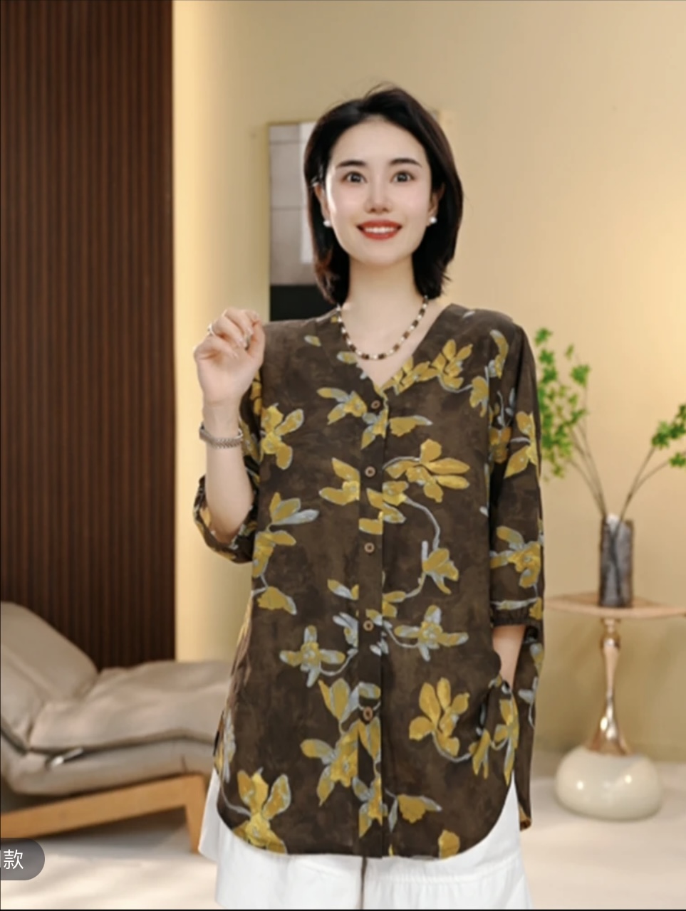 있음 선적 레트로 자카드 프린트 여성 셔츠 루즈핏 표지 고기 중년 엄마 긴팔 자외선 차단 맨위