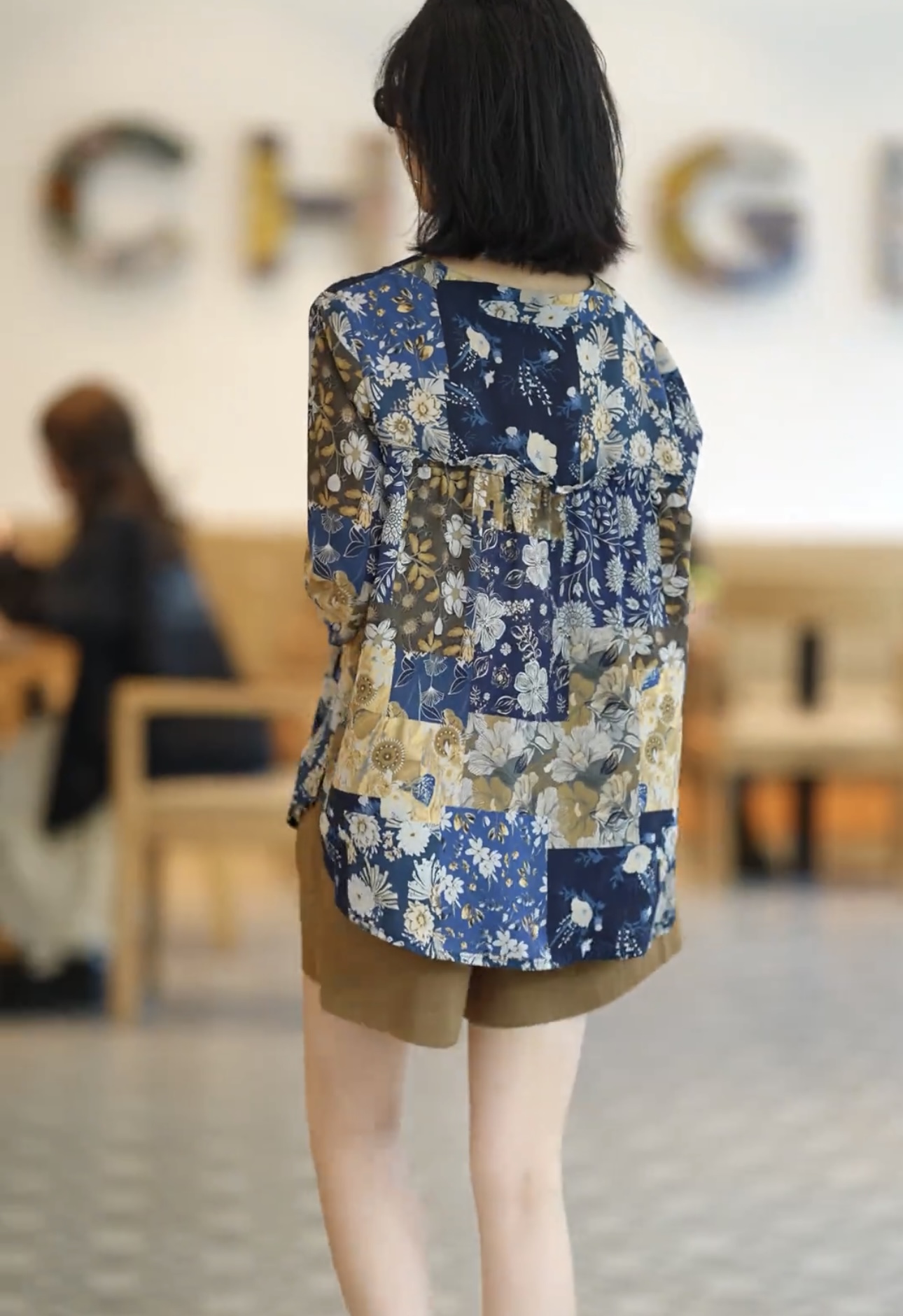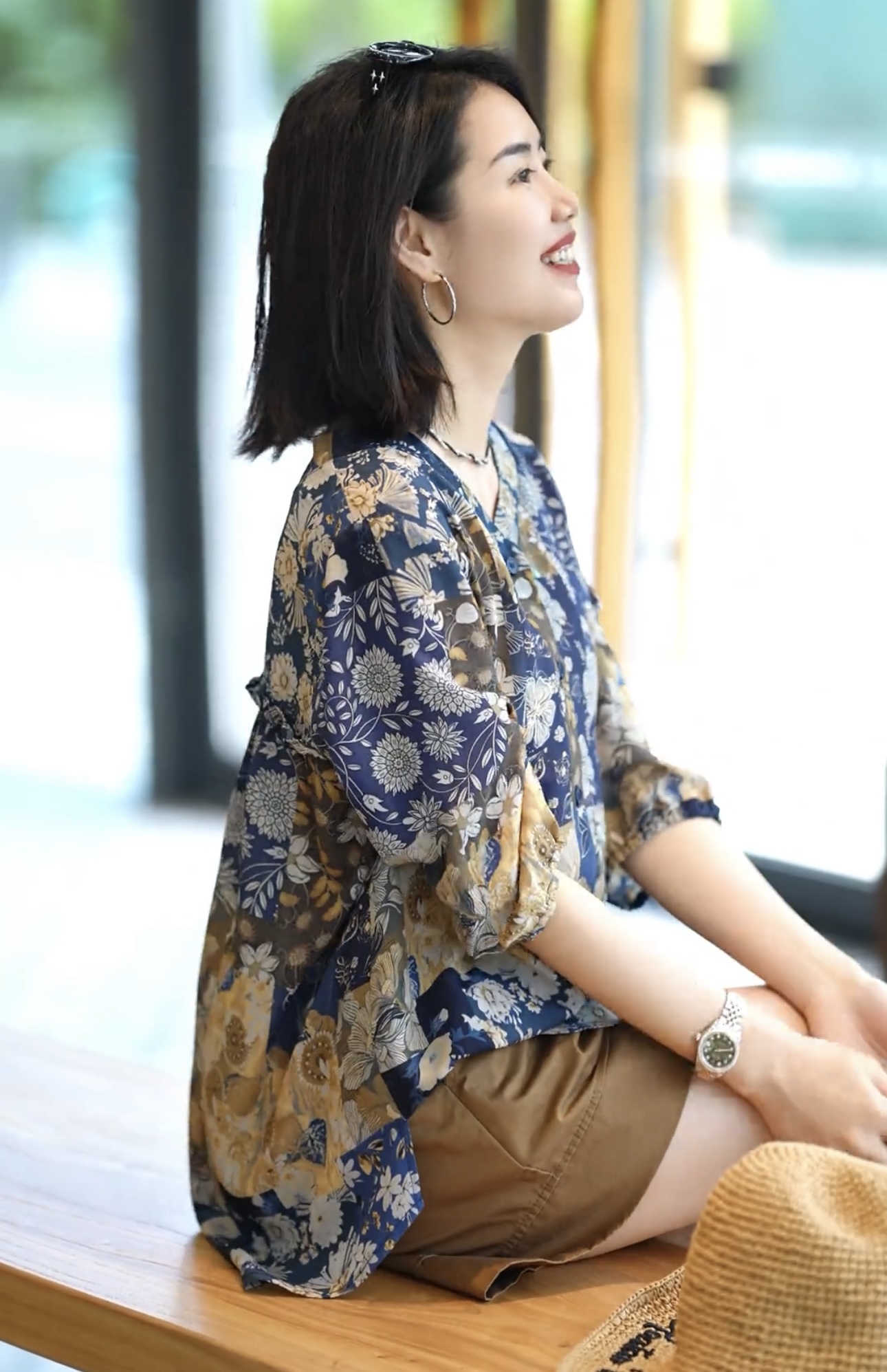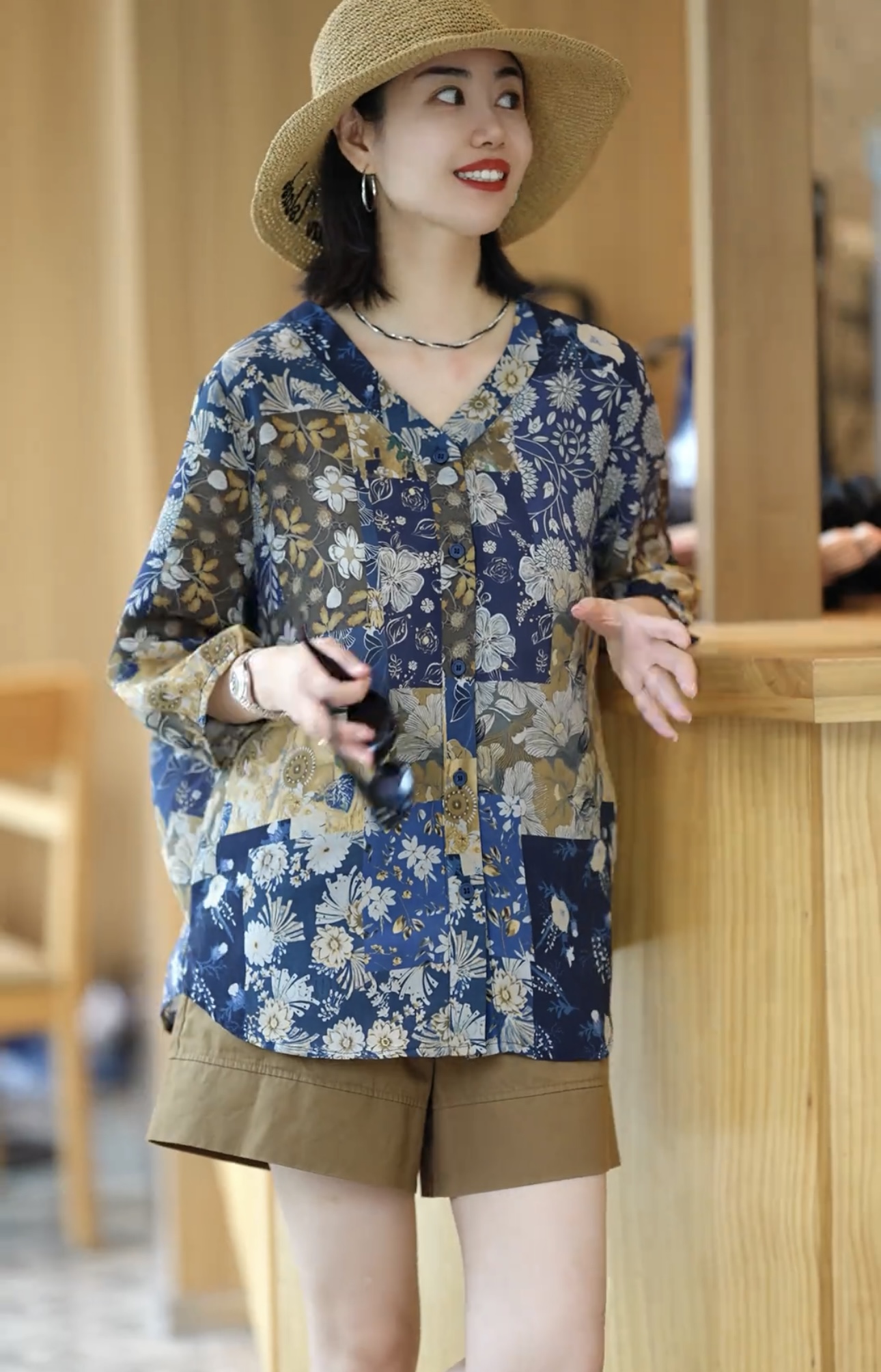 있음 선적 레트로 자카드 프린트 여성 셔츠 루즈핏 표지 고기 중년 엄마 긴팔 자외선 차단 맨위