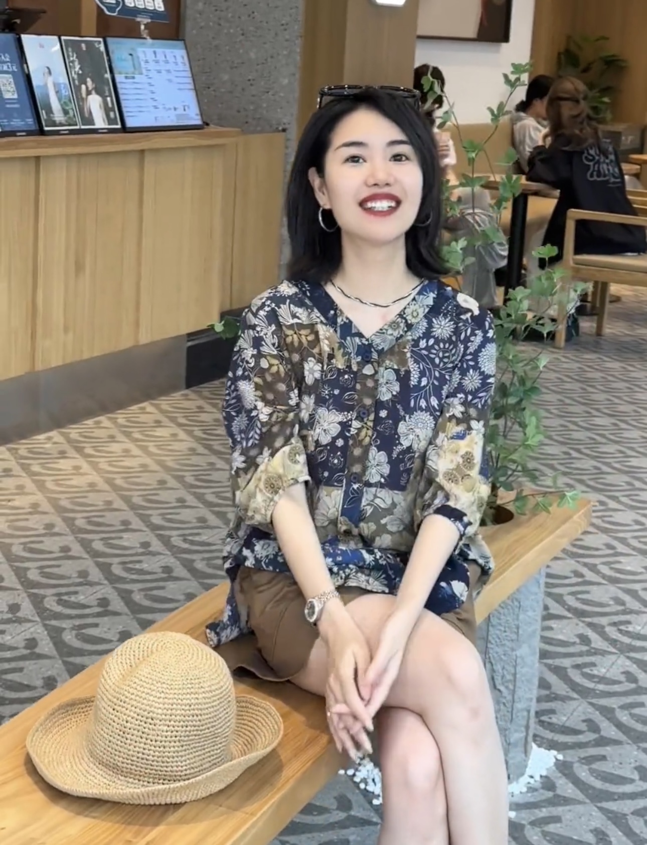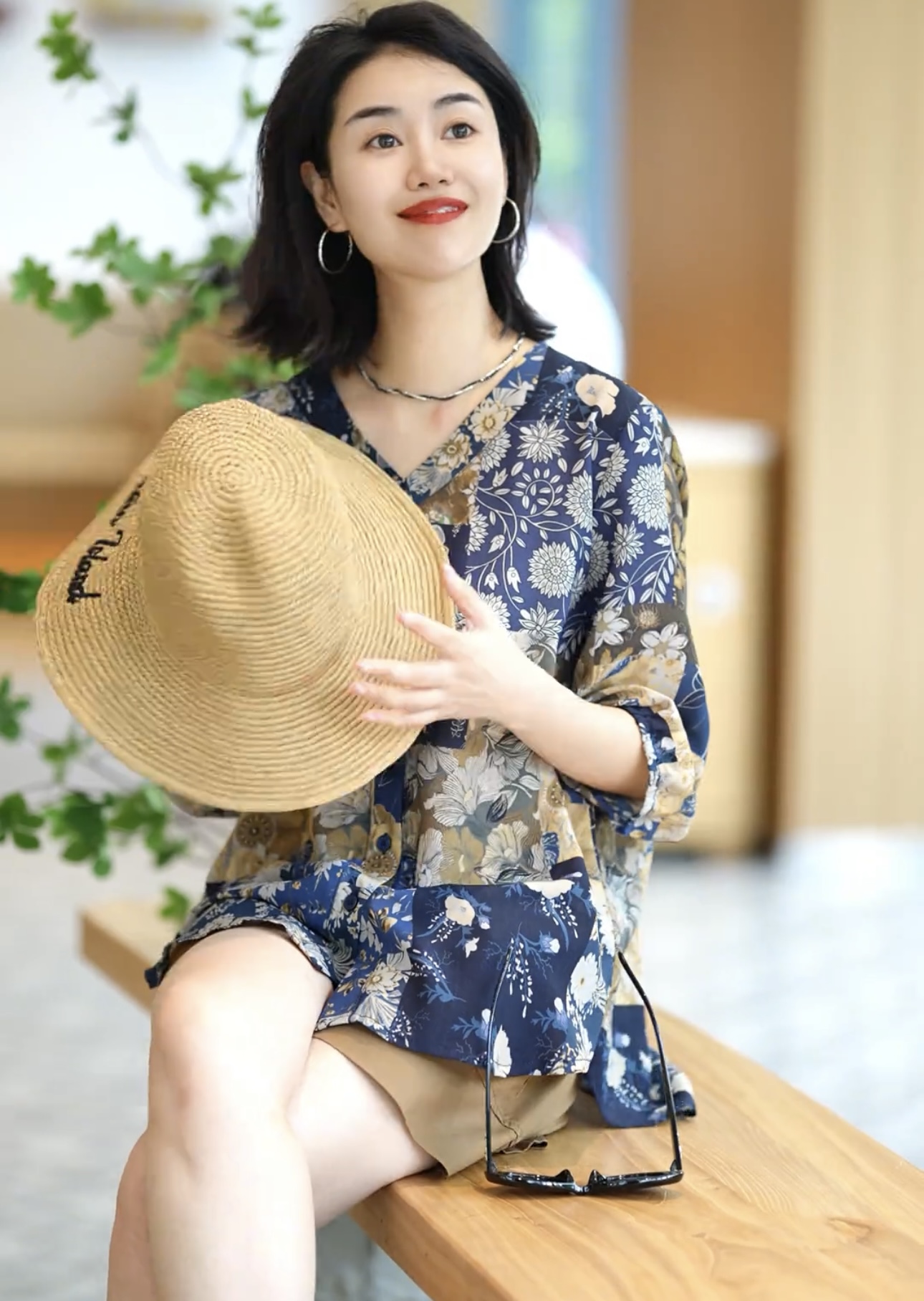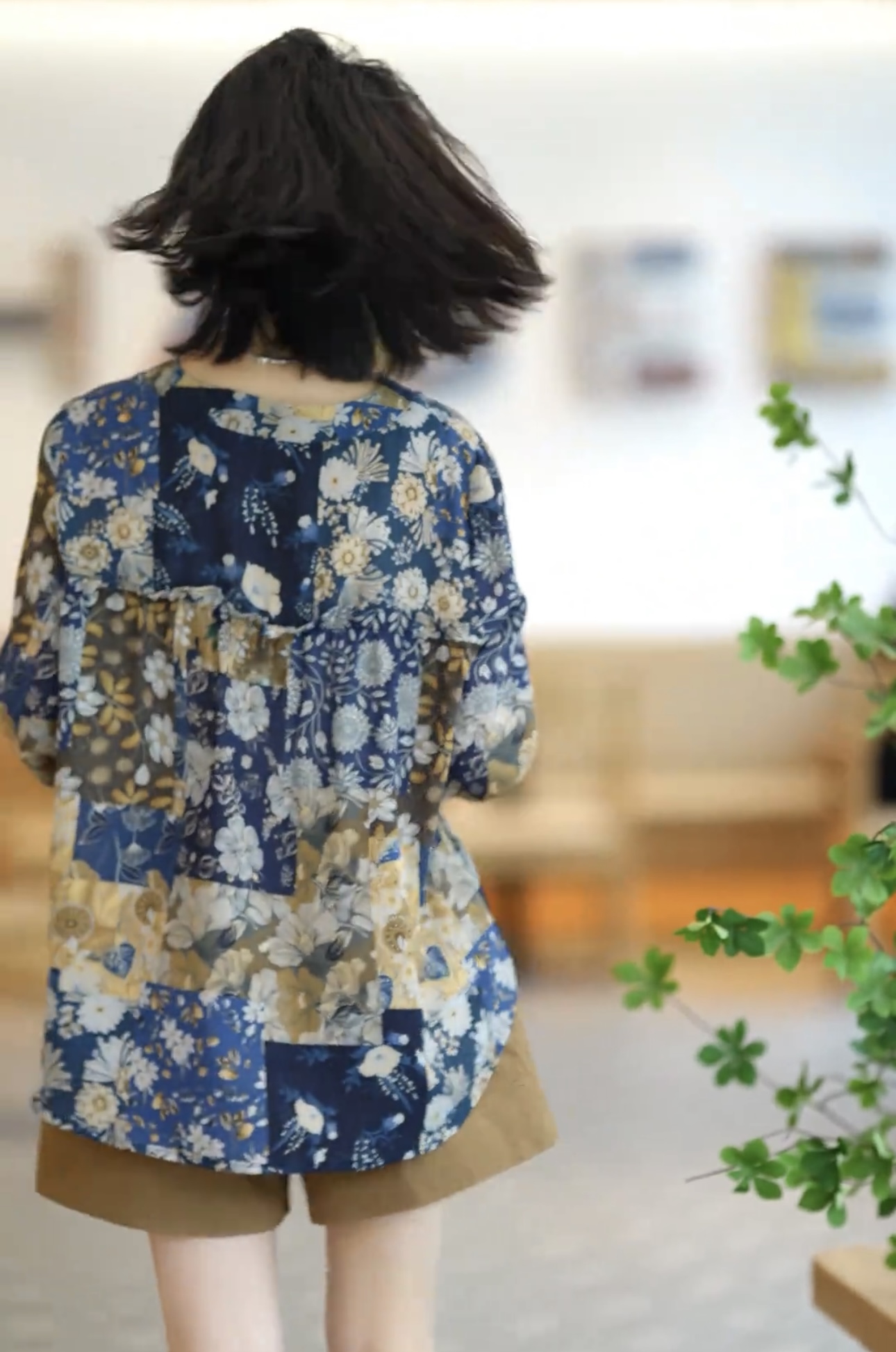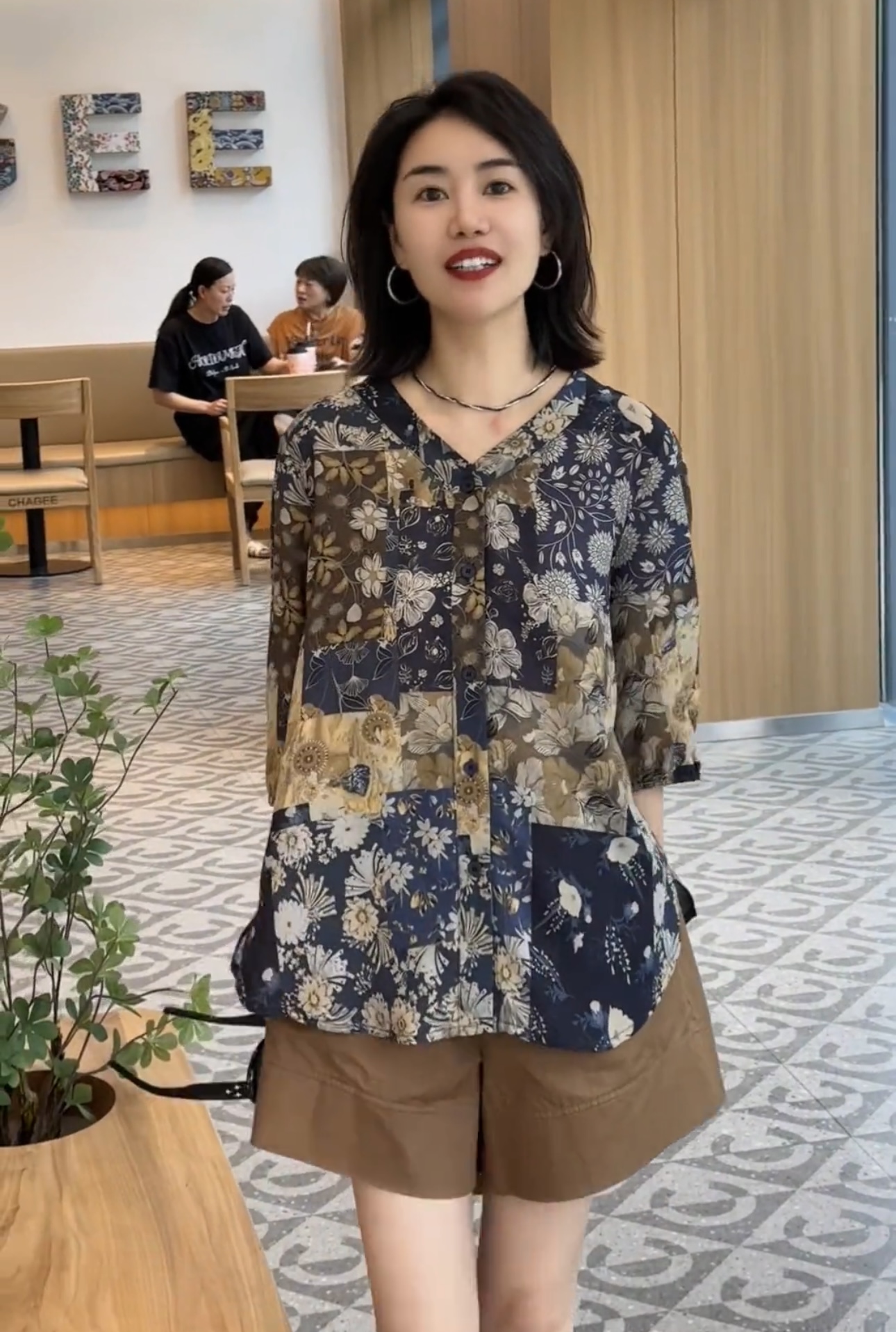 프랑스식 예술 센스 추상 프린트 라운드 넥 중간 소매 티셔츠 여성 여름 얇은 스타일 슬림해 보이는 품격 맨위
