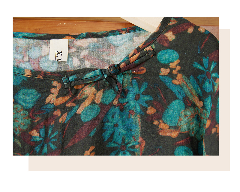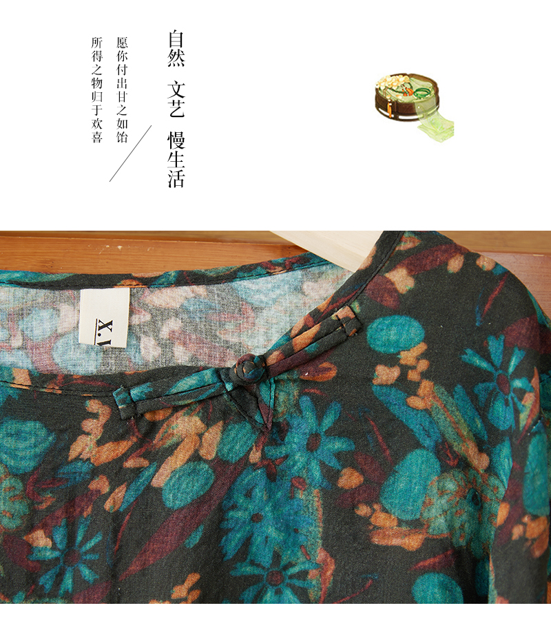 단색 비스듬한 문 襟 순수한 라미 맨위 여성 짧은 셔츠 여름 문예 차 서비스 중식 얇고 가벼운 작은 셔츠 치마