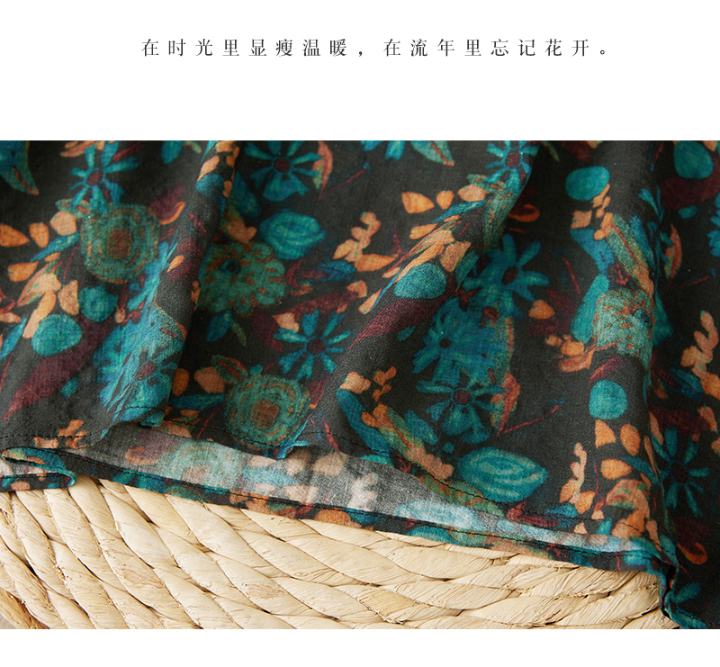 실사 작은 귀 홈 문예 빅 사이즈 봄 아시아 인 대마 원사 프린트 배트윙 소매 민족 스타일 루즈핏 오픈 가디건 짧은 여성 코트