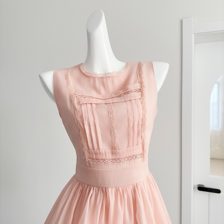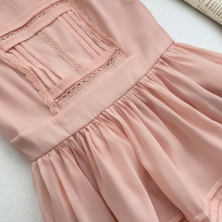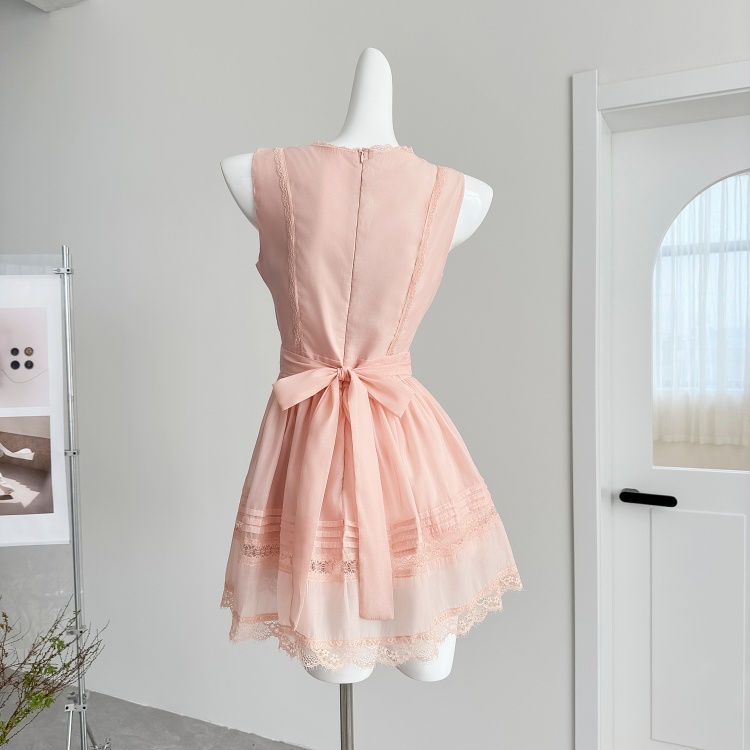 늦게 우산 우산 26 ss 첫눈 복숭아 복숭아 복숭아 핑크색 레이스 조각 민소매 반팔 퍼프 드레스 미니 스커트
