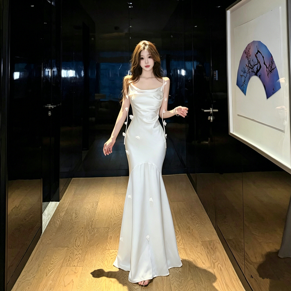 실사 명문 여성 품격 섹시함 무거운 작업 새틴 몸매 가꾸기 주름 드레스